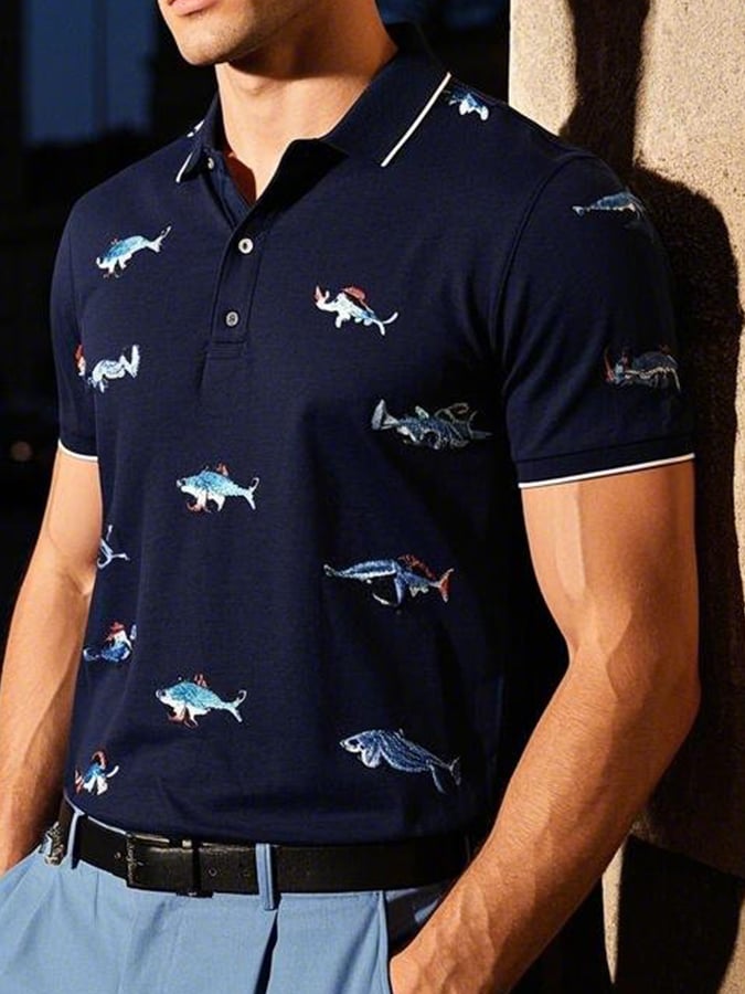 Men's Casual Marine Animal Embroidered Short-Sleeved Polo Shirt