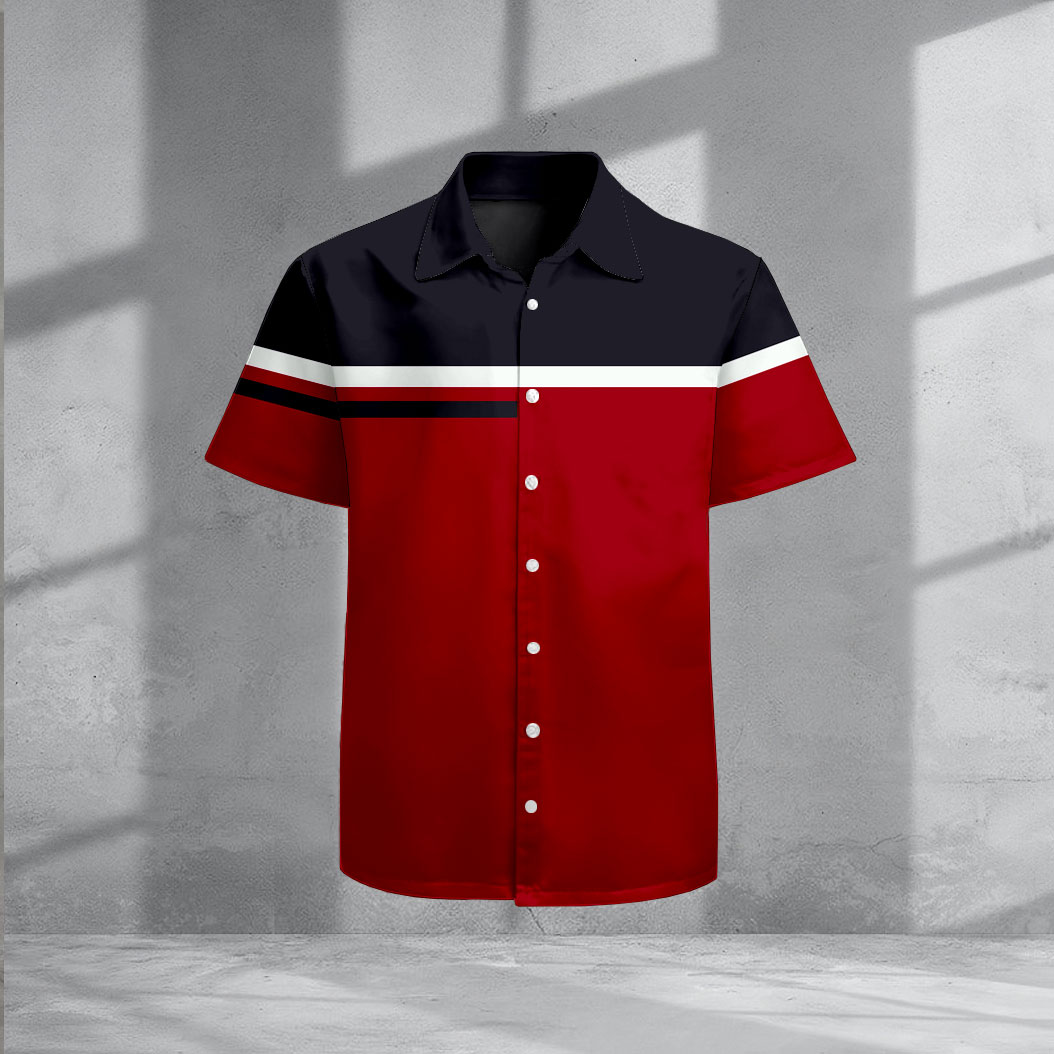 Men's Casual Red & Navy Color Matching Geometric Print Short-Sleeve Shirt