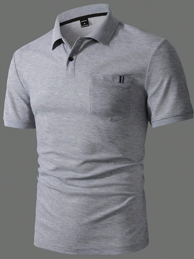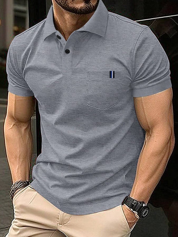Men's Casual Solid Color Pocket Short Sleeve Polo Shirt