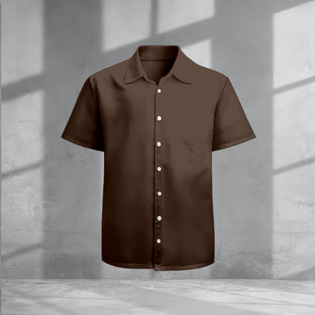 Men's Casual Coffee Color Short-Sleeve Shirt
