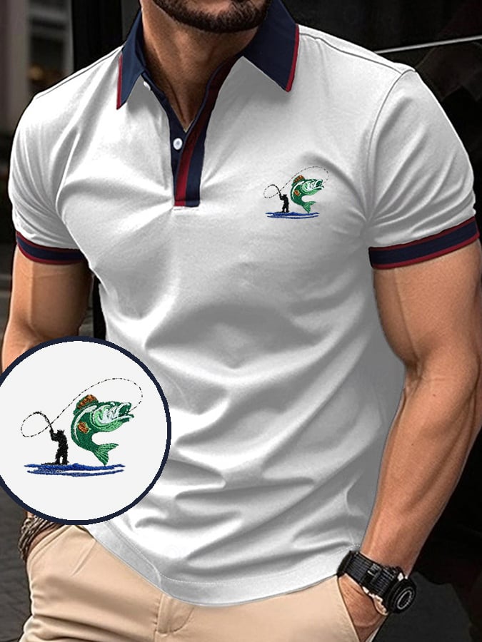 Men's Chest Embroidered Classic Casual Business Polo Shirt