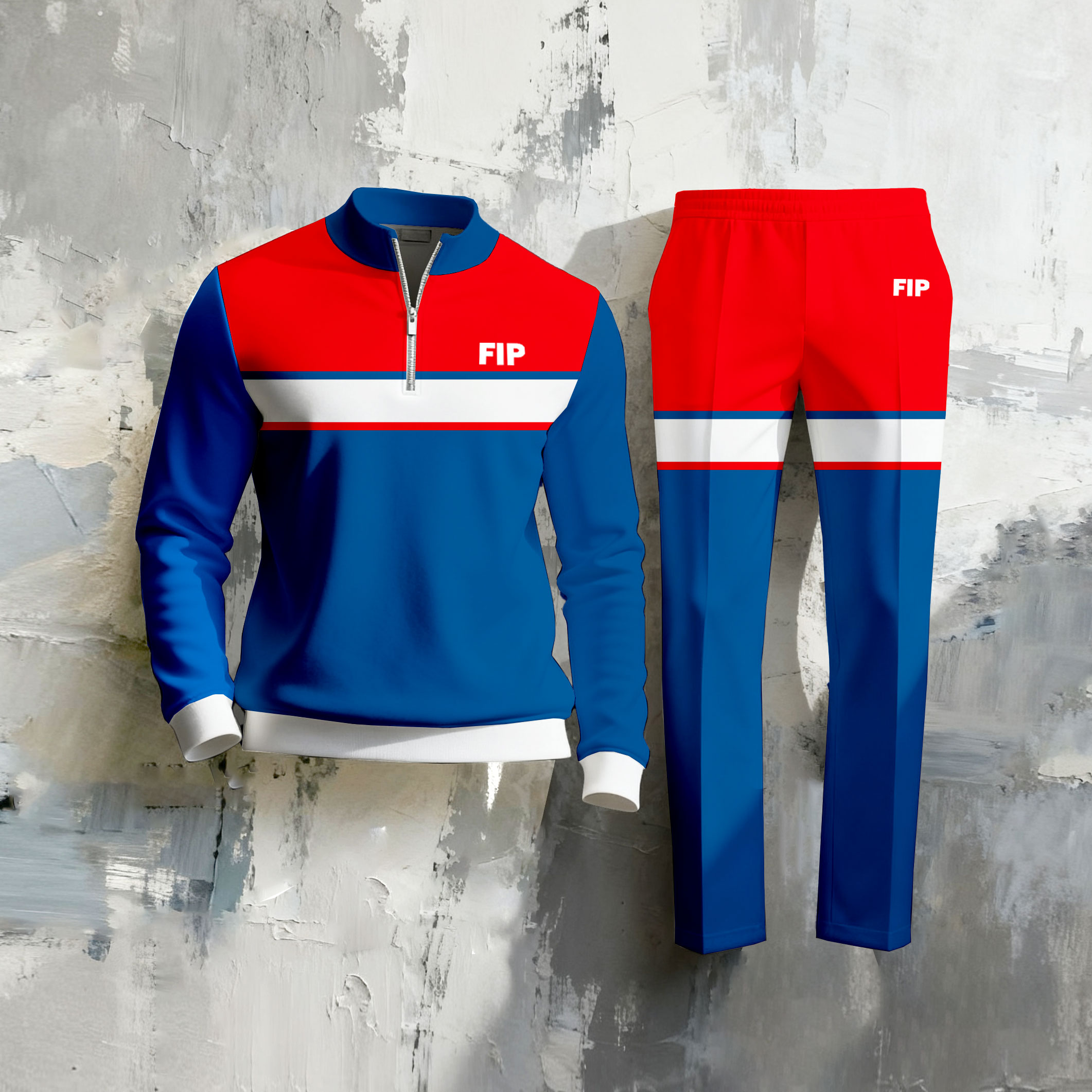 Men's Casual Color Matching Printed Stand-Collar Zipper Long Sleeved Trousers Two-Piece Set