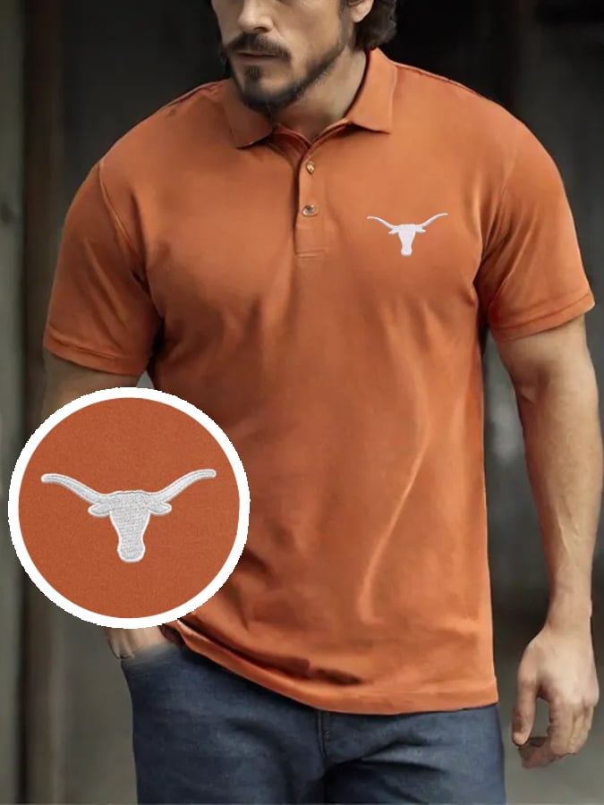Men's Classic Texas Orange Bullhead Fashion Polo Shirt