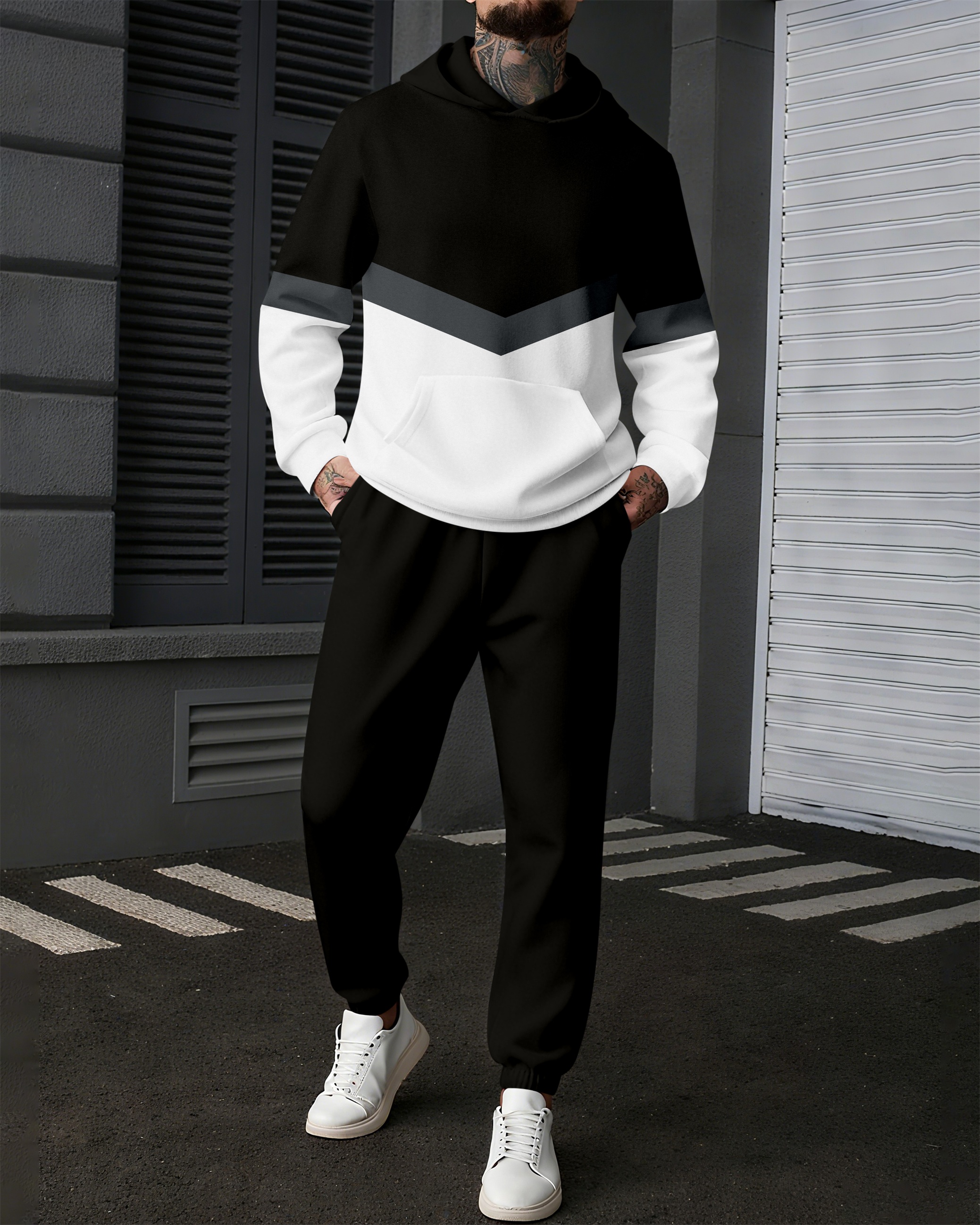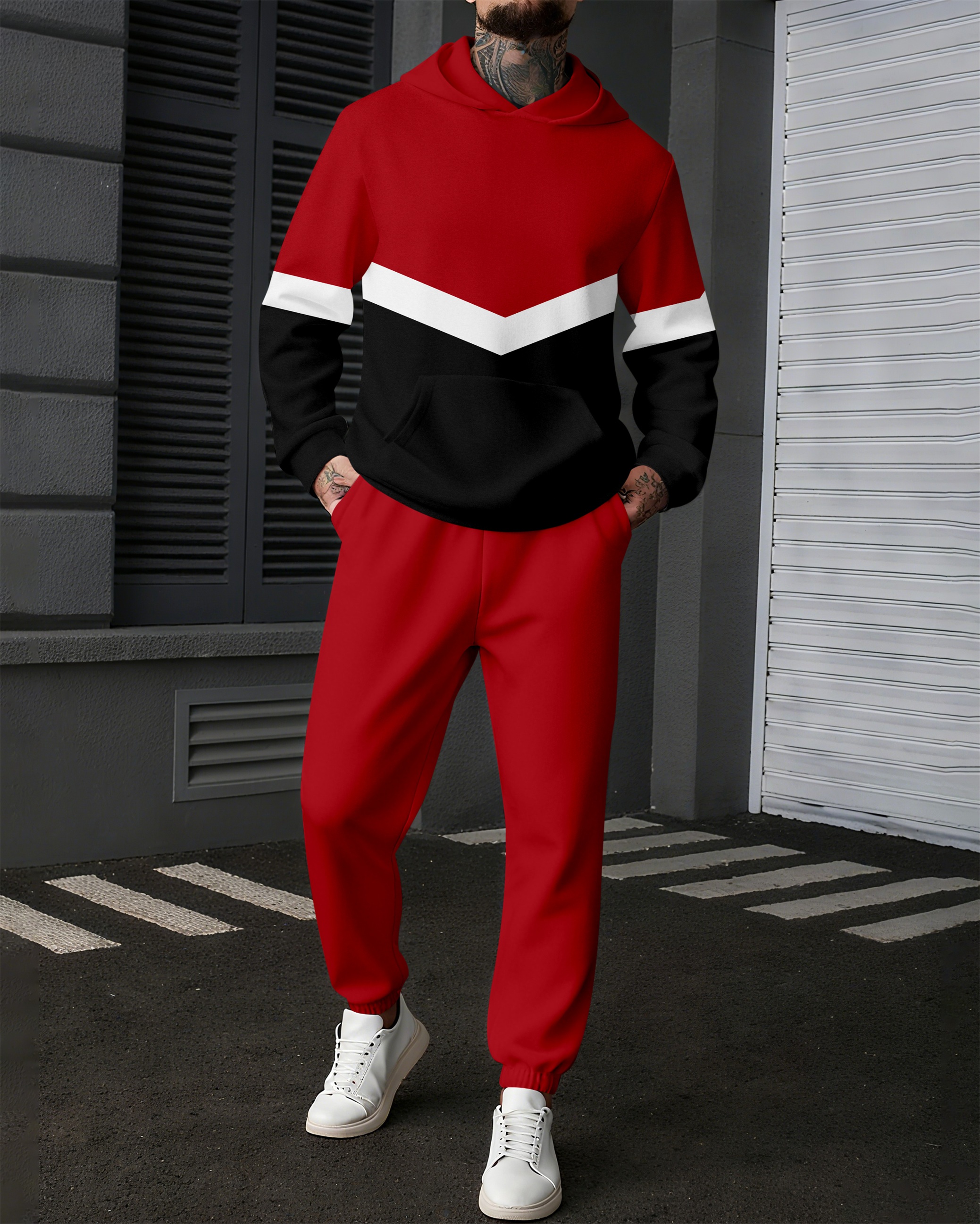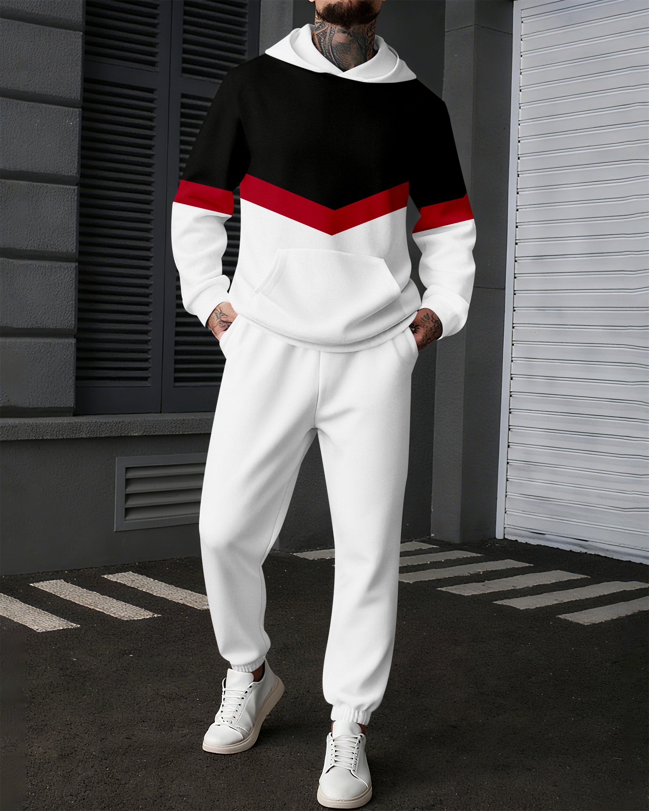Men's Colorblock Sports Casual Hoodie Suit 1023
