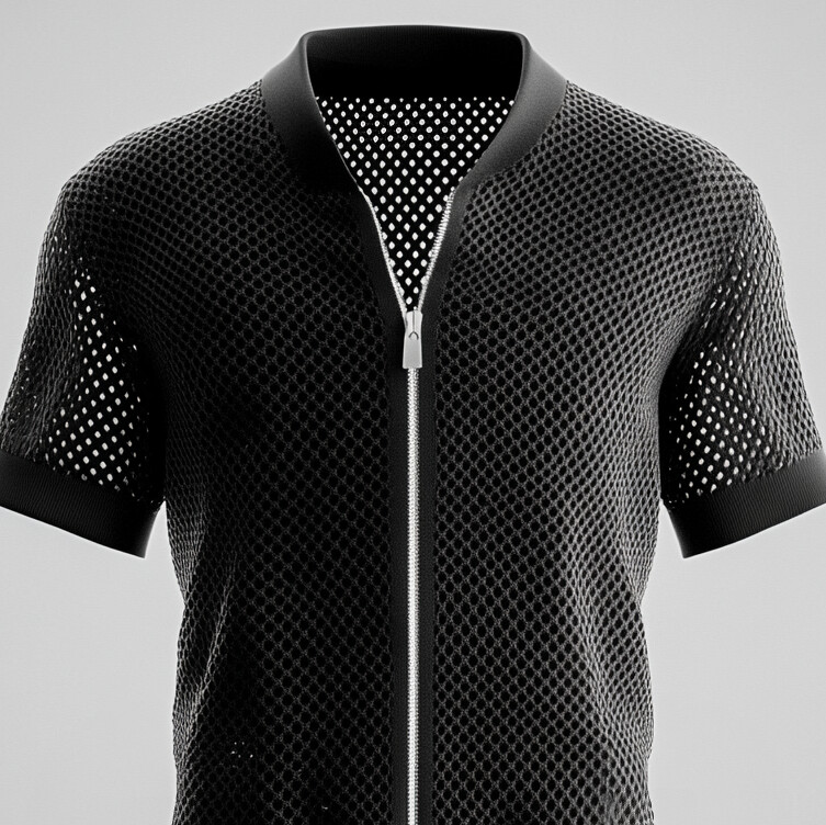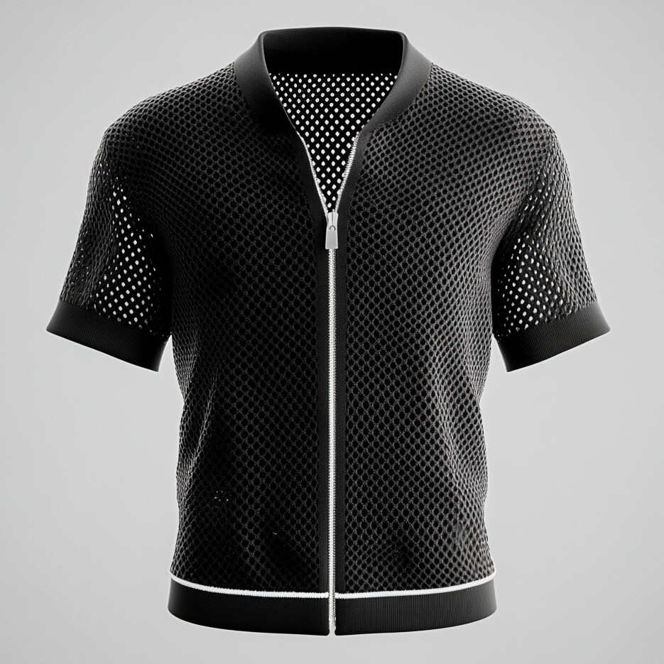 Men's Crochet Knit Hollow Out Zip Up Short Sleeve Cardigan Shirt