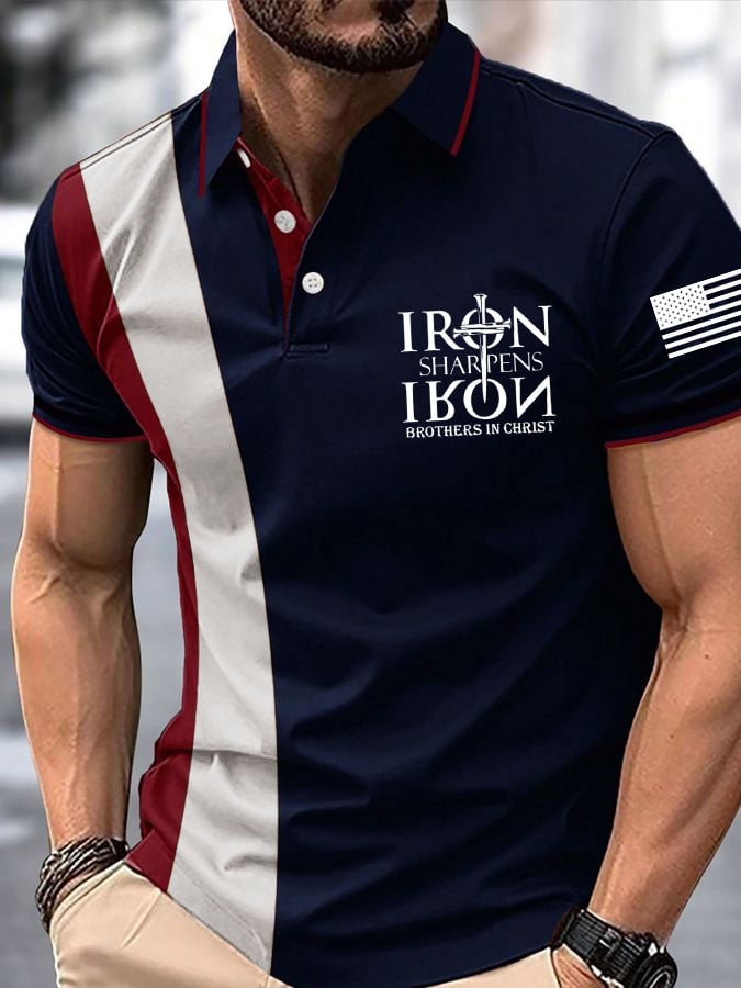 Men's faith cross American flag print POLO shirt