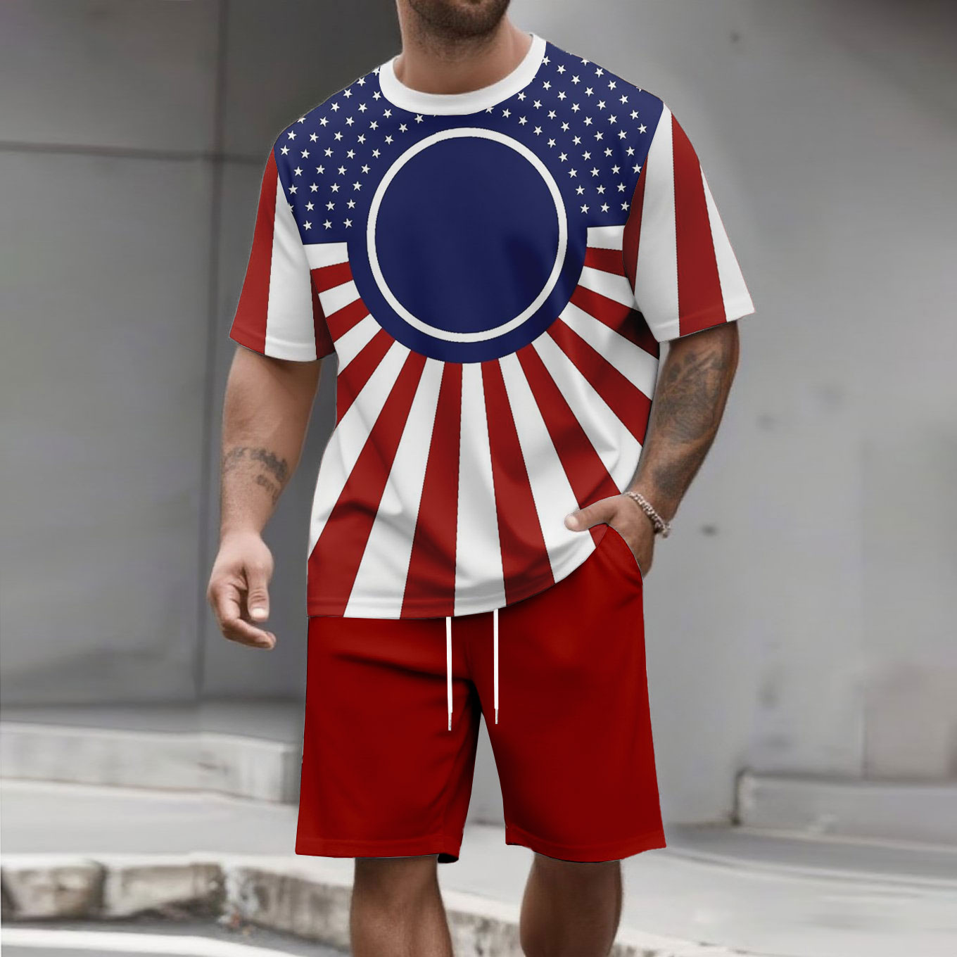 Men's Fashion Casual Color Matching Printed Short-Sleeved Two-Piece Set