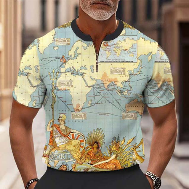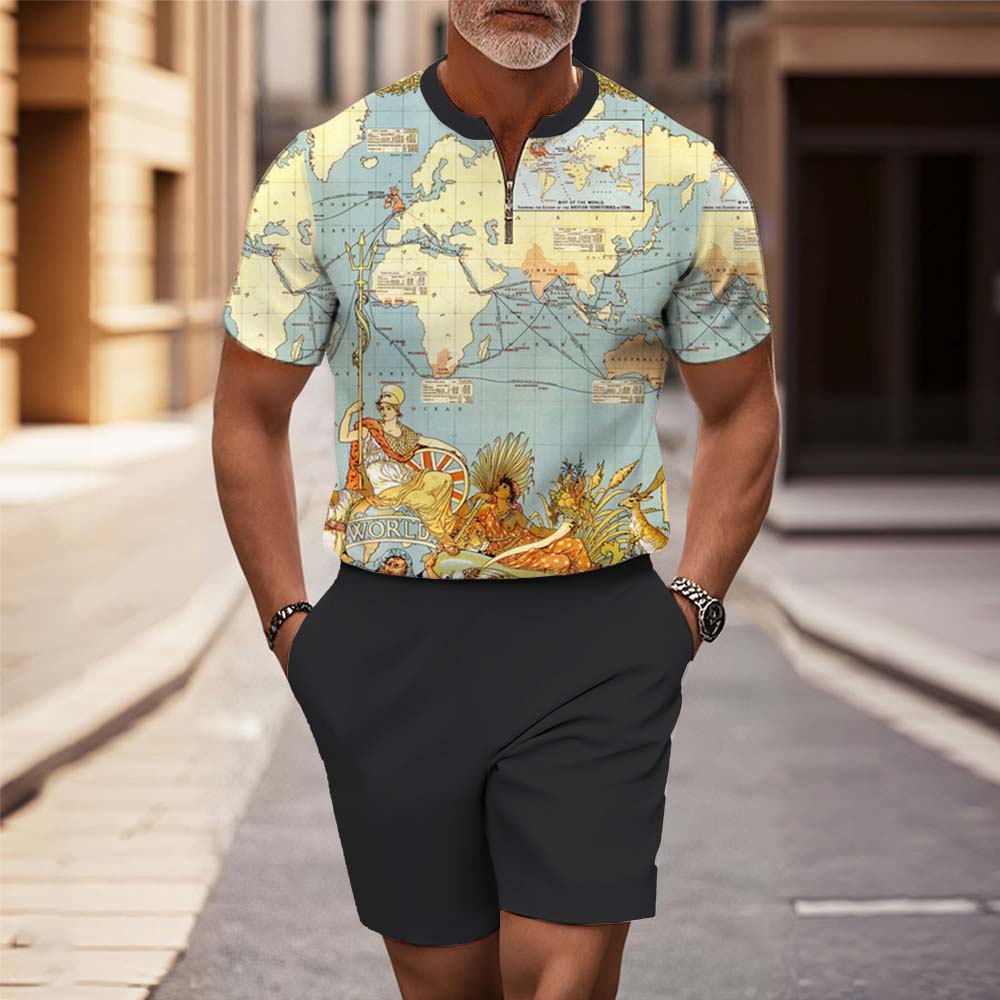 Men's Fashion Casual Round-Neck Geometric Printed Short-Sleeved Two-Piece Set