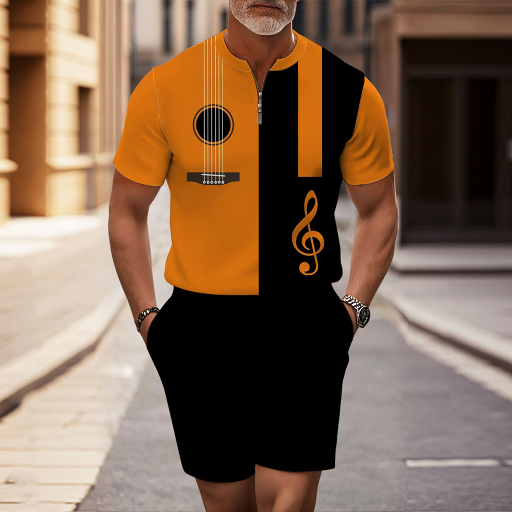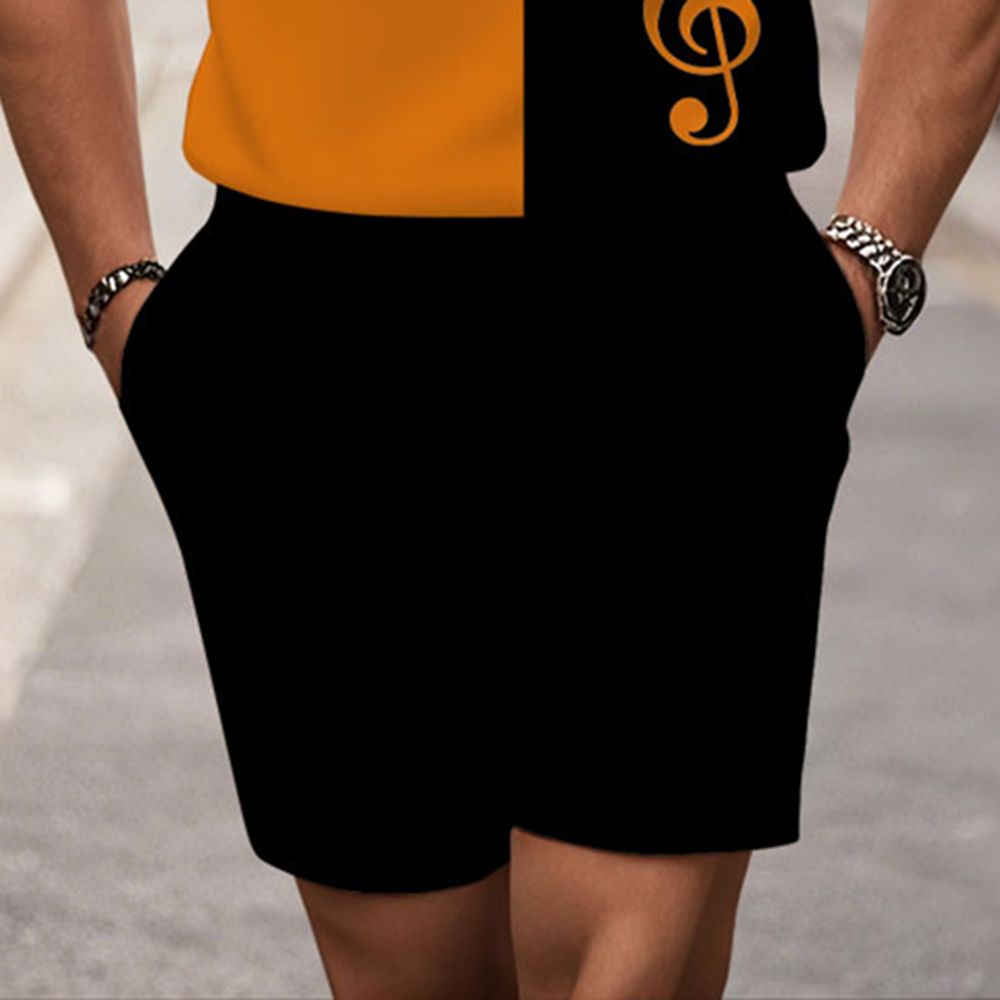 Men's Fashion Casual Round-Neck Geometric Printed Short-Sleeved Two-Piece Set