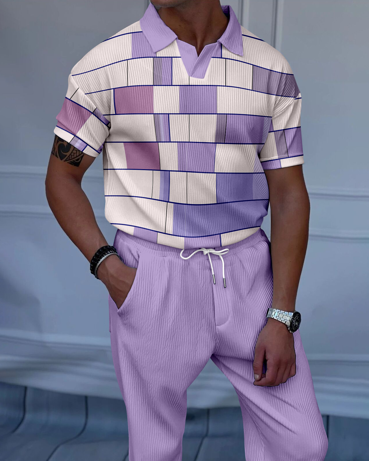 Men's Luxury Casual Textured Polo Short Sleeve Suit - 068
