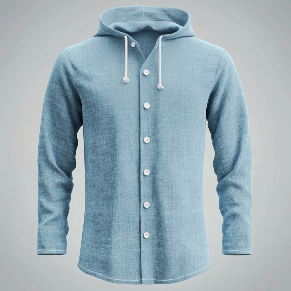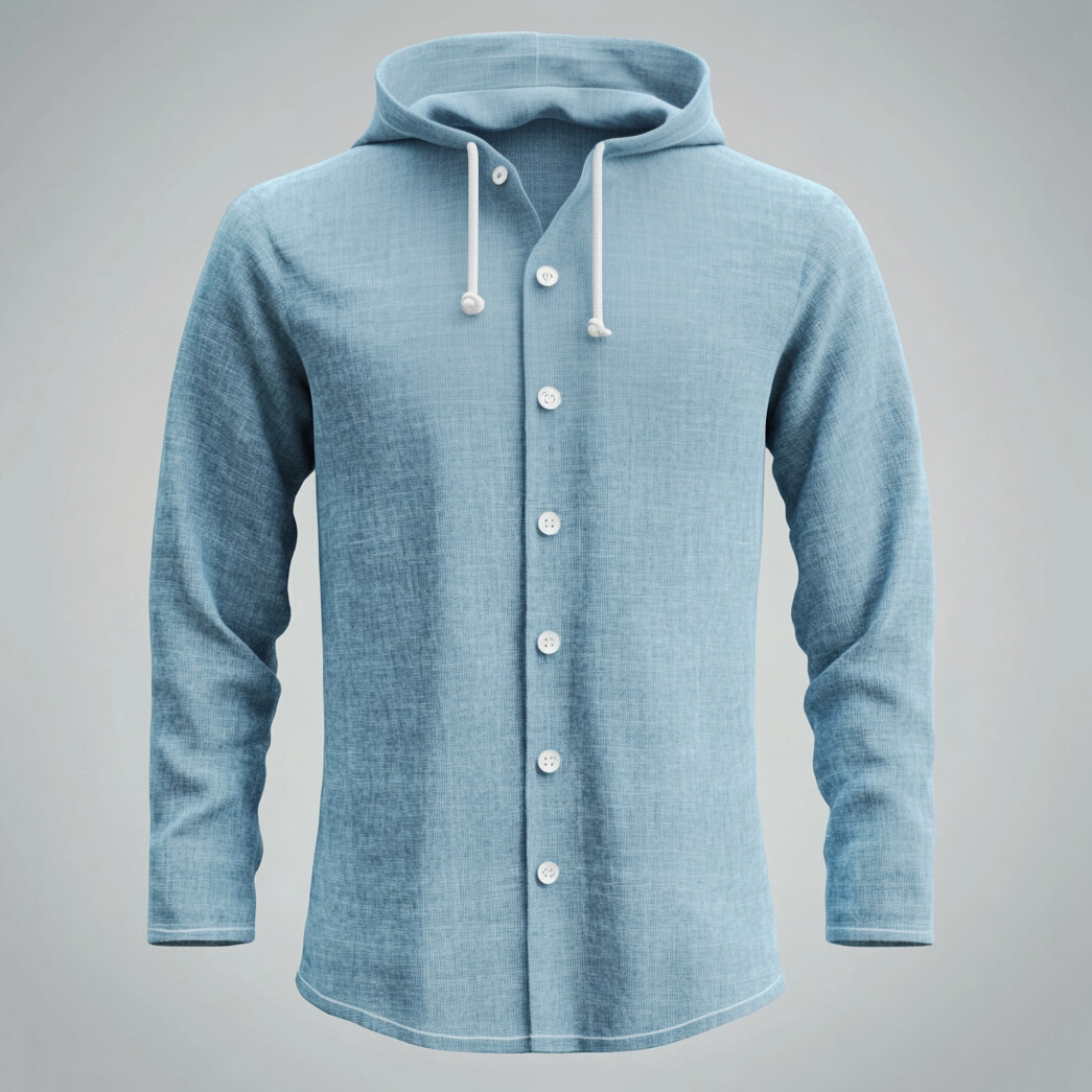 Men's Solid Drawstring Hooded Long Sleeve Button Shirt