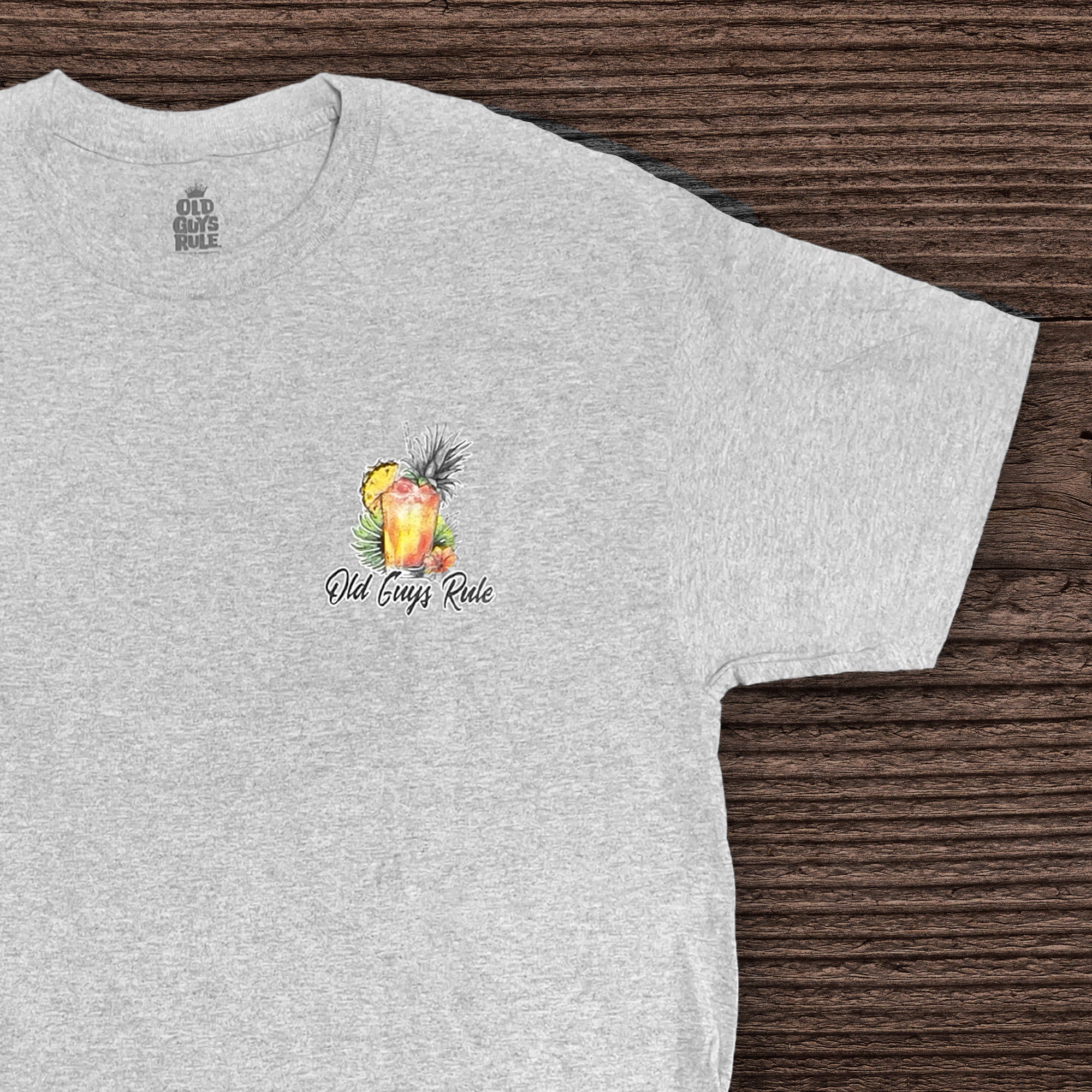 | Shirt Back Text: "Thirsty Parrot Rum - It's 5 0'Clock Somewhere - EST 1923 - 100 Proof - Distilled By Old Guys Rule" |