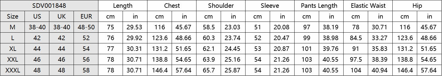 • Pants: Elastic waistband with adjustable drawstring, two slant pockets