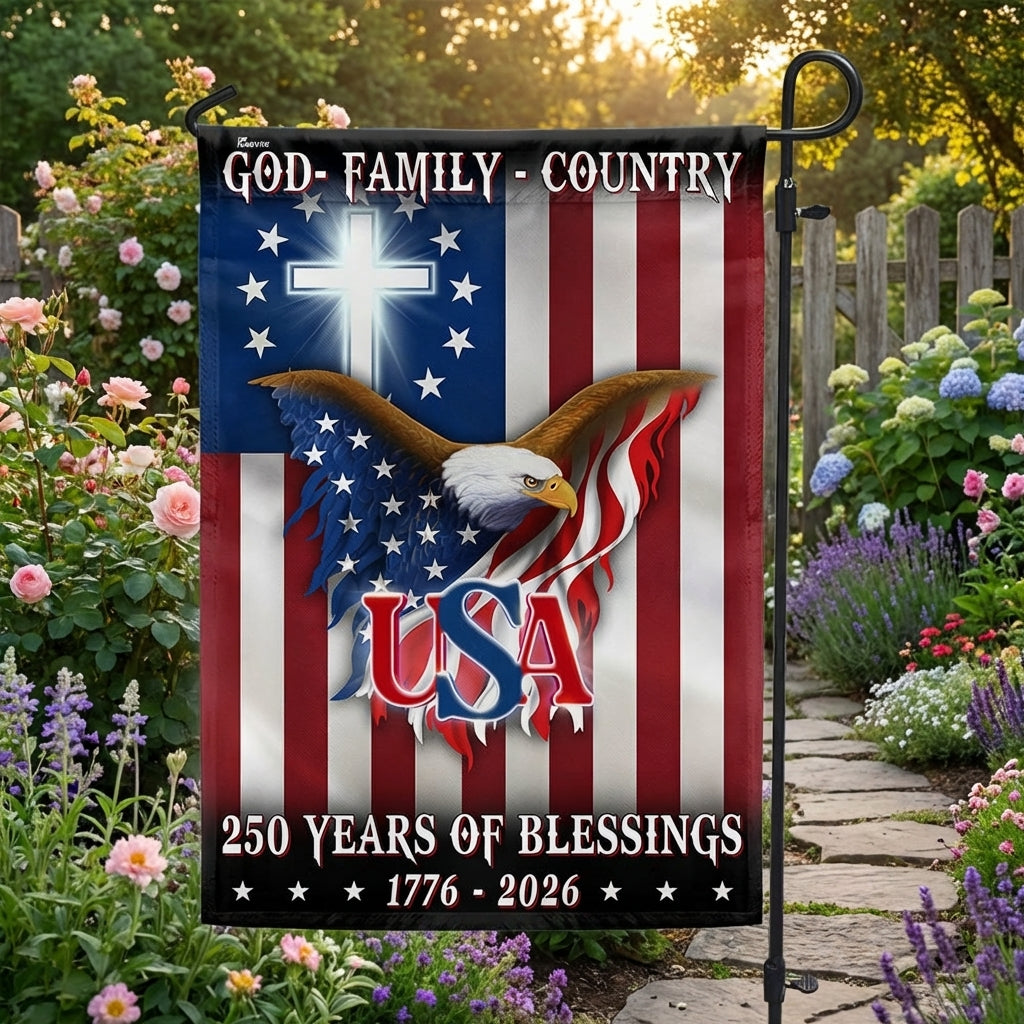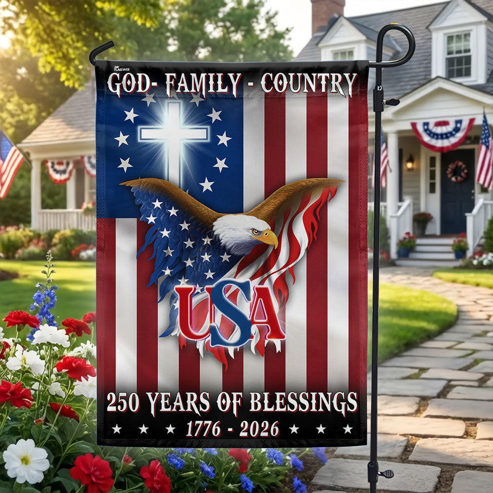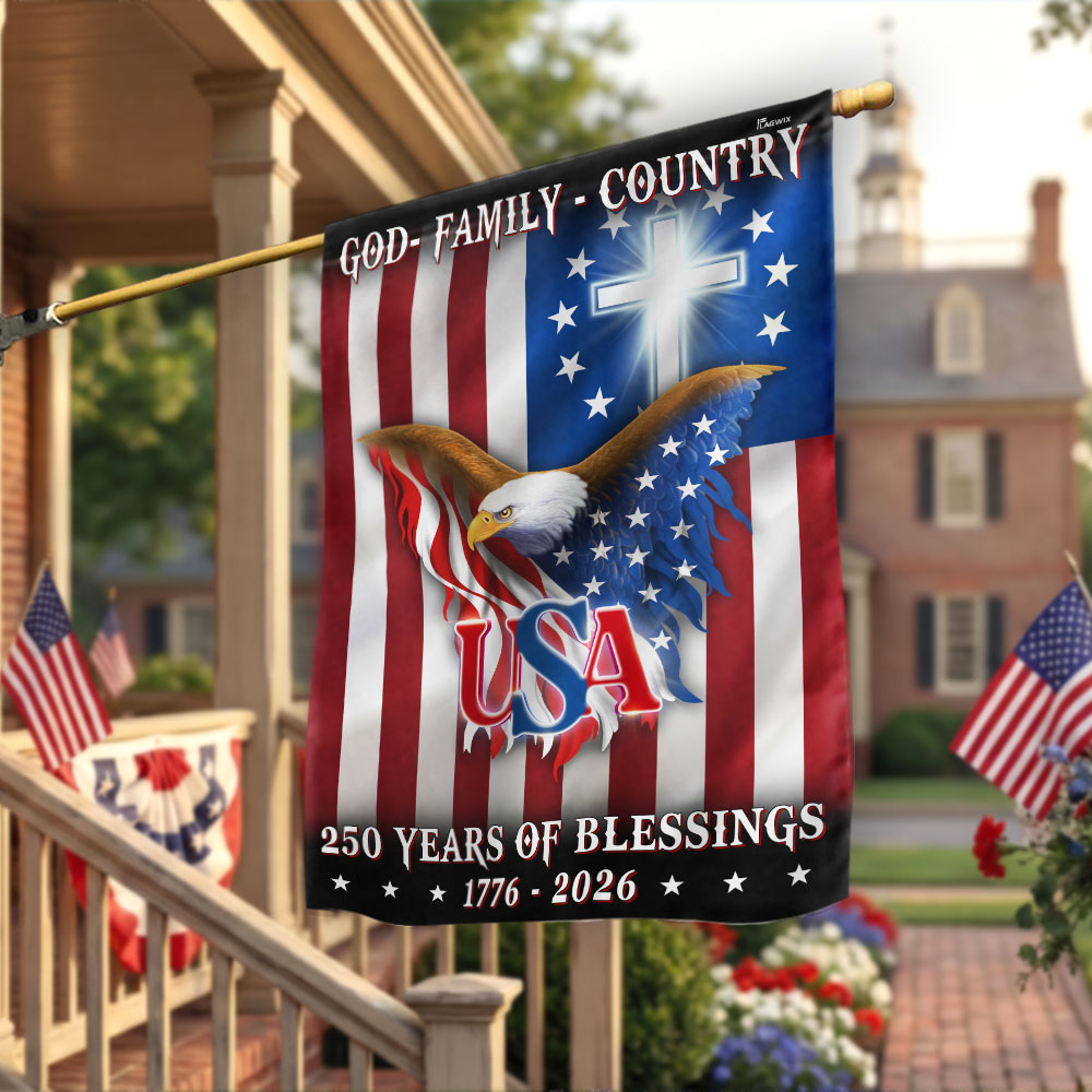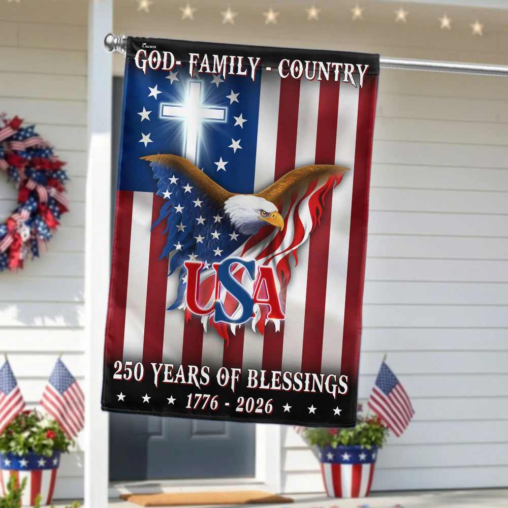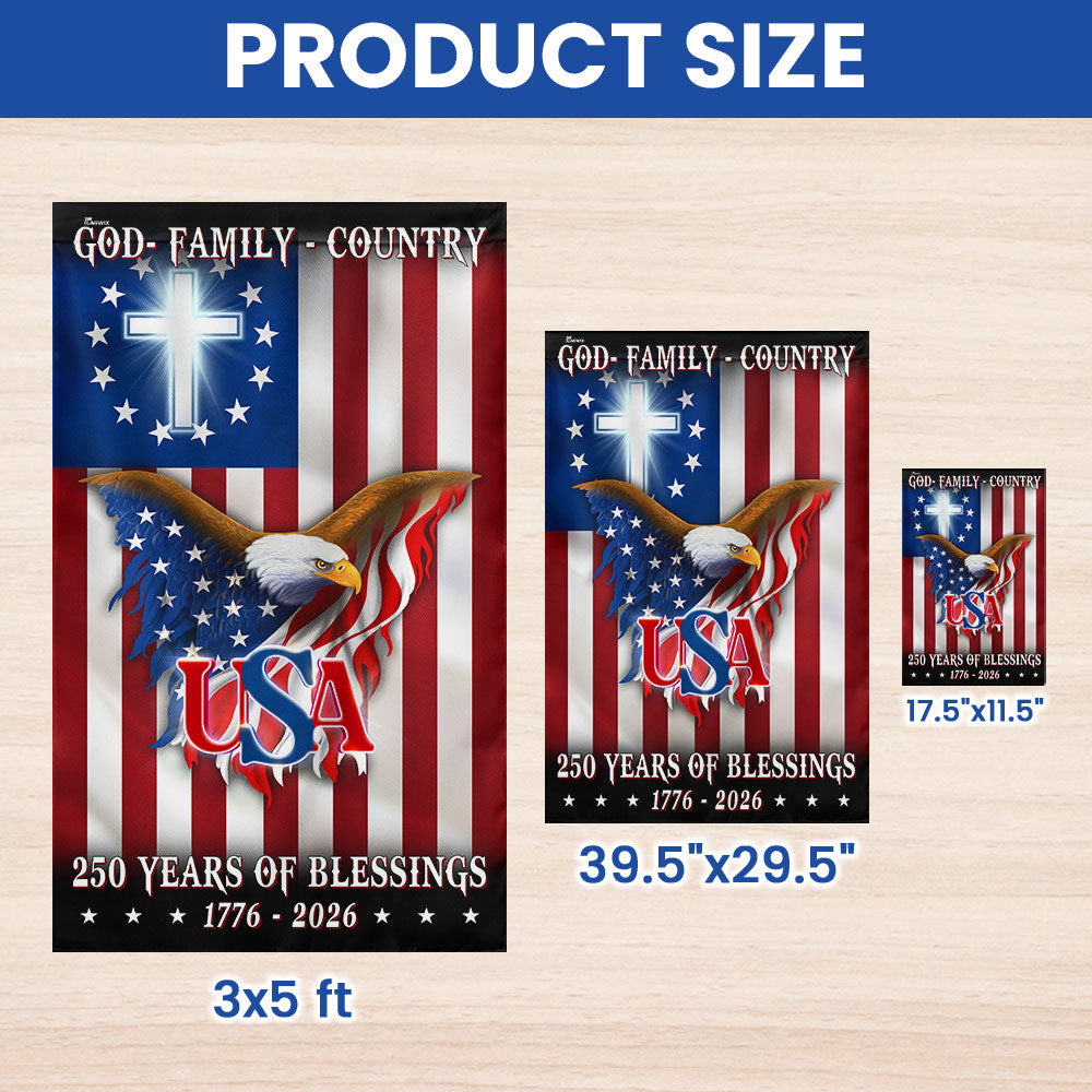 250 Years of Blessing 1776 2026 Flag, USA Patriotic Christian Flag Decor Are you looking for something to decorate your home more outstandingly or make a gift for your beloved? Our custom printed flags would be a wonderful choice for a home-decor accessory or a perfect gift to give your families and friends.
