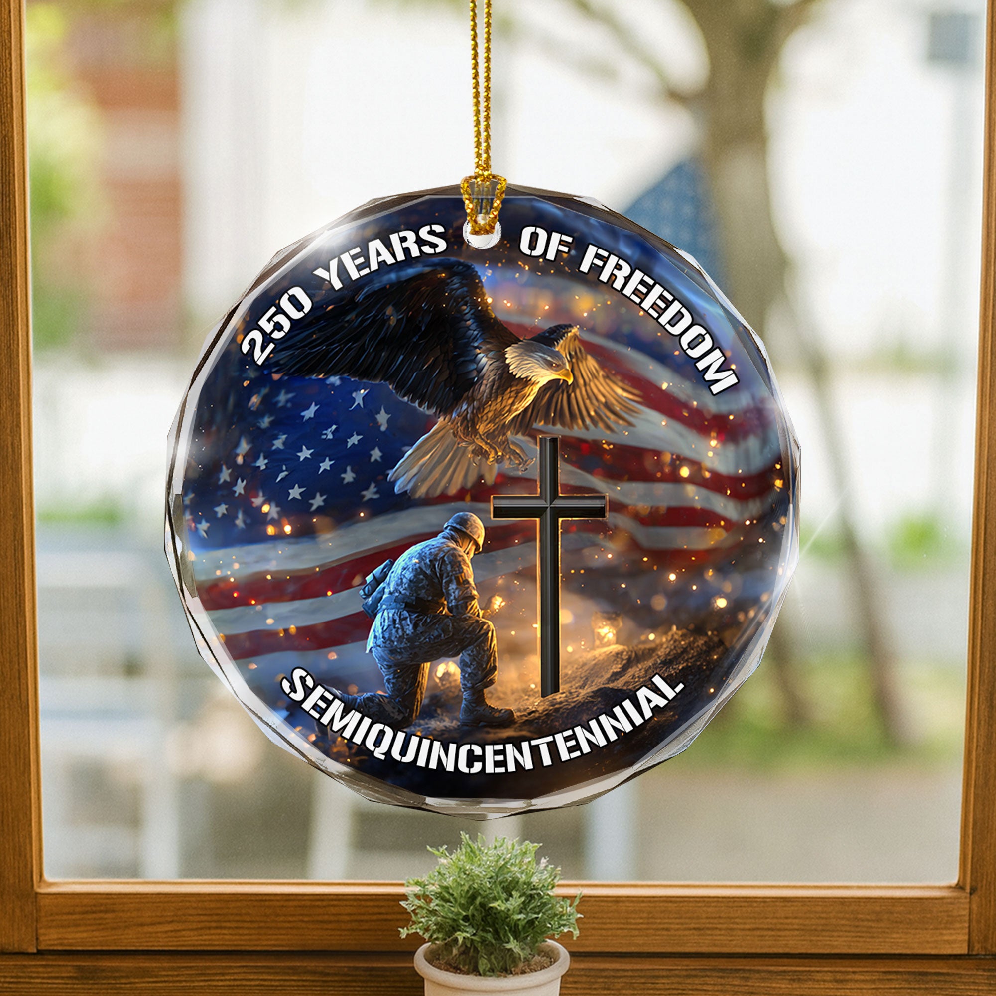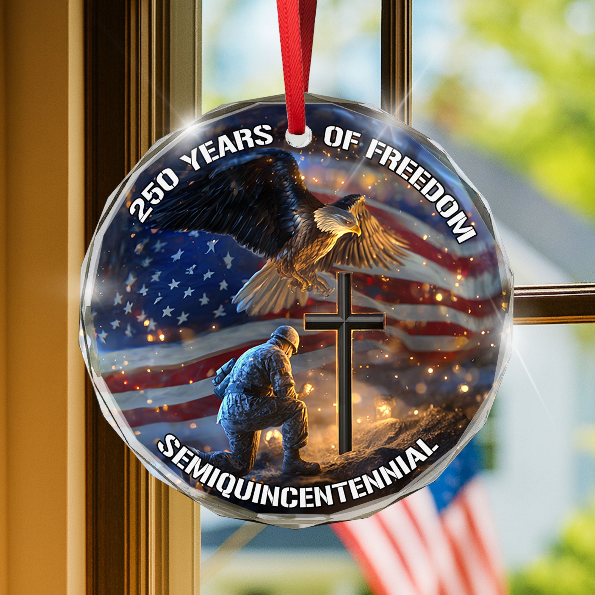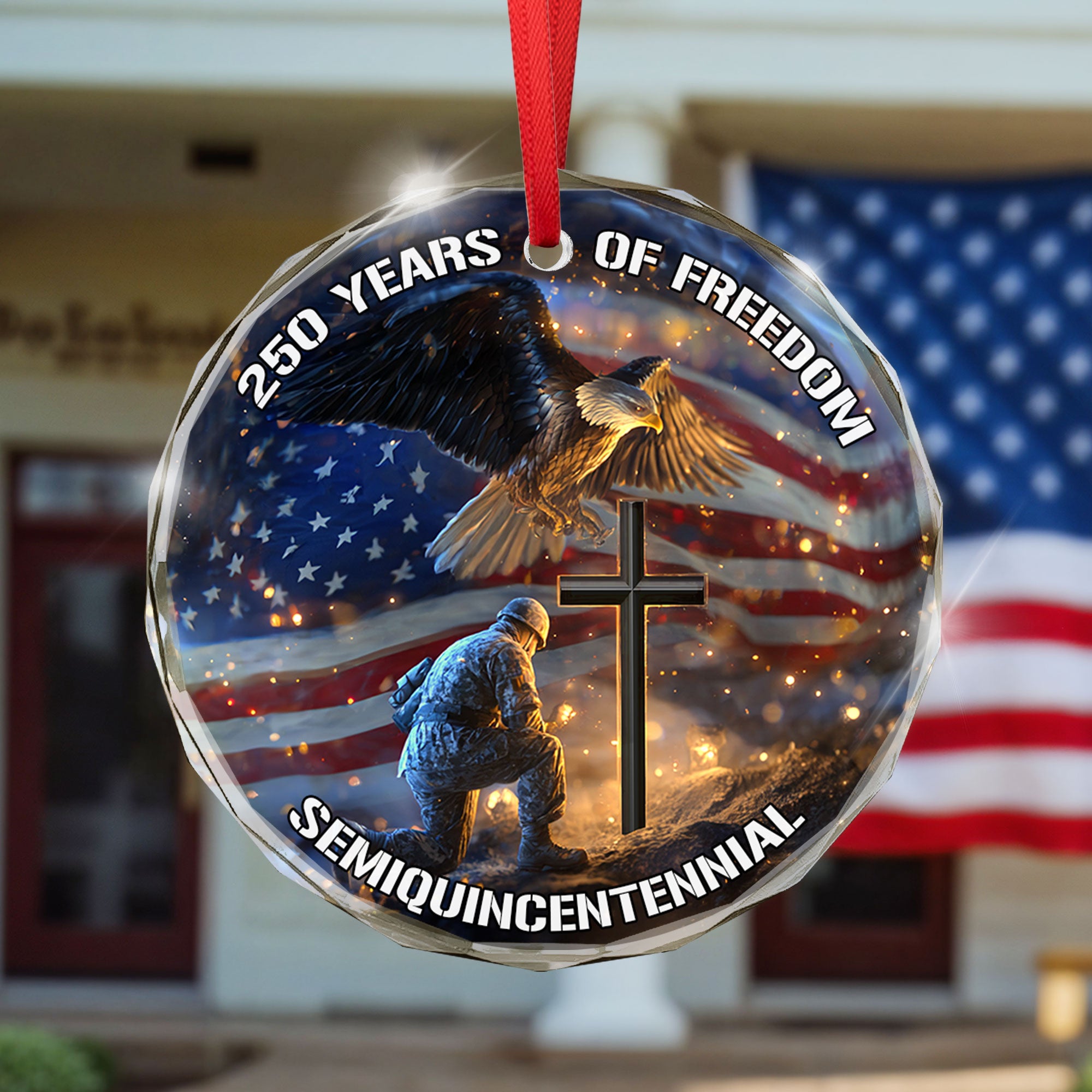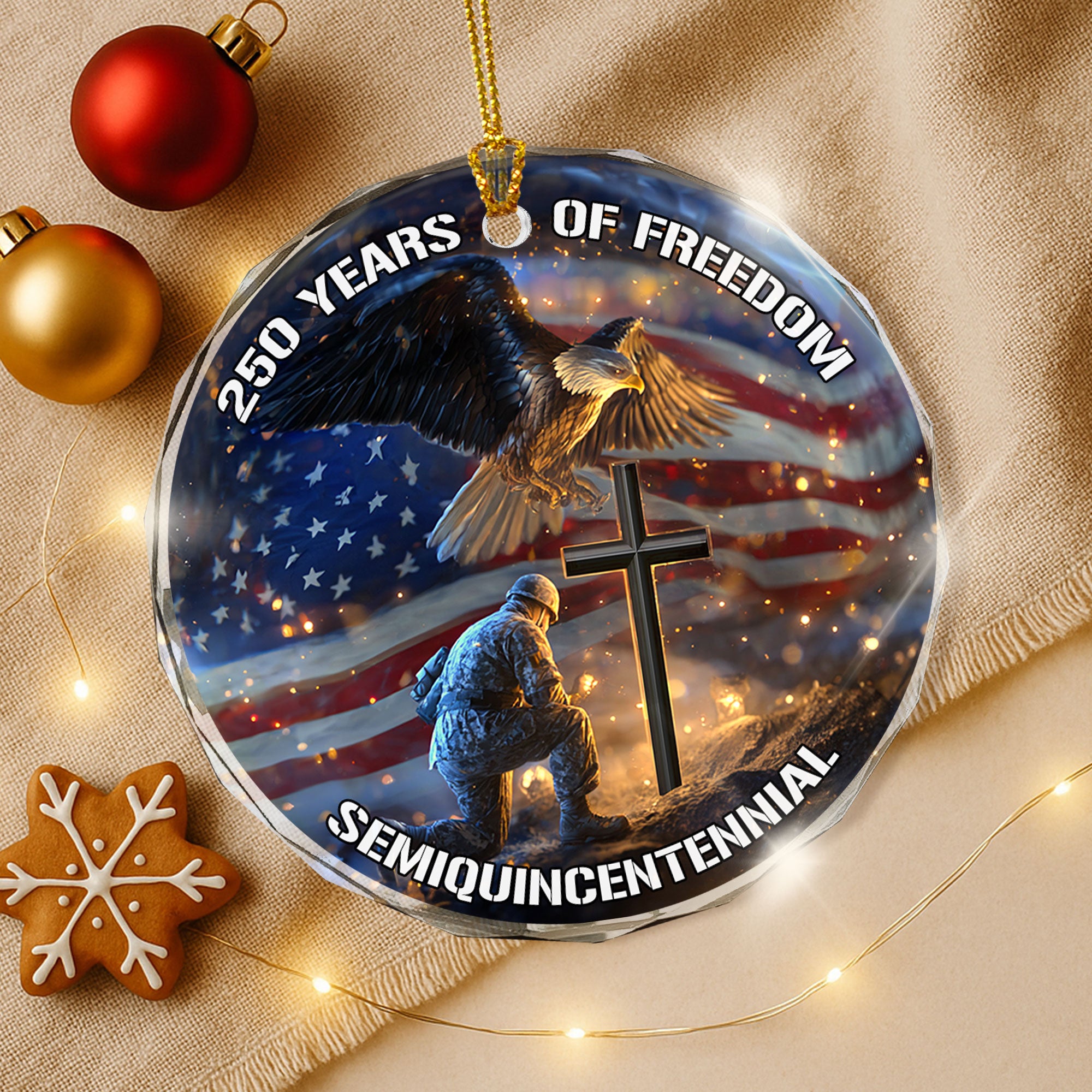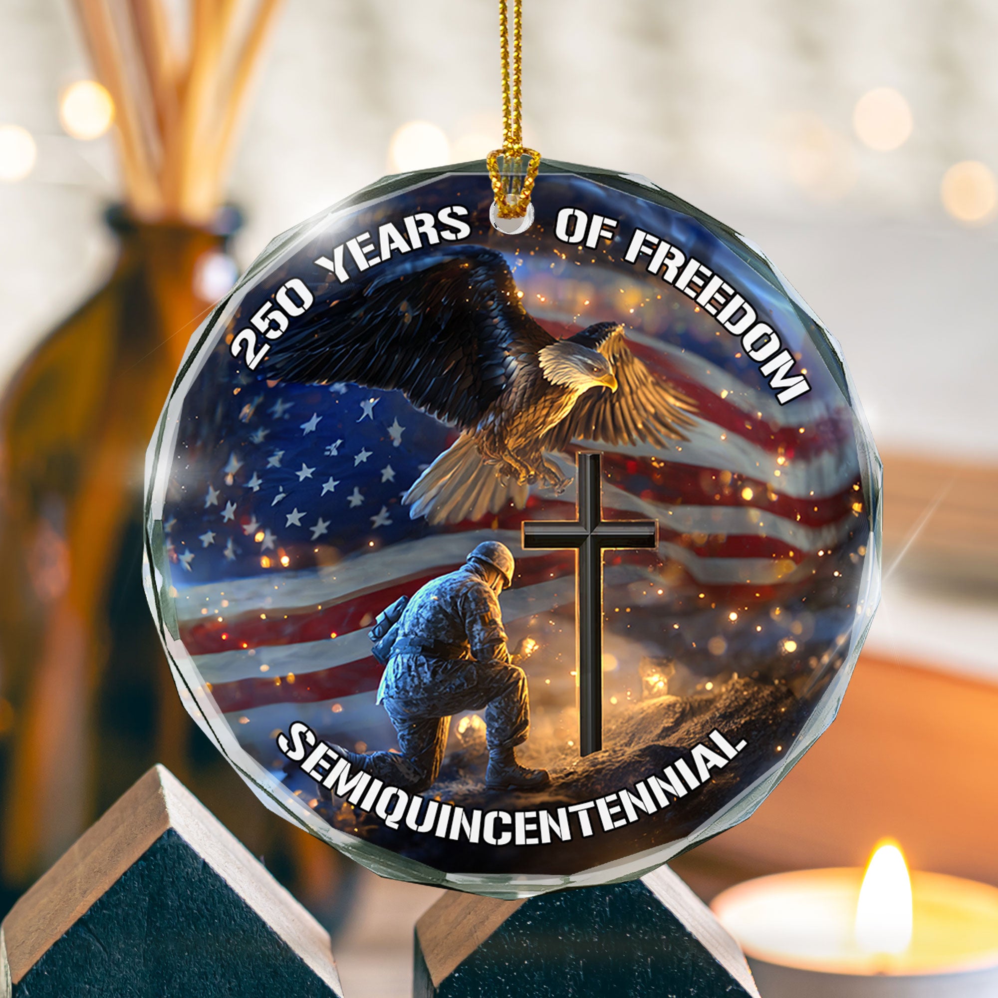 250 Years of Freedom Ornament Eagle Soldier Cross Patriotic Faith Gift
