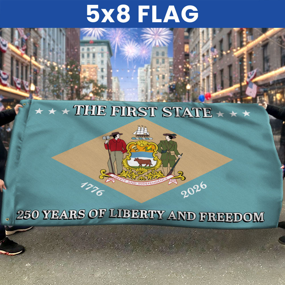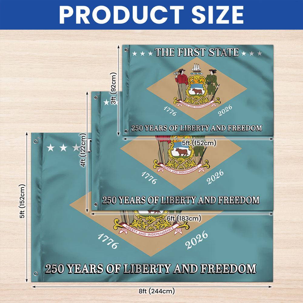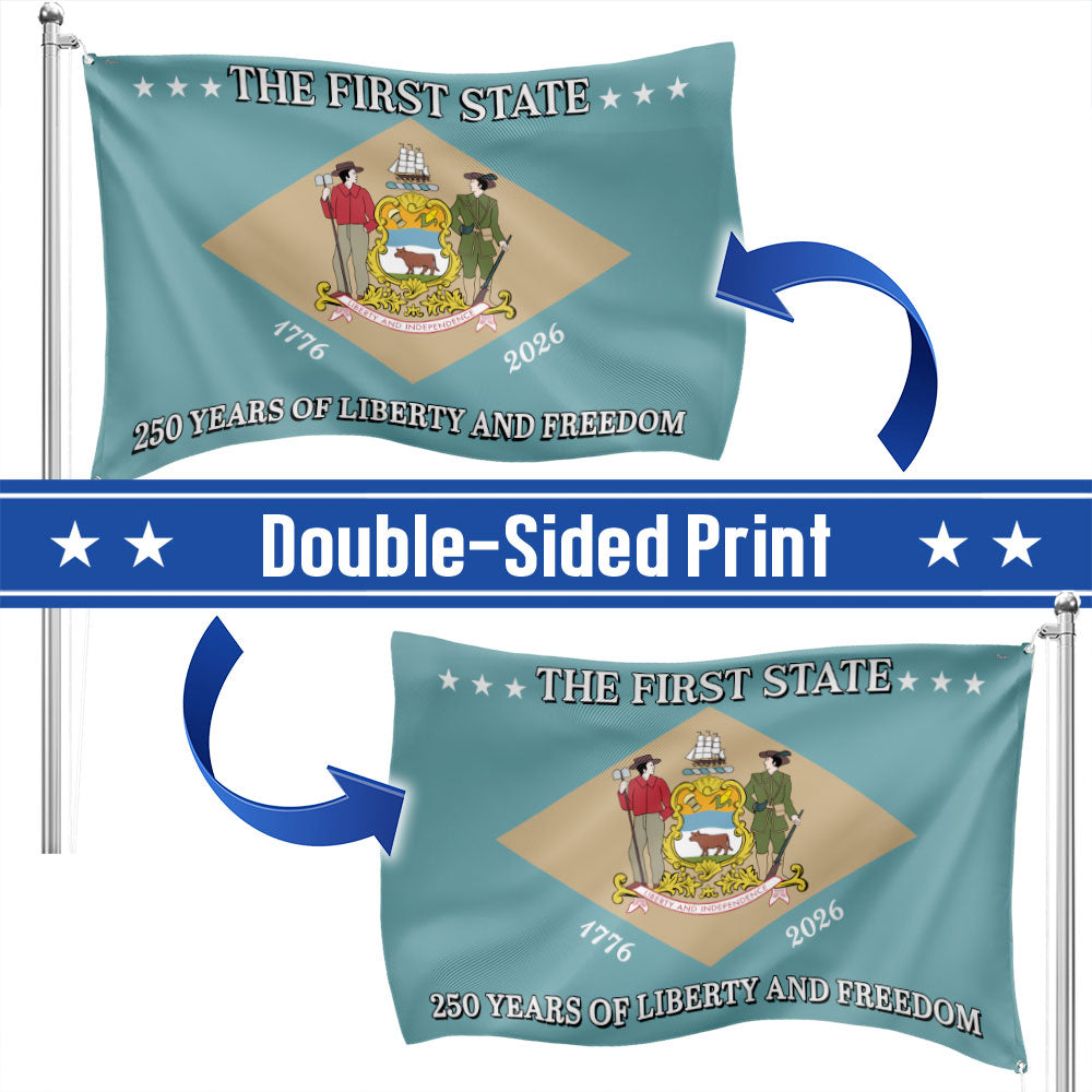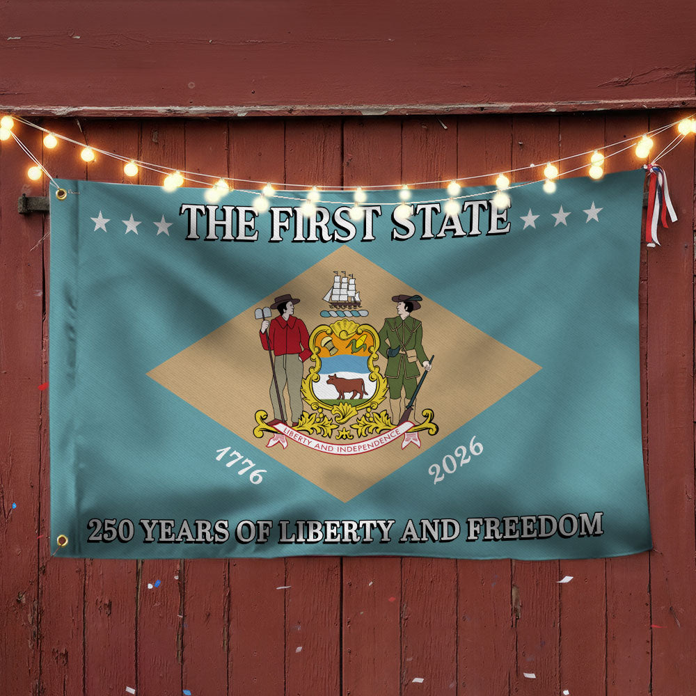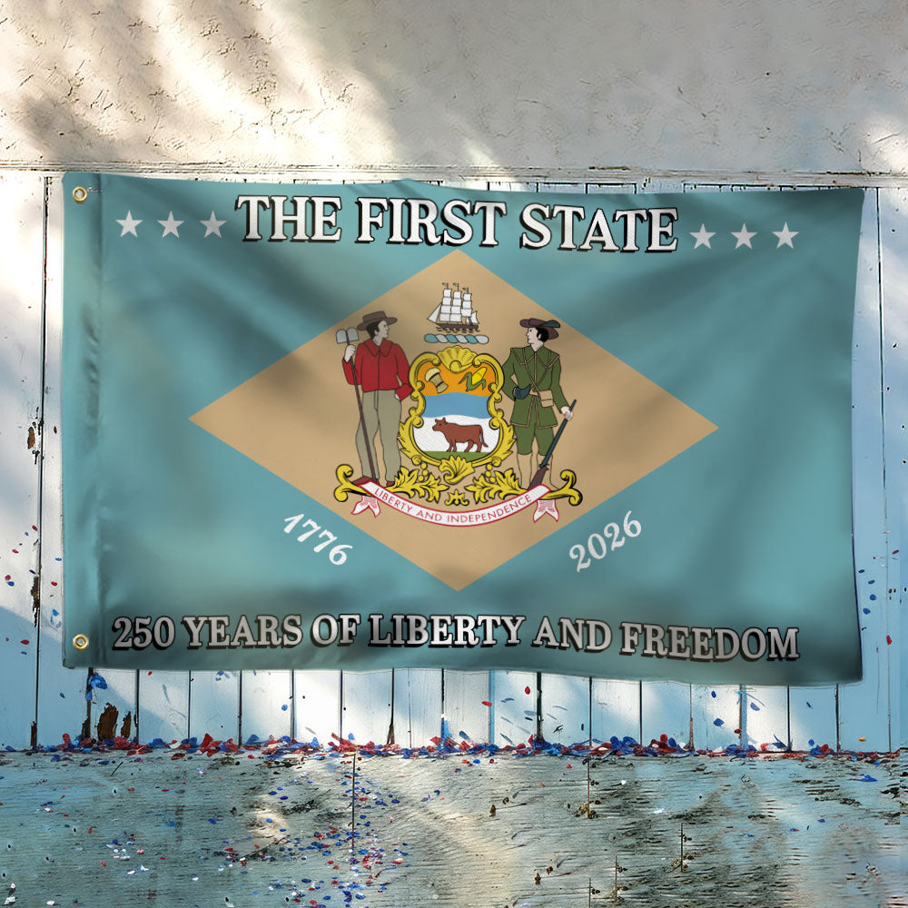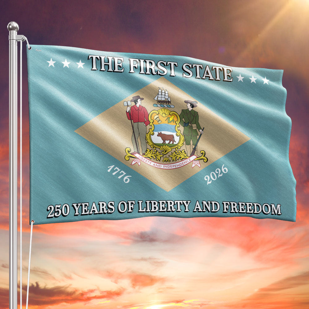250 Years of Liberty and Freedom The First State Delaware Grommet Flag Are you looking for something to decorate your home more outstandingly or make a gift for your beloved? Our custom printed flags would be a wonderful choice for a home decor accessory or a perfect gift to give your families and friends.
