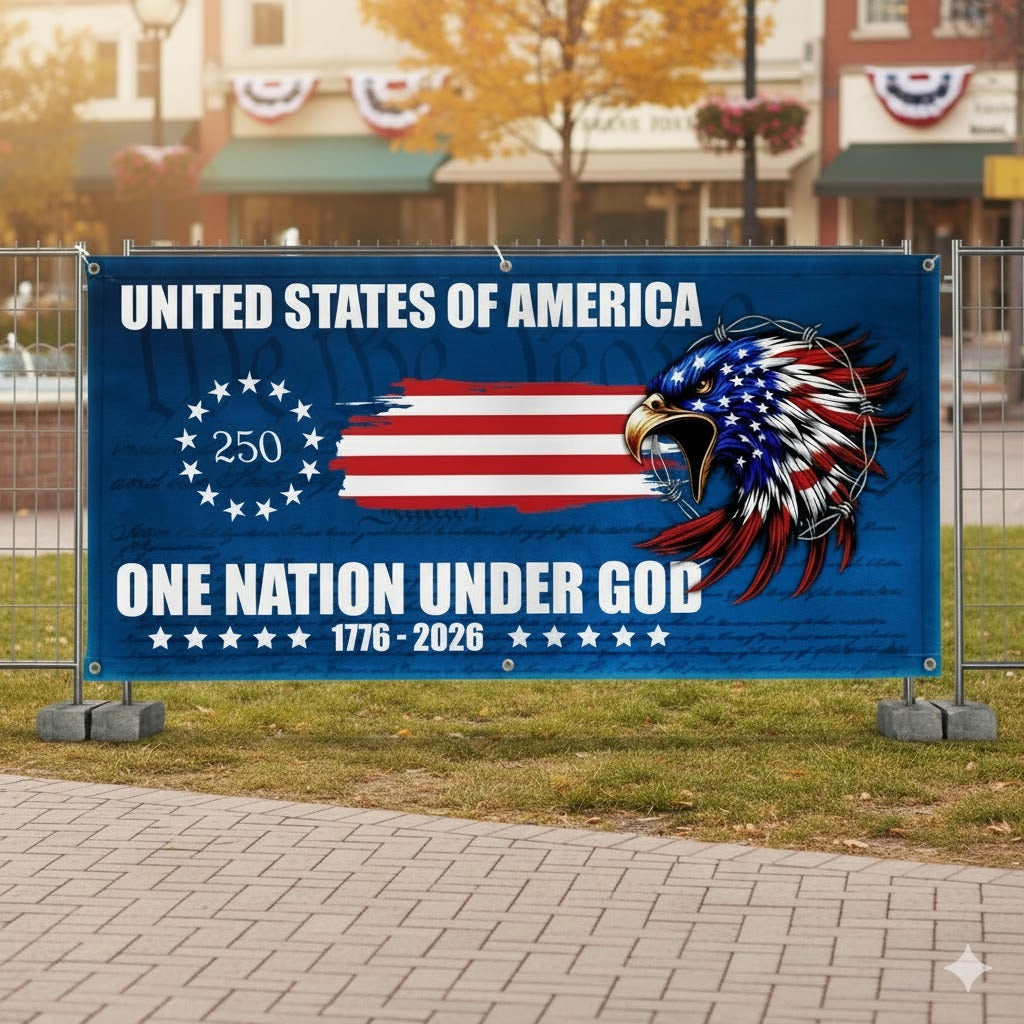 250th Anniversary Fence Banner One Nation Under God Betsy Ross Flag Flagwix's Fence Banner