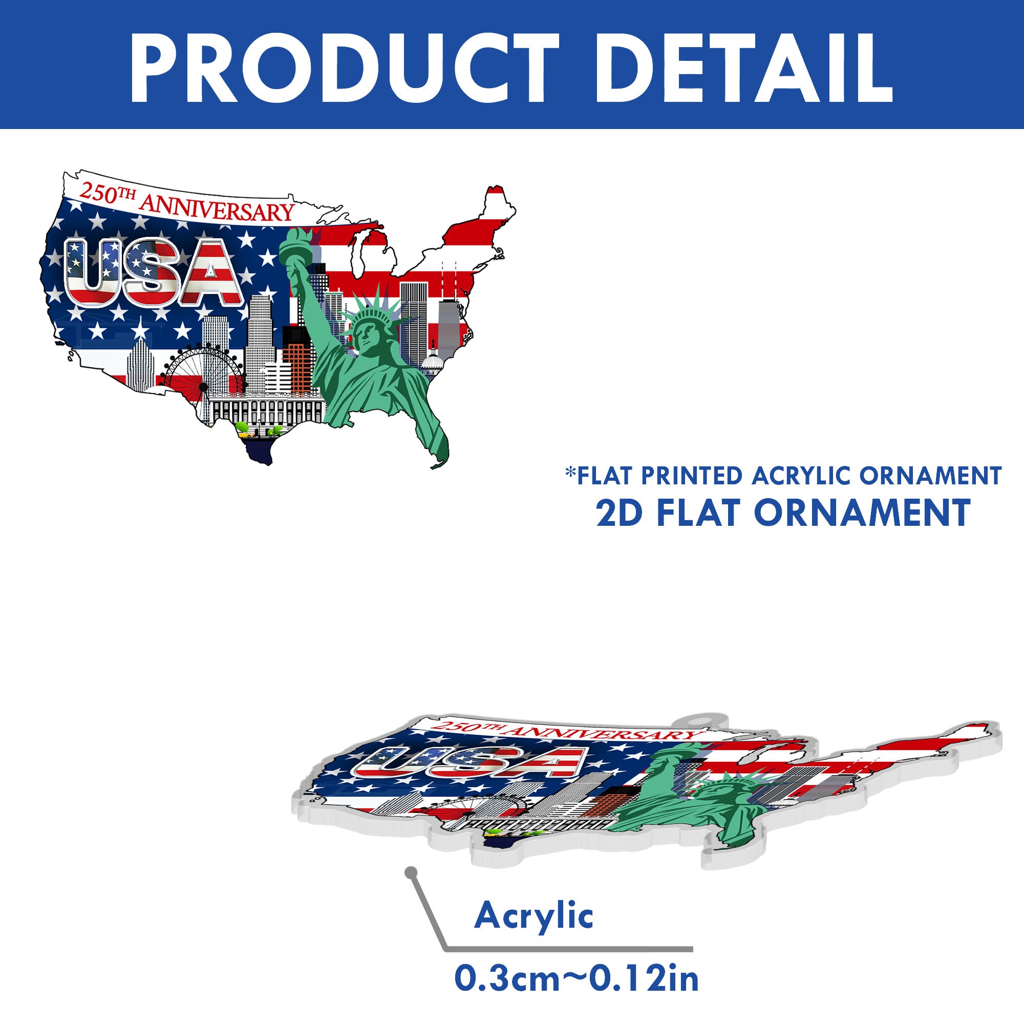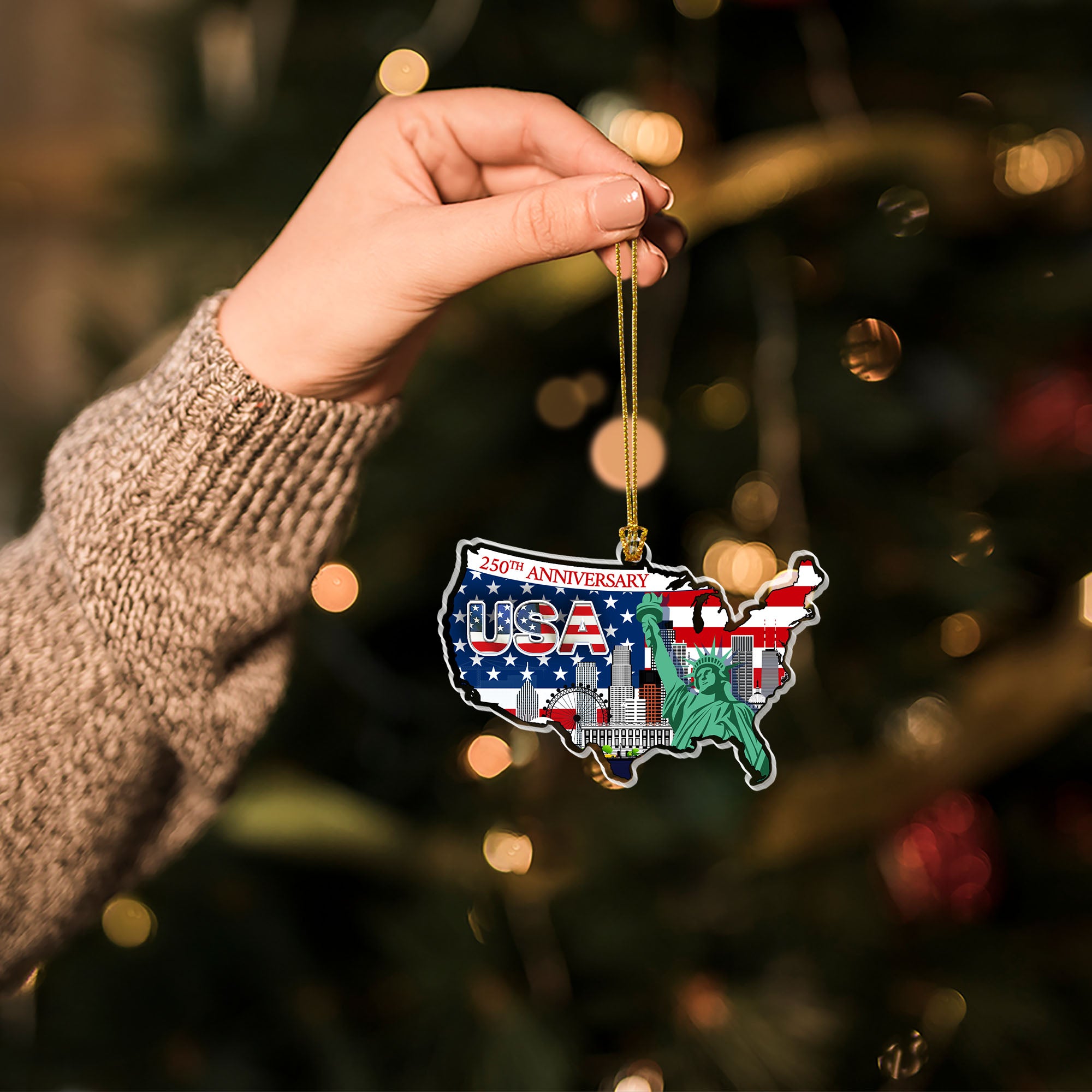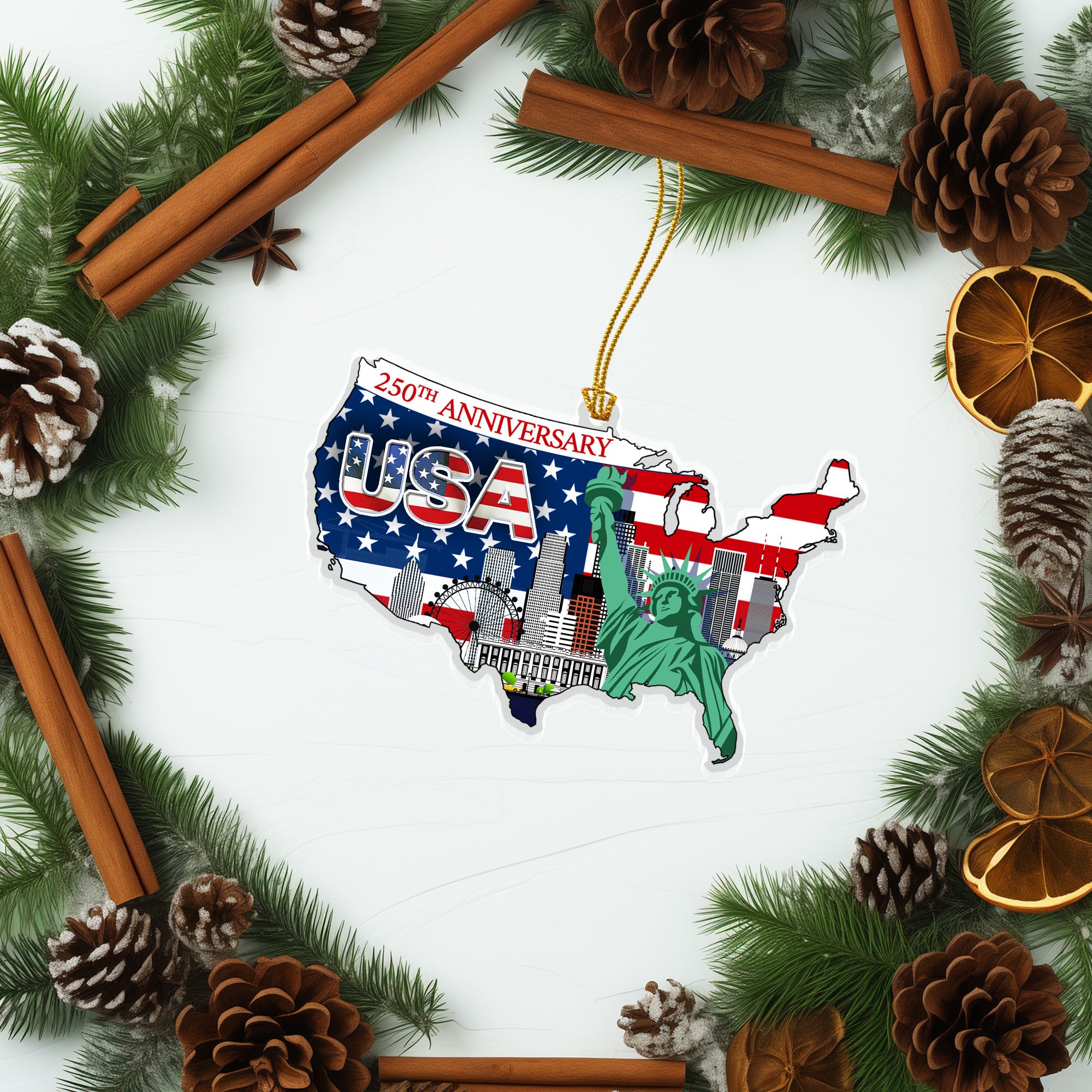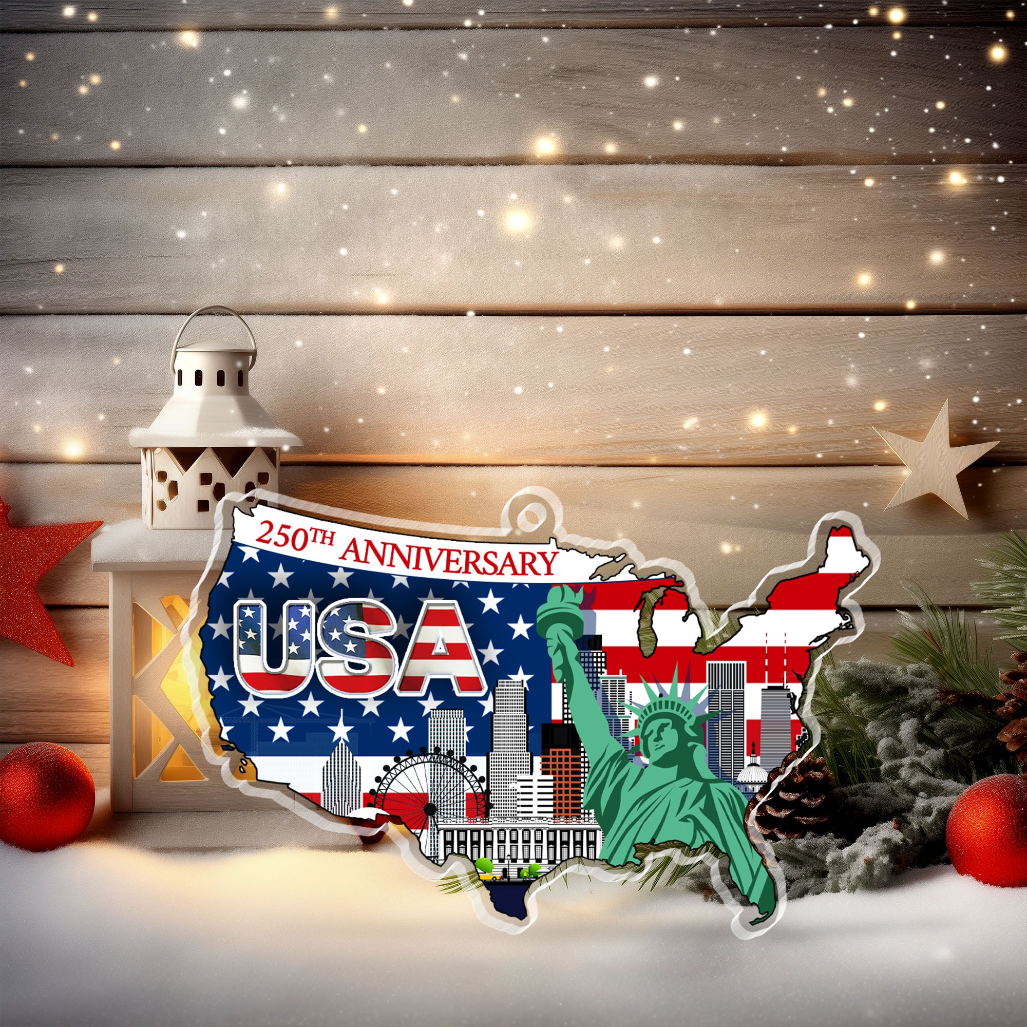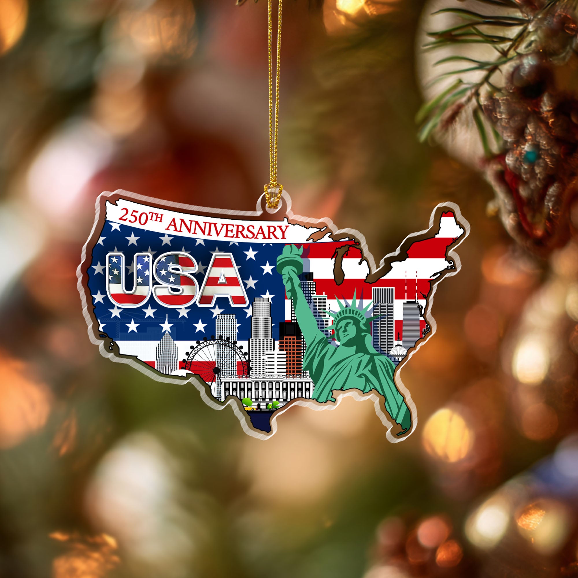250th Anniversary Ornament | USA Map Liberty Patriotic Acrylic Ornament