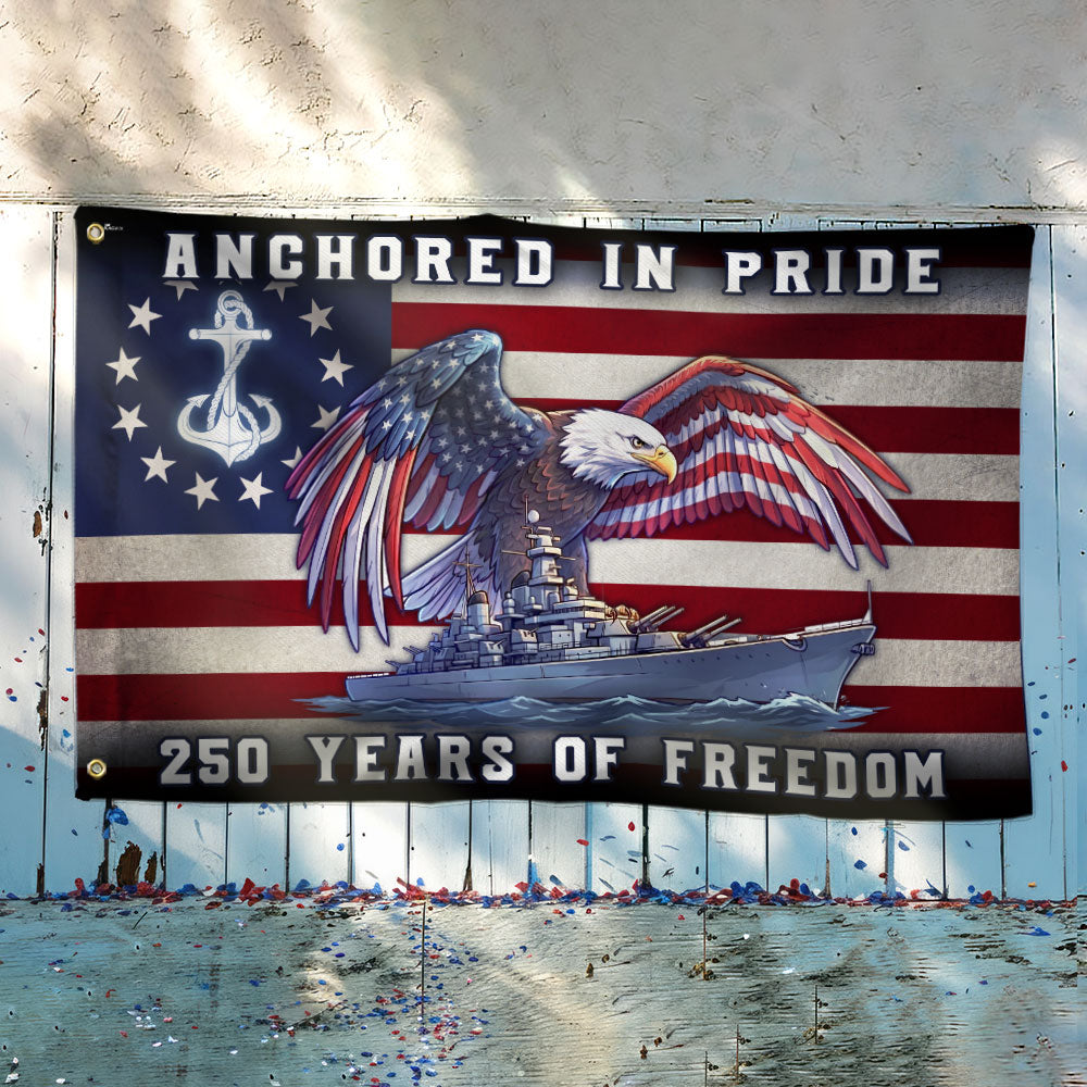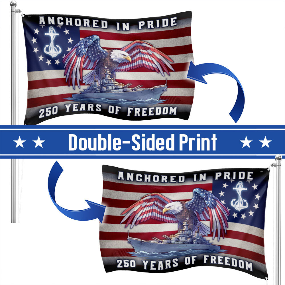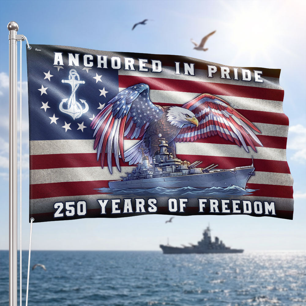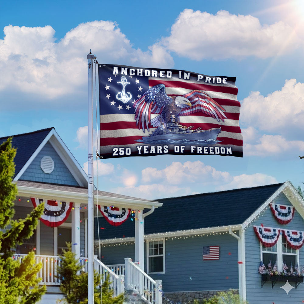 America Navy Flag, 250 Years of Freedom Anchored in Pride Patriotic Grommet Flag