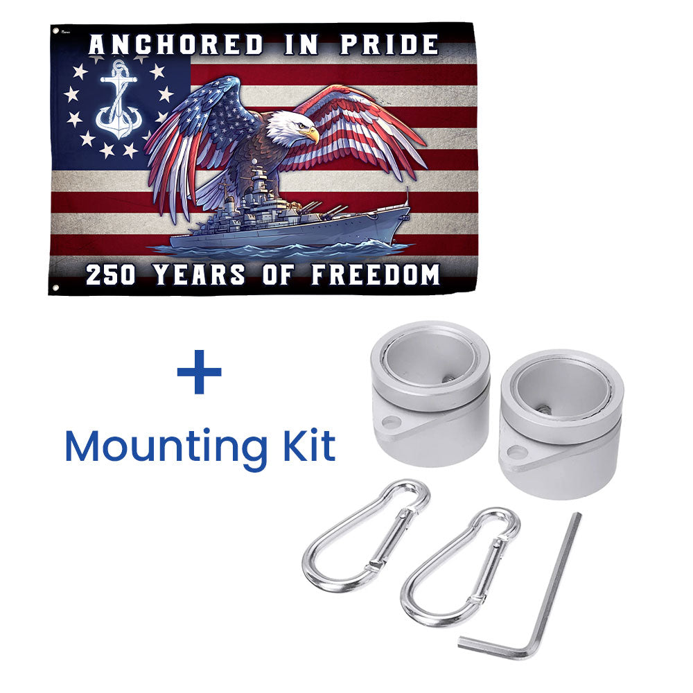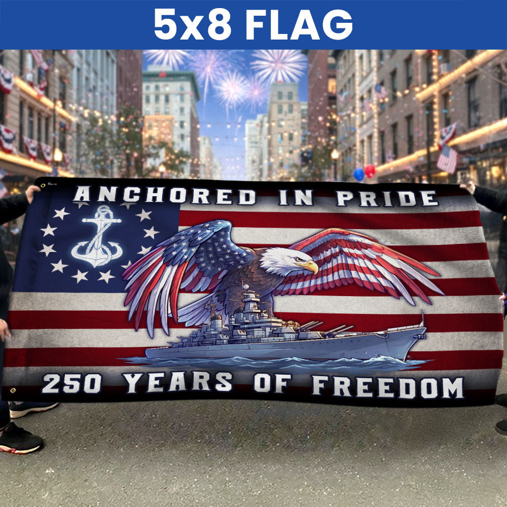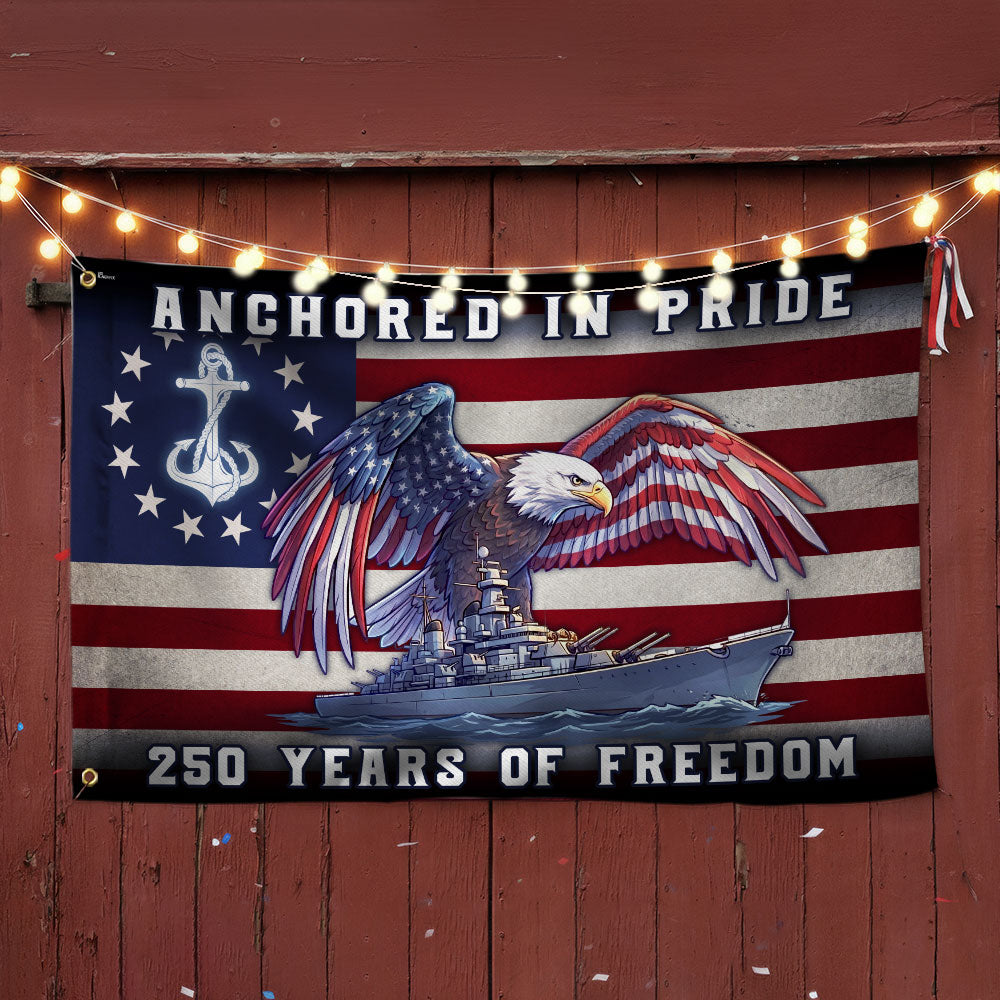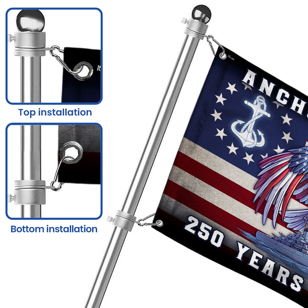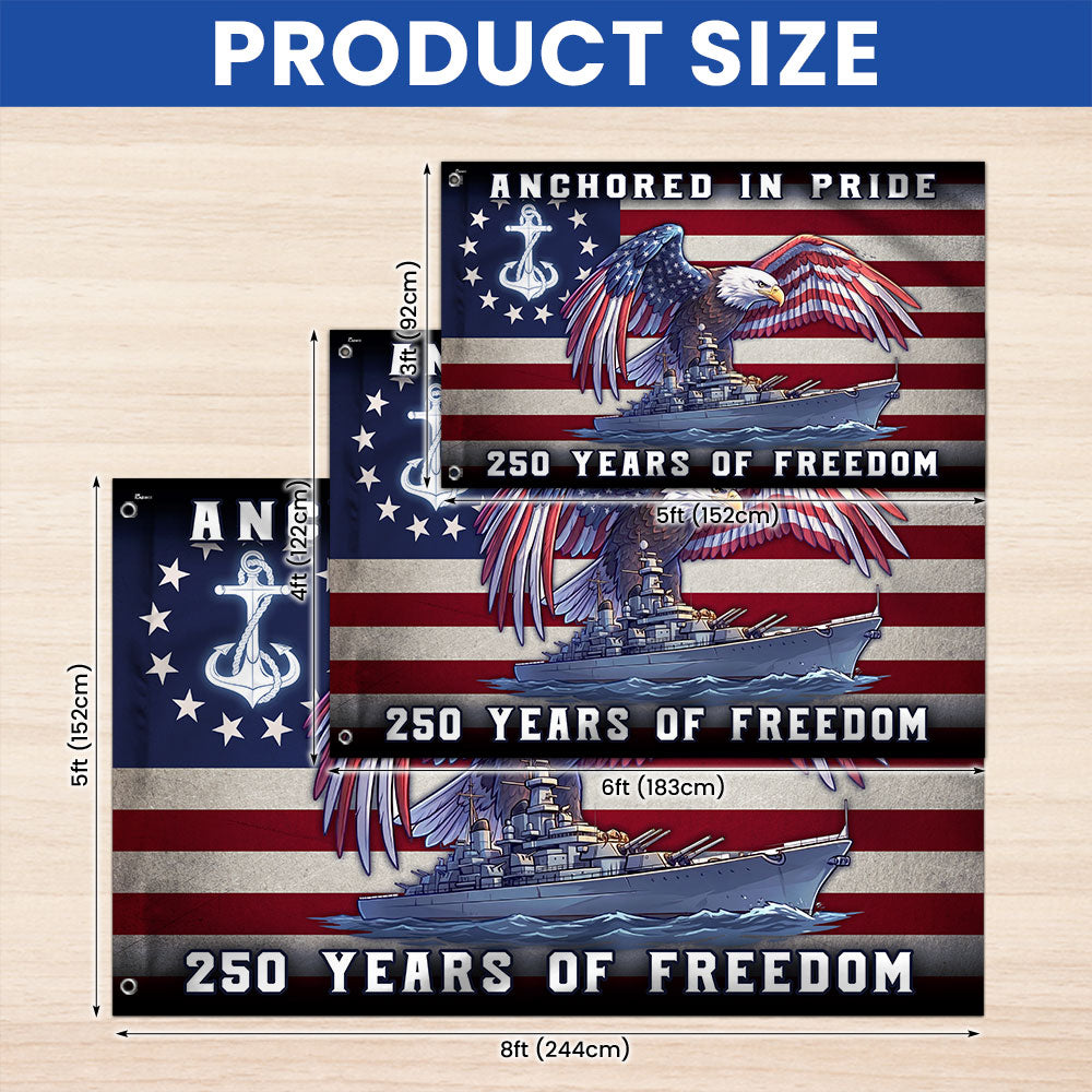 America Navy Flag, 250 Years of Freedom Anchored in Pride Patriotic Grommet Flag