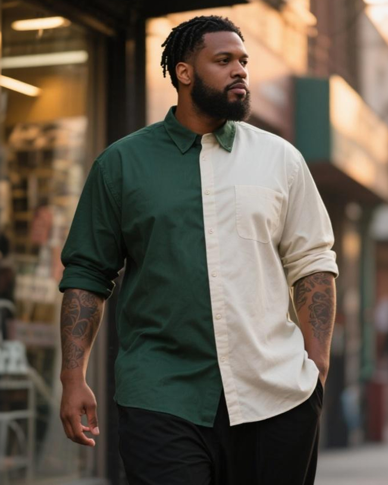 Big & Tall Men's Business Blue And White Colorblock Printed Long Sleeve Shirt