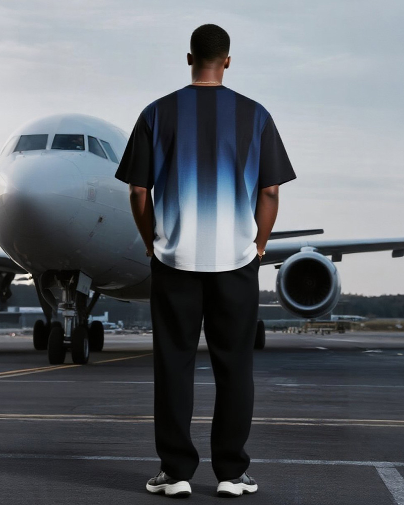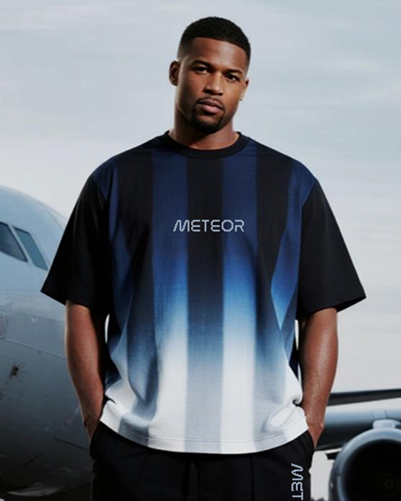 Big & Tall Men's Sport Gradient Blue Stripe Meteor Alphabet Print T-Shirt Pants Suit