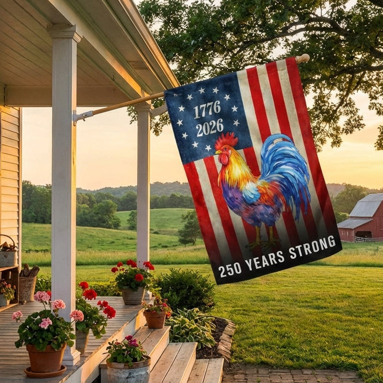 Chicken American Flag, 250 Years Strong Patriotic Rooster US Flag