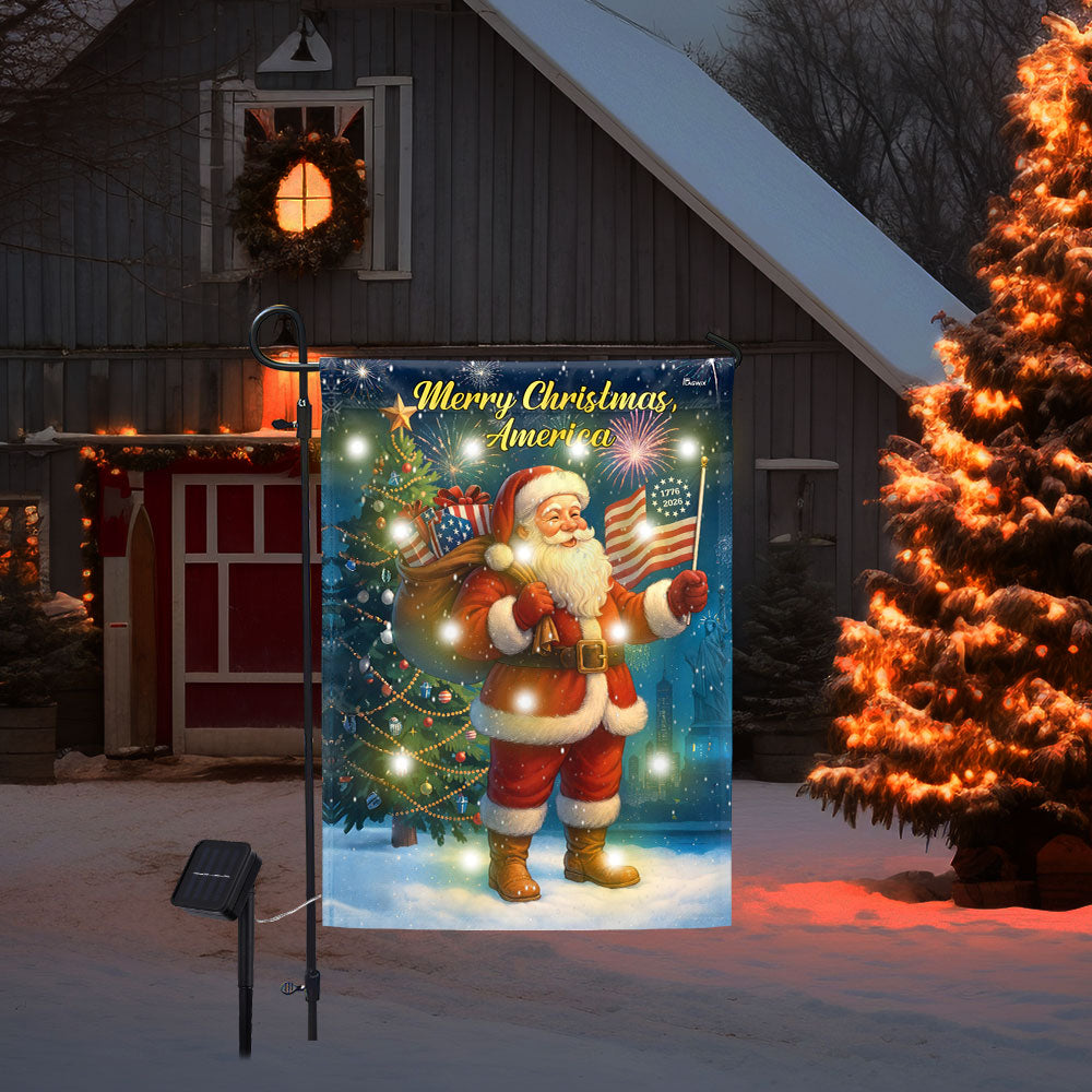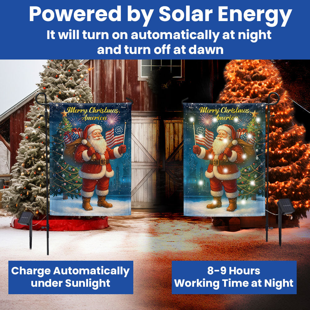 Our Solar Led Lights garden flag is perfect for solar outdoor christmas decorations, merry birthday decorations, winter decorations outdoor, christmas party decorations creating joyful atmosphere to your christmas party. Pretty present christmas house flag gift for home outdoor house outside garden, back yard, lawn, front porch or veranda, patio, deck decorations.