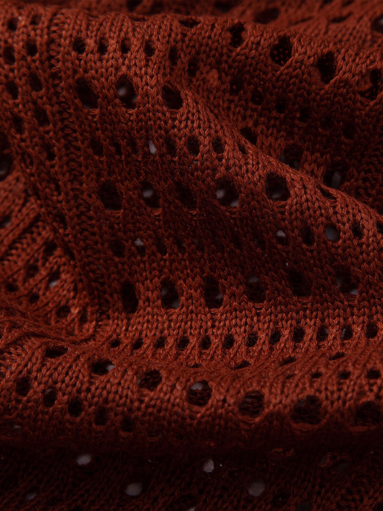 Relaxed yet elevated, this crochet V-neck polo & linen pants set blends breathable texture with effortless sophistication. With its openwork knit polo and easy-tailored linen trousers, this set is ideal for warm-weather days, stylish getaways, and modern minimalists.