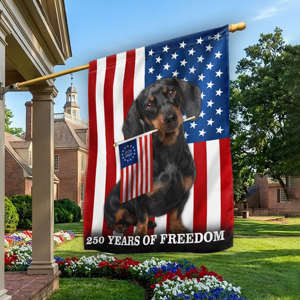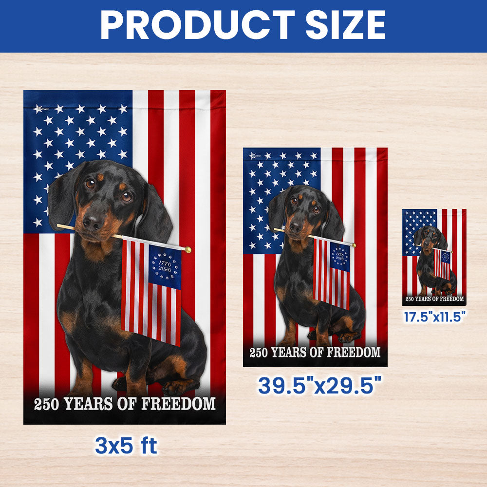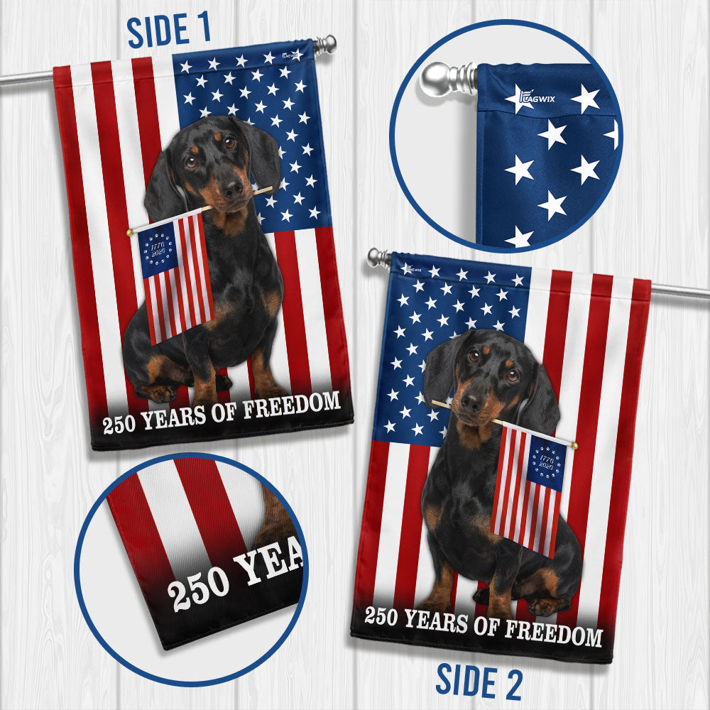 Dog American Flag, 250 Years of Freedom Dachshund Dog US Flag Are you looking for something to decorate your home more outstandingly or make a gift for your beloved? Our custom printed flags would be a wonderful choice for a home-decor accessory or a perfect gift to give your families and friends.