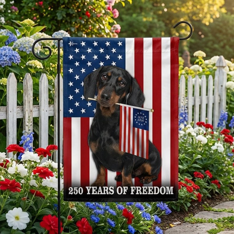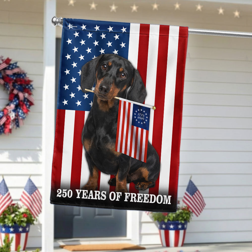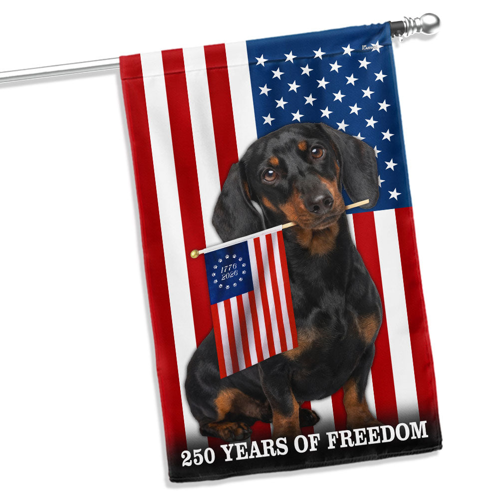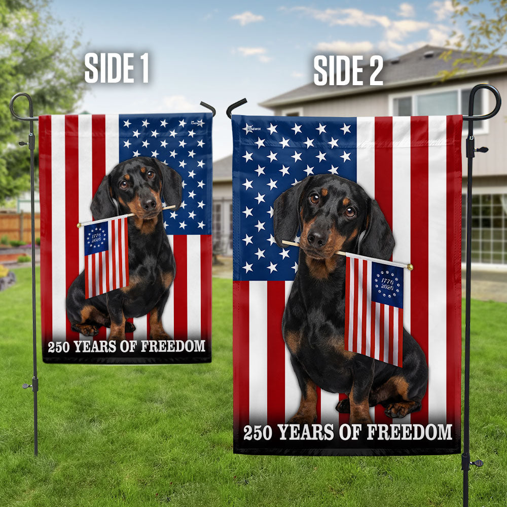 Dog American Flag, 250 Years of Freedom Dachshund Dog US Flag Are you looking for something to decorate your home more outstandingly or make a gift for your beloved? Our custom printed flags would be a wonderful choice for a home-decor accessory or a perfect gift to give your families and friends.