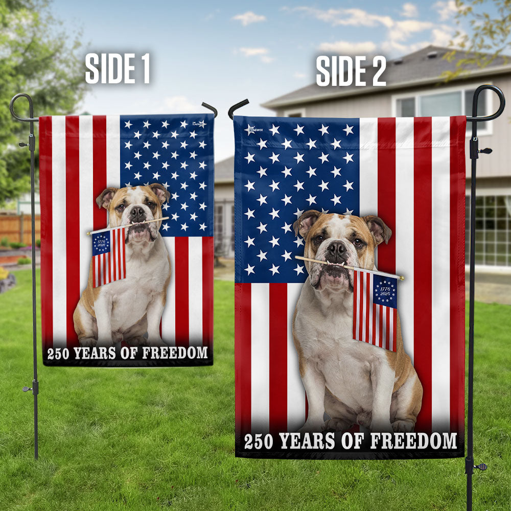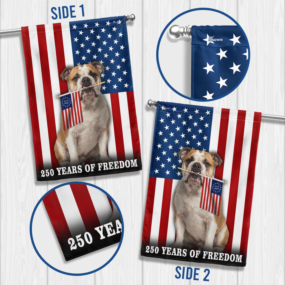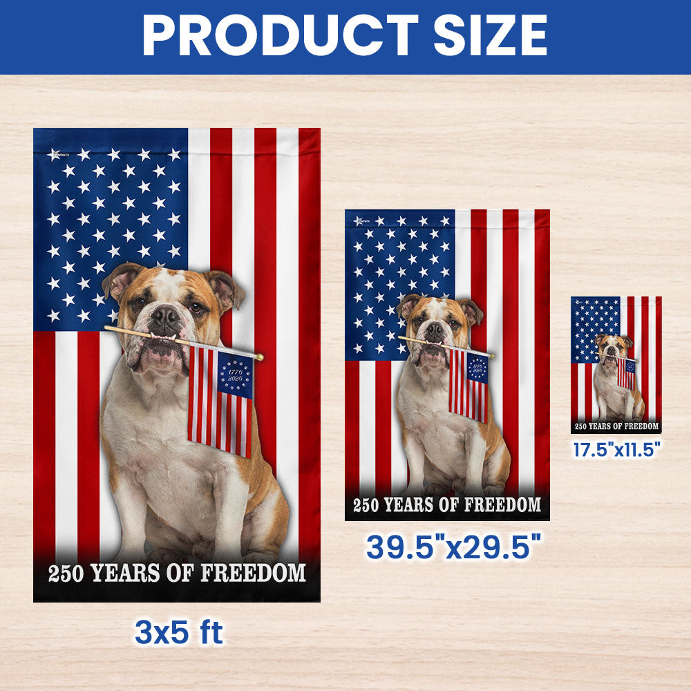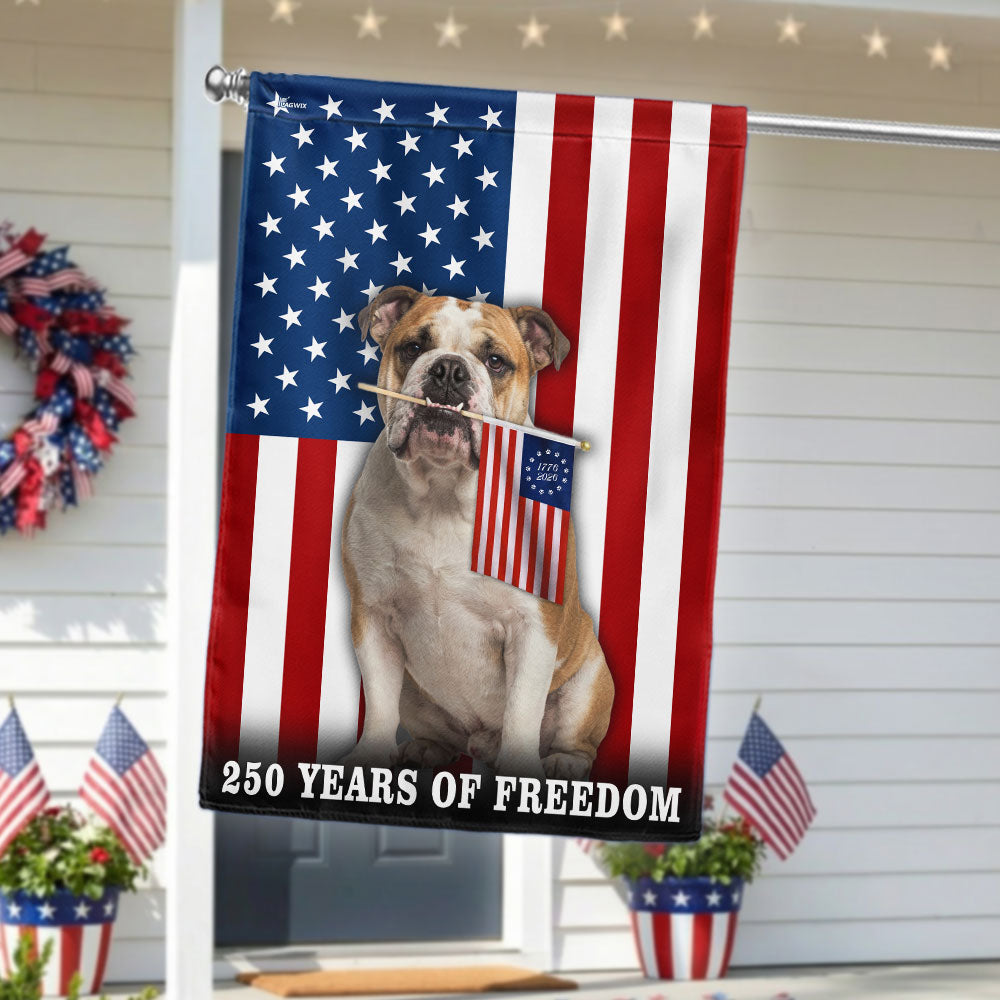 Dog American Flag, 250 Years of Freedom Patriotic Bulldog US Flag Are you looking for something to decorate your home more outstandingly or make a gift for your beloved? Our custom printed flags would be a wonderful choice for a home-decor accessory or a perfect gift to give your families and friends.