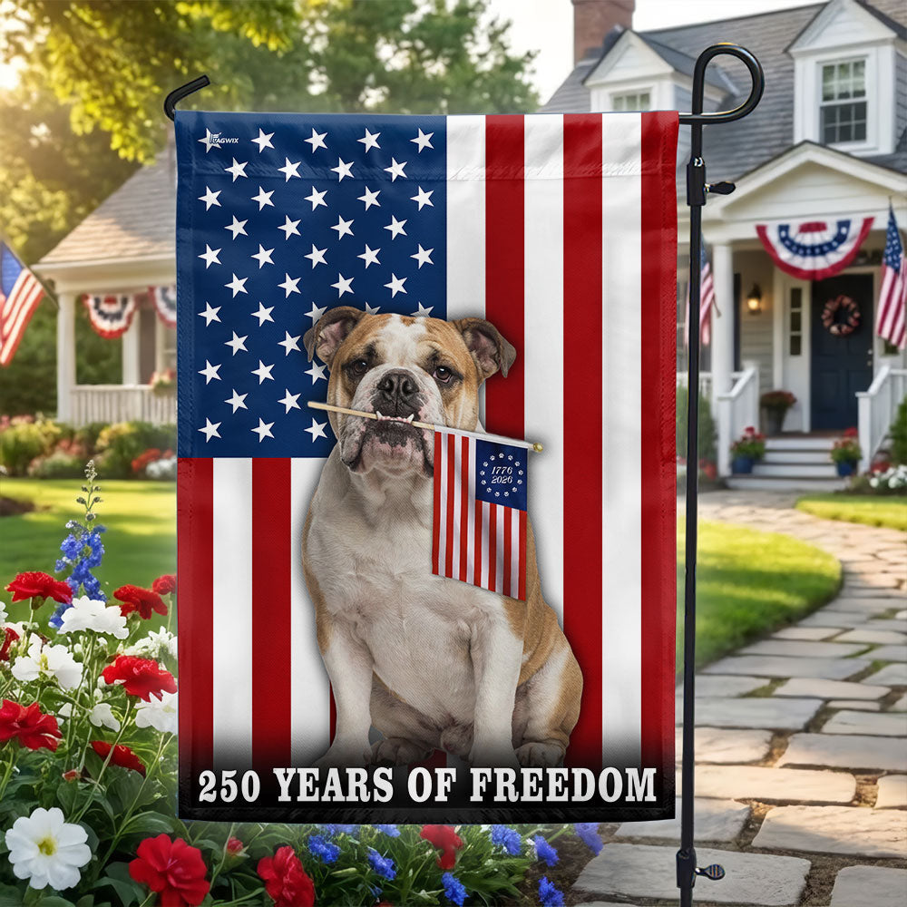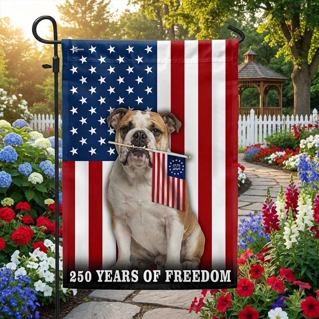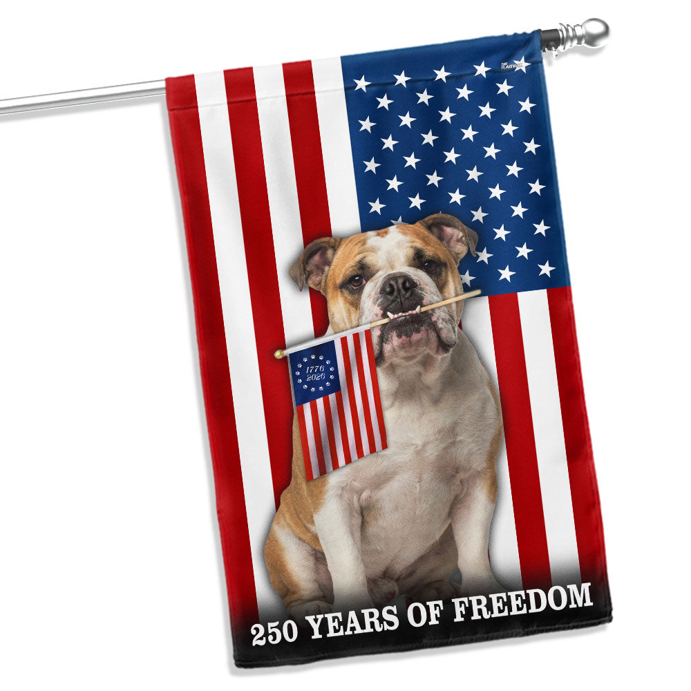 Dog American Flag, 250 Years of Freedom Patriotic Bulldog US Flag Are you looking for something to decorate your home more outstandingly or make a gift for your beloved? Our custom printed flags would be a wonderful choice for a home-decor accessory or a perfect gift to give your families and friends.