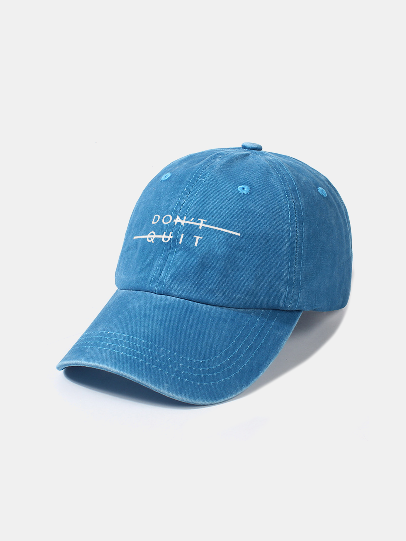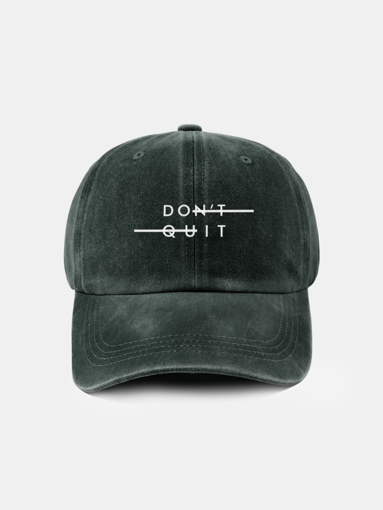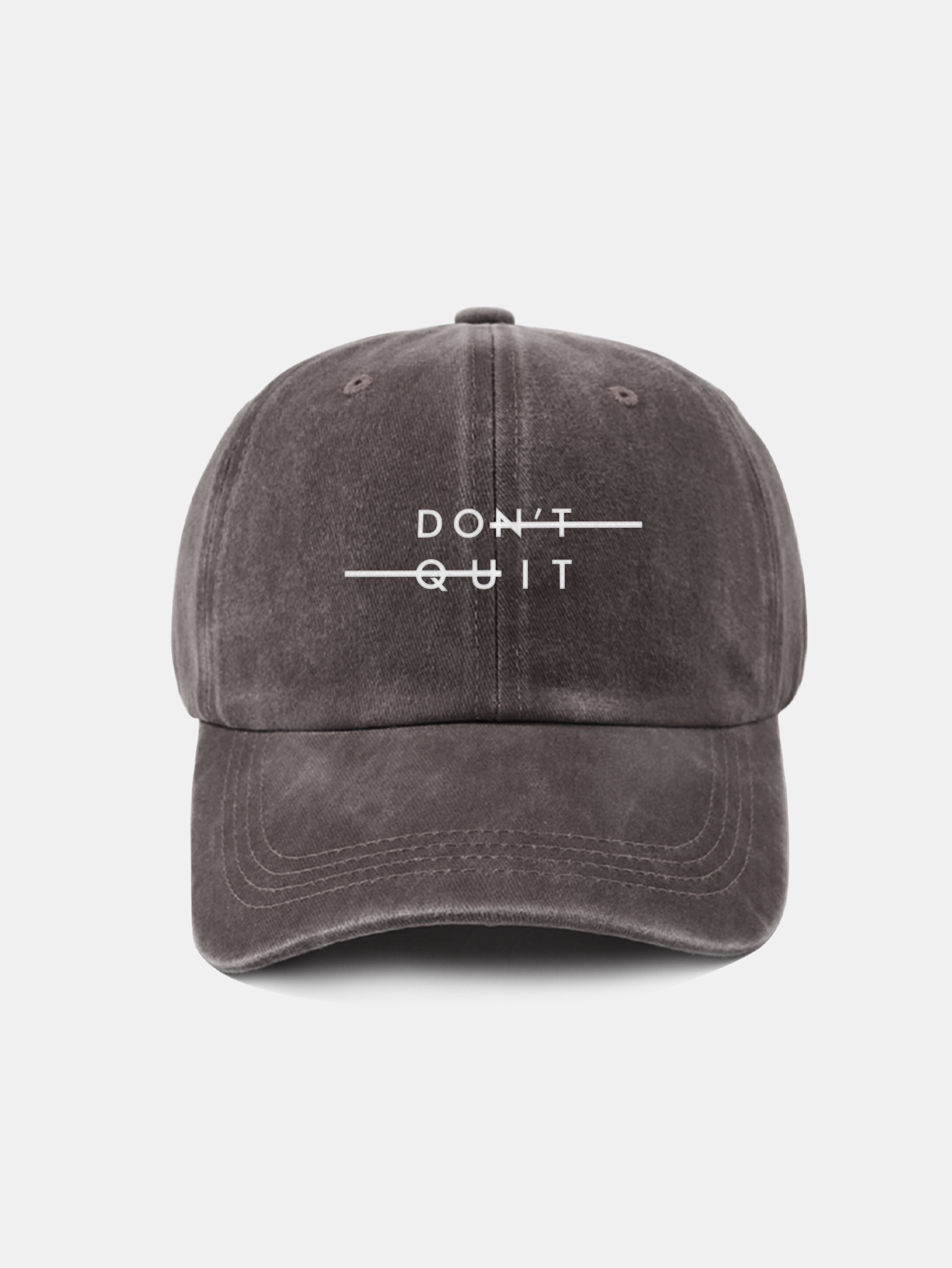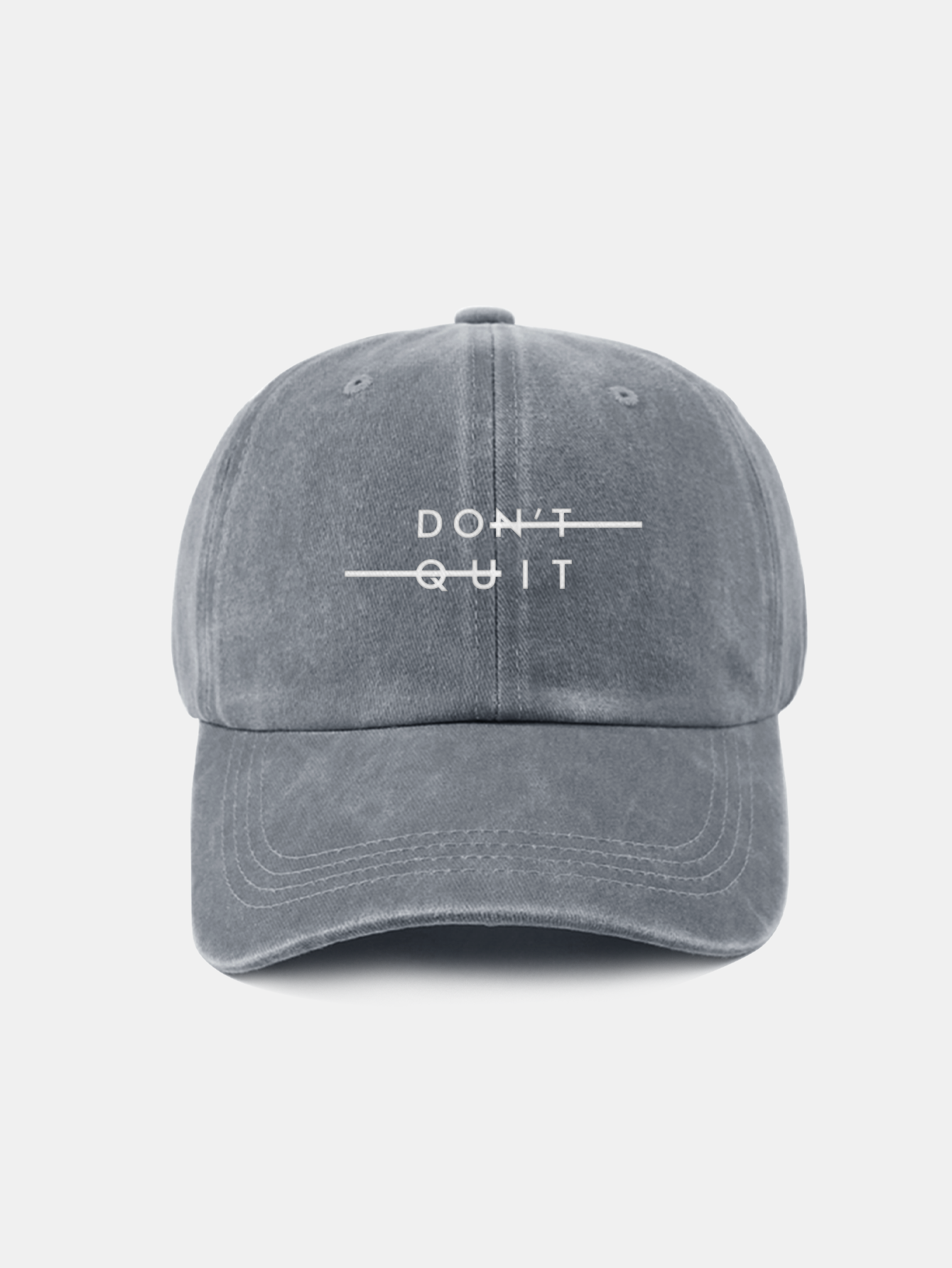 Stay motivated in style with this "Don't Quit" washed baseball cap. Featuring a powerful message subtly hidden in plain sight, this cap blends casual comfort with inspiring design. The vintage-washed finish gives it a relaxed, lived-in look, while the adjustable strap ensures a perfect fit for all-day wear.