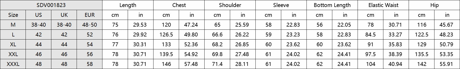 Bottoms: Elastic waistband with adjsutable drawstring, two slant pockets