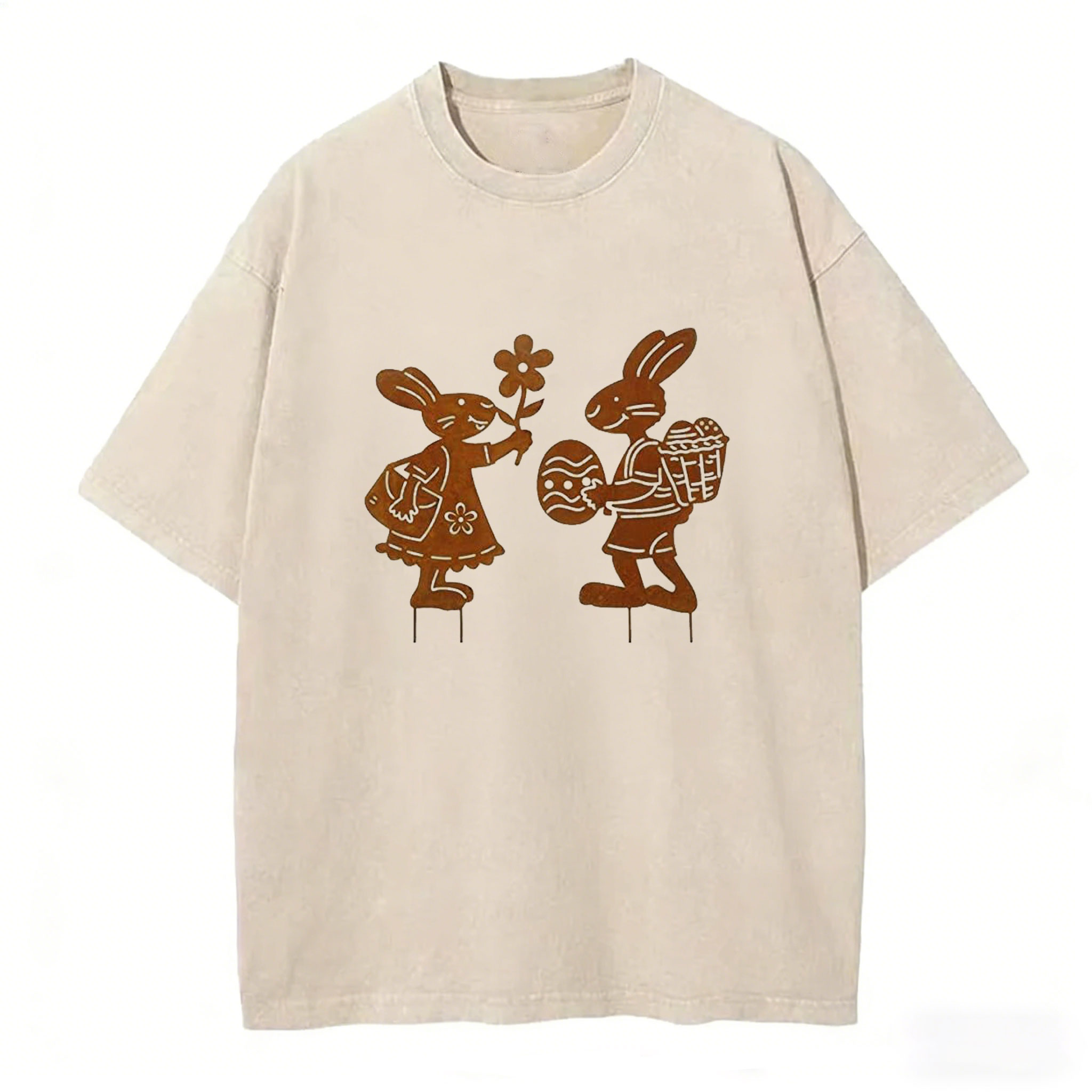 Easter Sunday Men's Casual Easter Printed Vintage Wash Apricot Short Sleeved T-Shirt