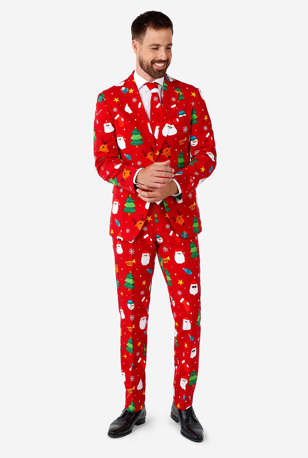 Christmas is the gift that keeps on giving, every year. If you are in need of a festive look for the holidays, than seek no further than the green Festivity Christmas suit. It has Santa, reindeer, Christmas trees and glittering stars It is the most festive look you've ever had and will put you firmly on Santa's 'good'-list as a yearly reward.