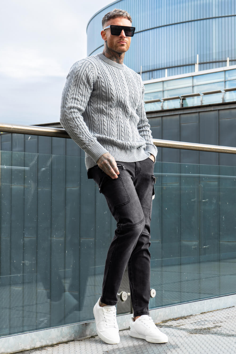 Super comfortable and high-stretch denim jeans designed with a form-flattering, muscular thighs fit. Our gray skinny jeans mens fit your lower body to wear all day long and can be paired with our popular basic tops.