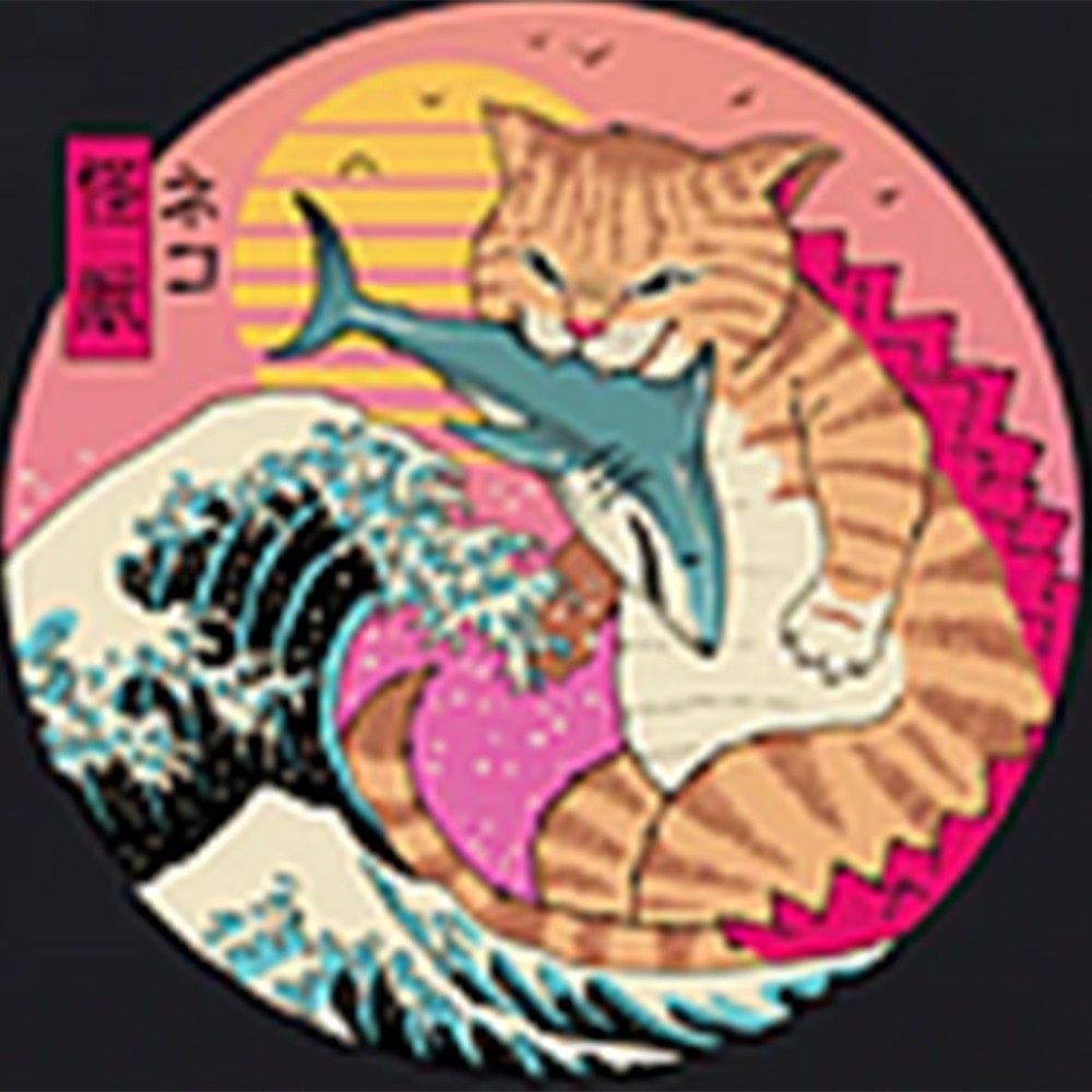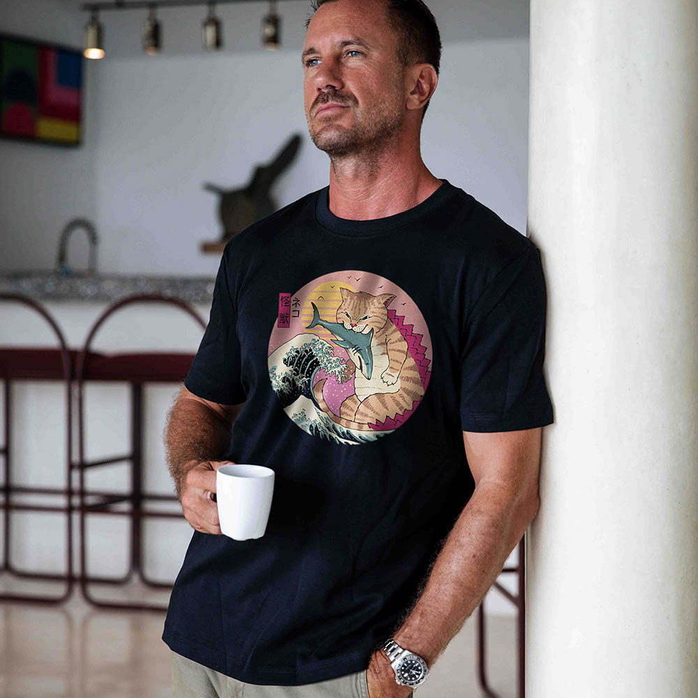 Hawaiian Tee For Men Super Catzilla Tee Crew Neck 100% Cotton - BLACK Super Catzilla - Black