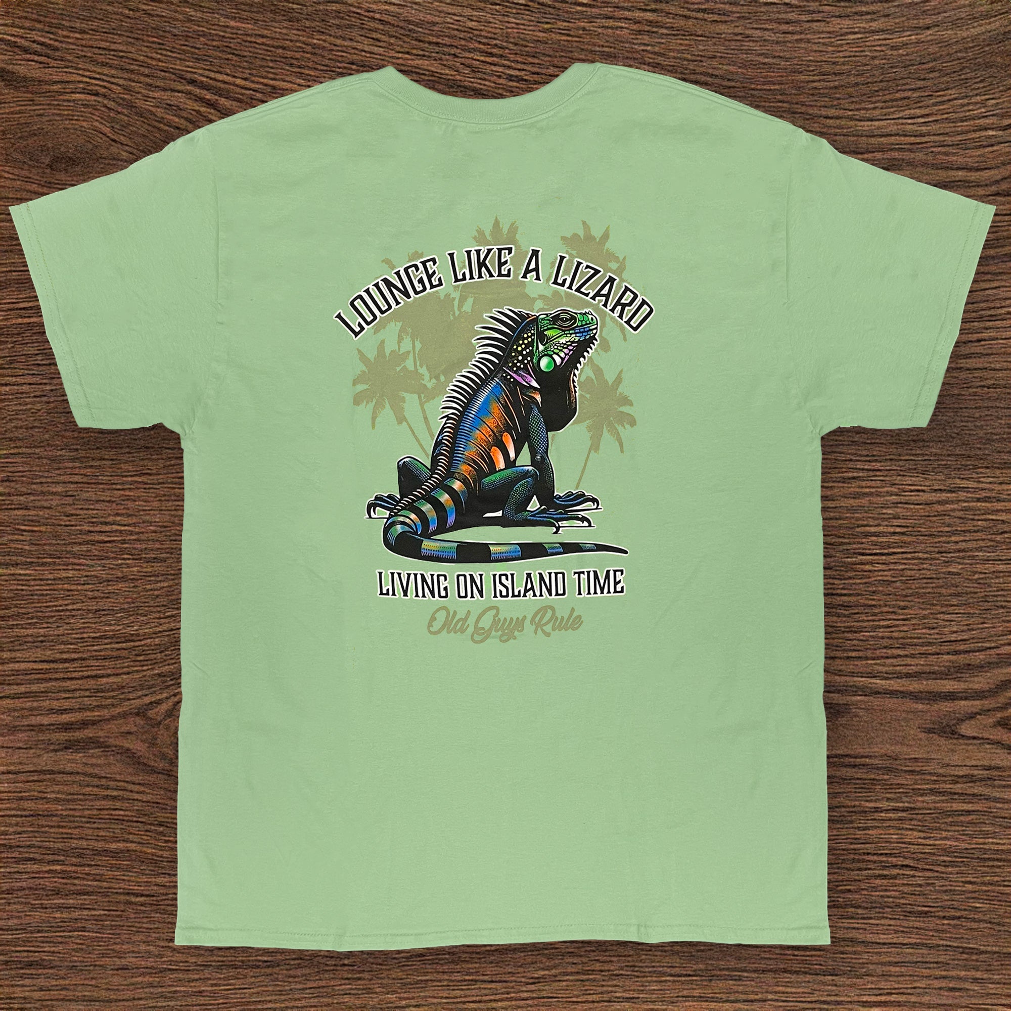 | Shirt Text: "Lounge Like a Lizard -Living On Island Time - Old Guys Rule" |