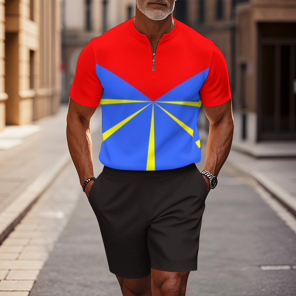 Men's fashion casual round-neck zipper geometric printed short-sleeved two-piece set 2505000447