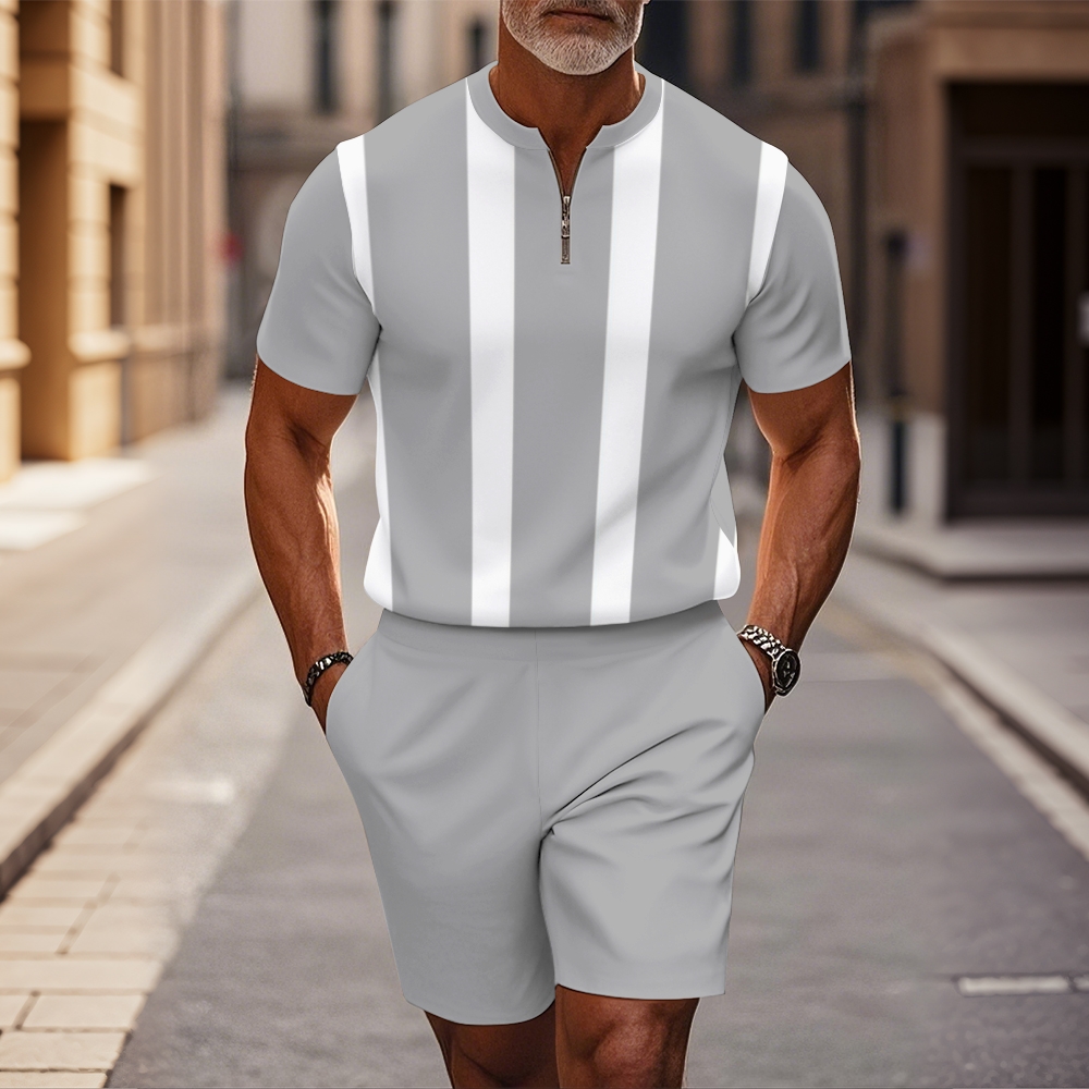 Men's fashion casual round-neck zipper geometric printed short-sleeved two-piece set 2506000280