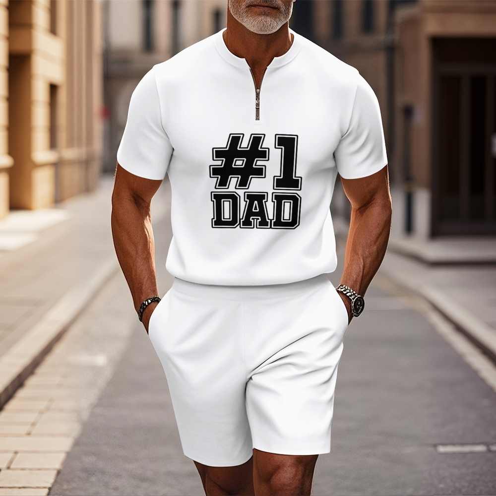 Men's fashion casual round-neck zipper geometric printed short-sleeved two-piece set 2507000216