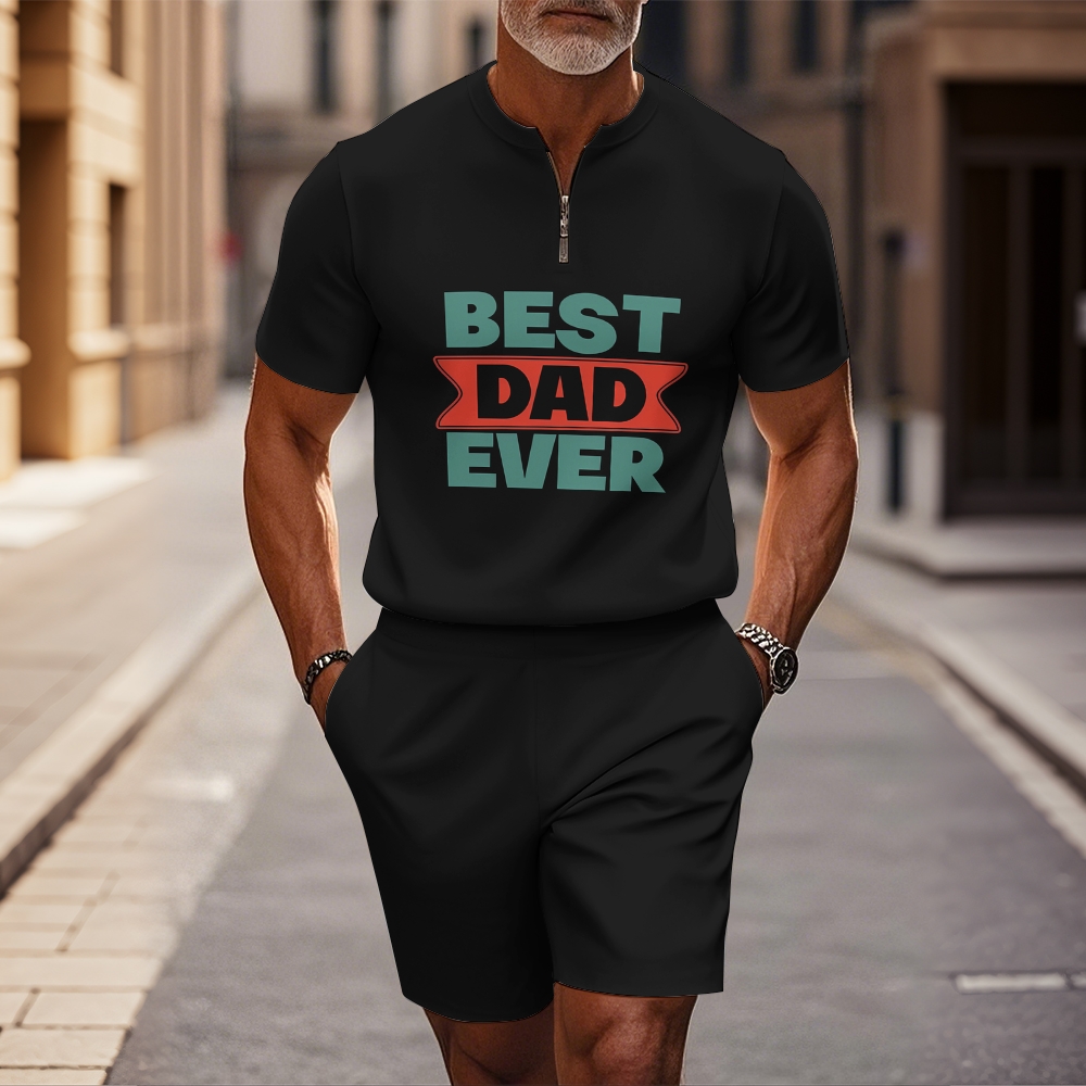 Men's fashion casual round-neck zipper geometric printed short-sleeved two-piece set 2507000217