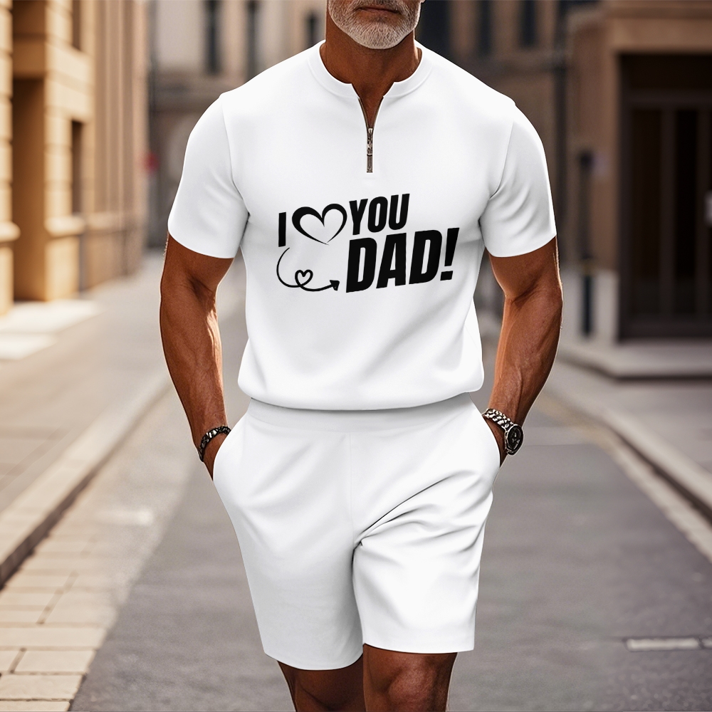 Men's fashion casual round-neck zipper geometric printed short-sleeved two-piece set 2507000219
