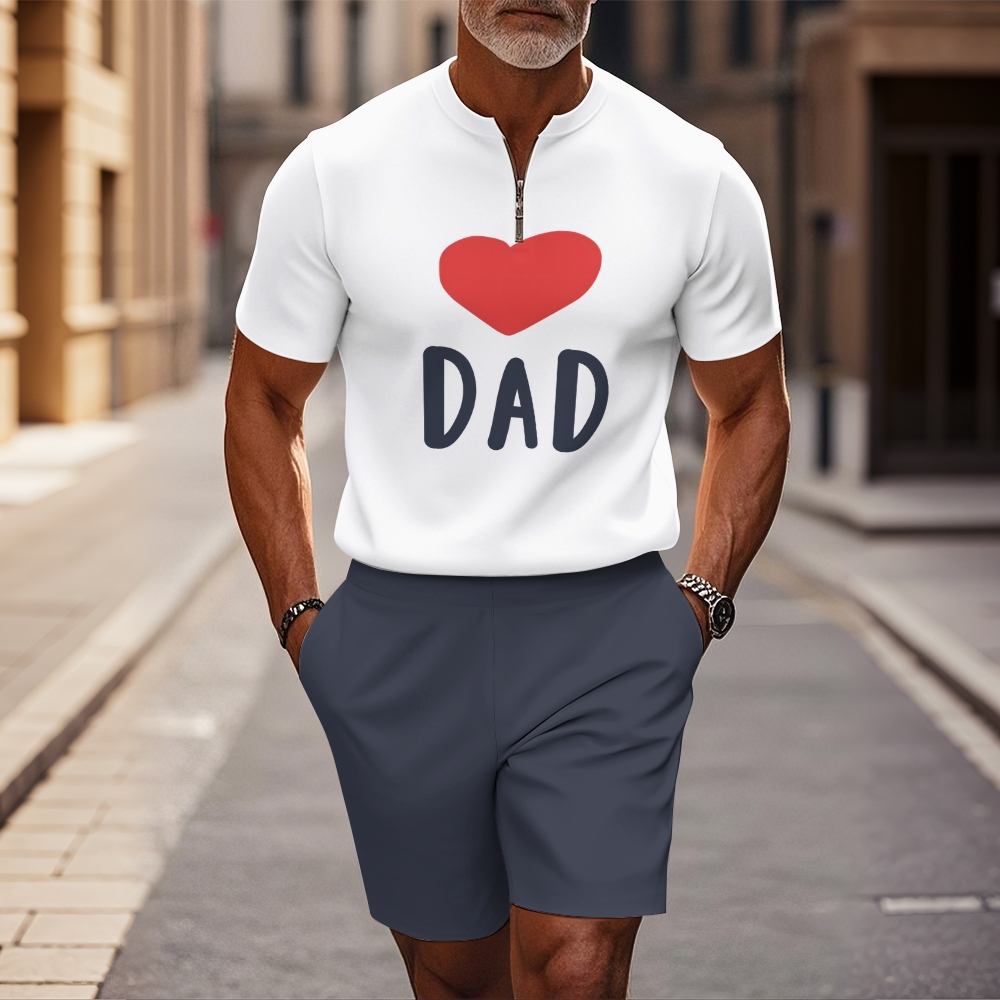 Men's fashion casual round-neck zipper geometric printed short-sleeved two-piece set 2507000221
