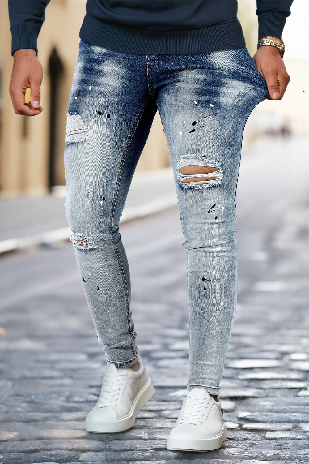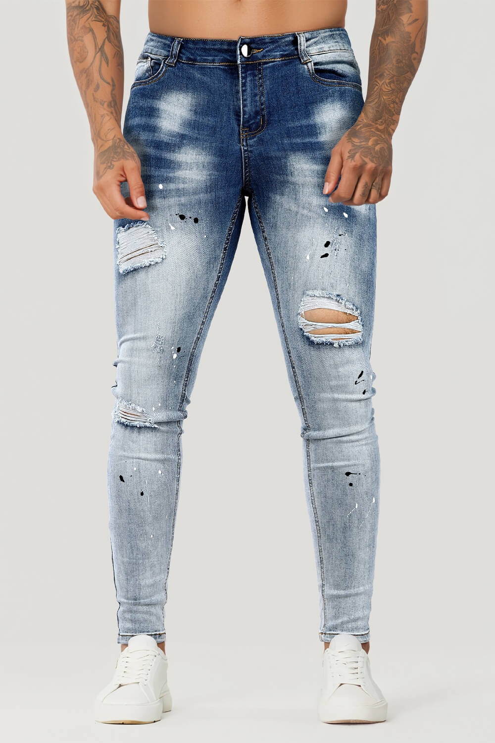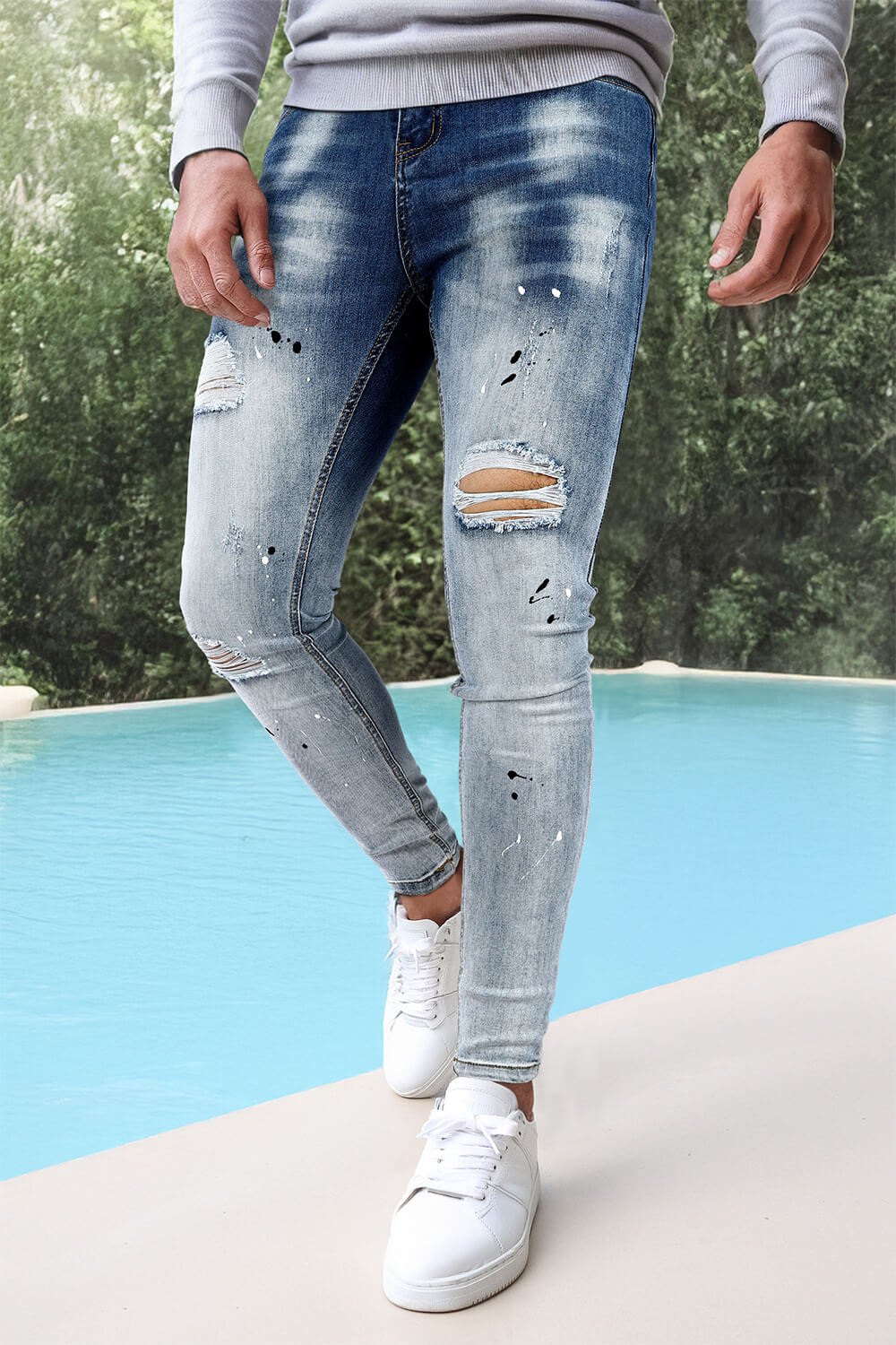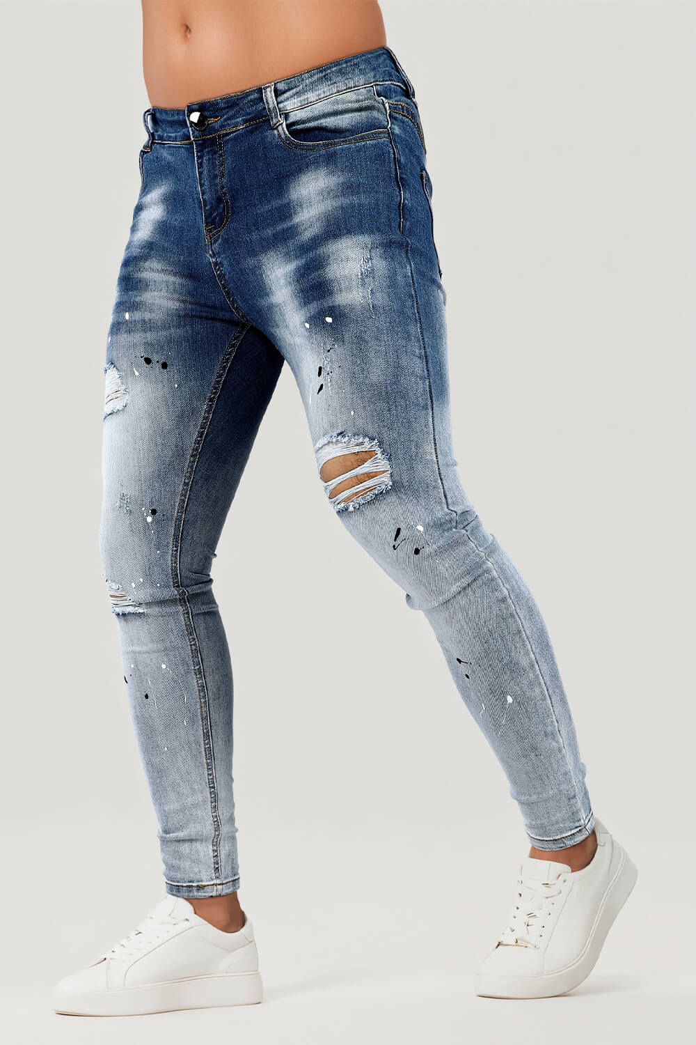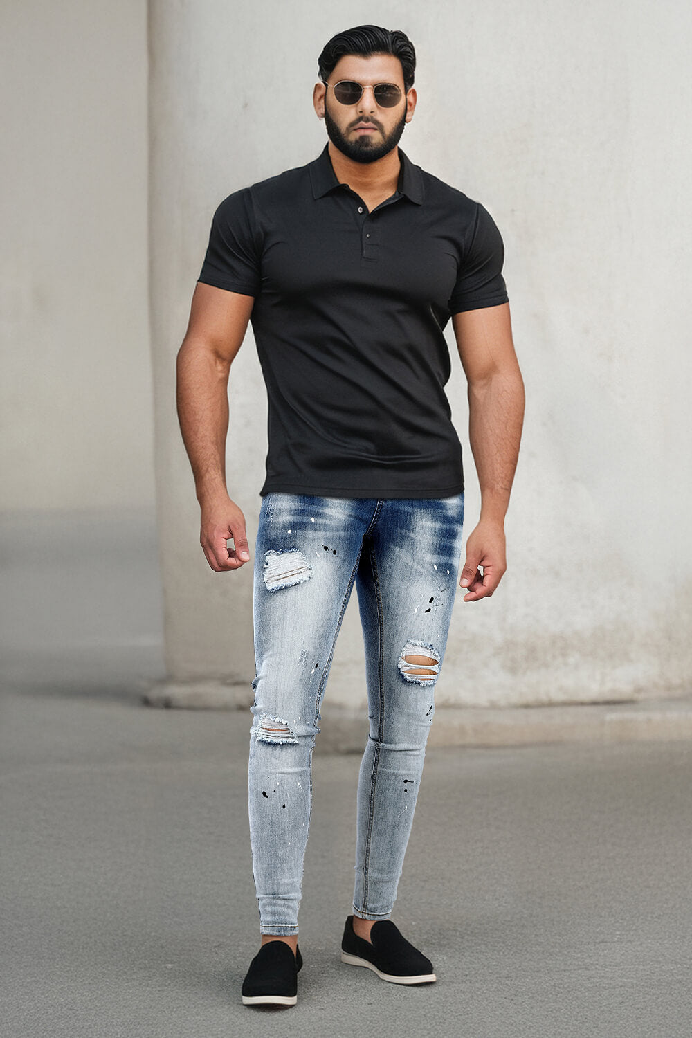 Super comfortable and high-stretch denim jeans designed with a form-flattering, muscular thighs fit. Our men's skinny jean fit your lower body to wear all day long and can be paired with our popular basic tops.