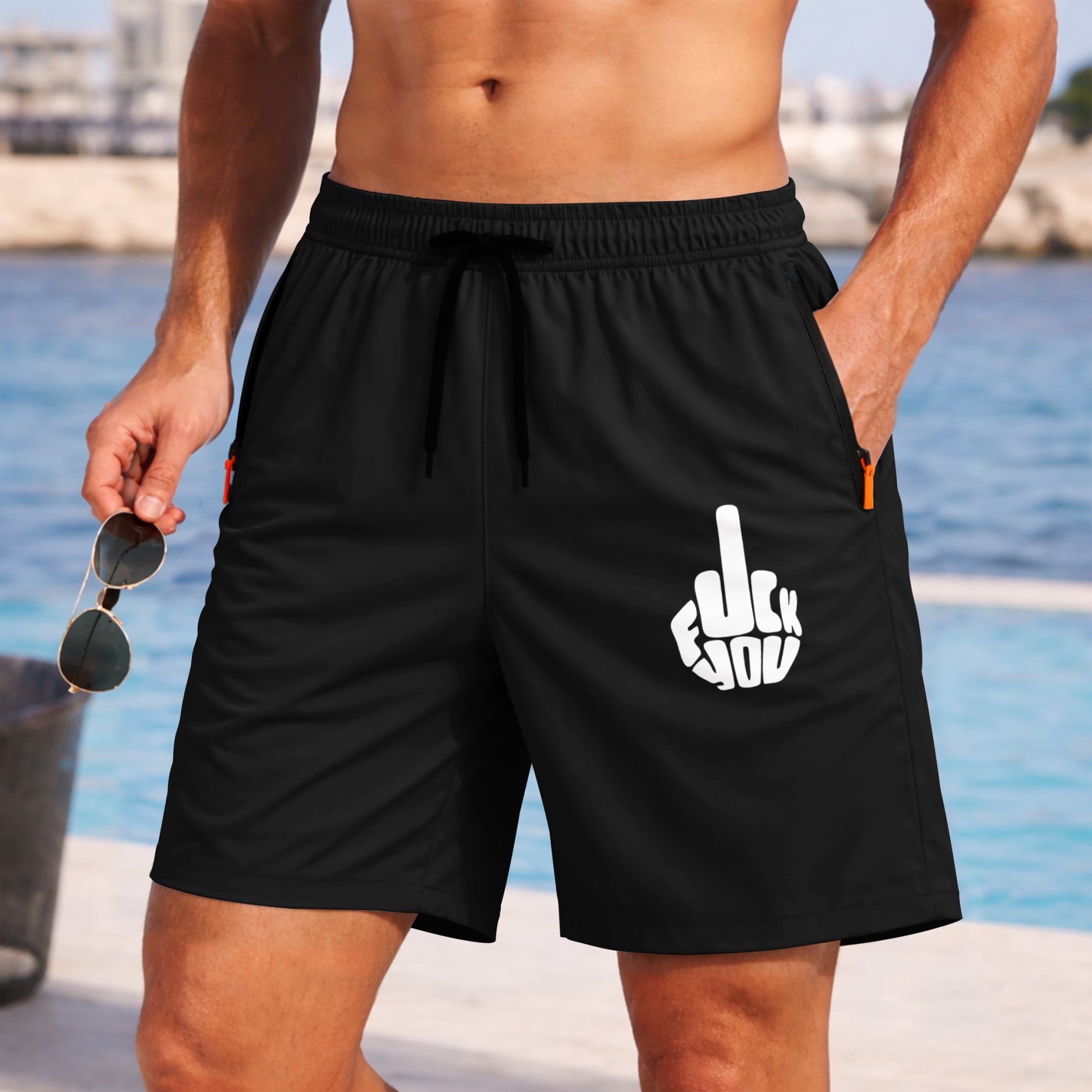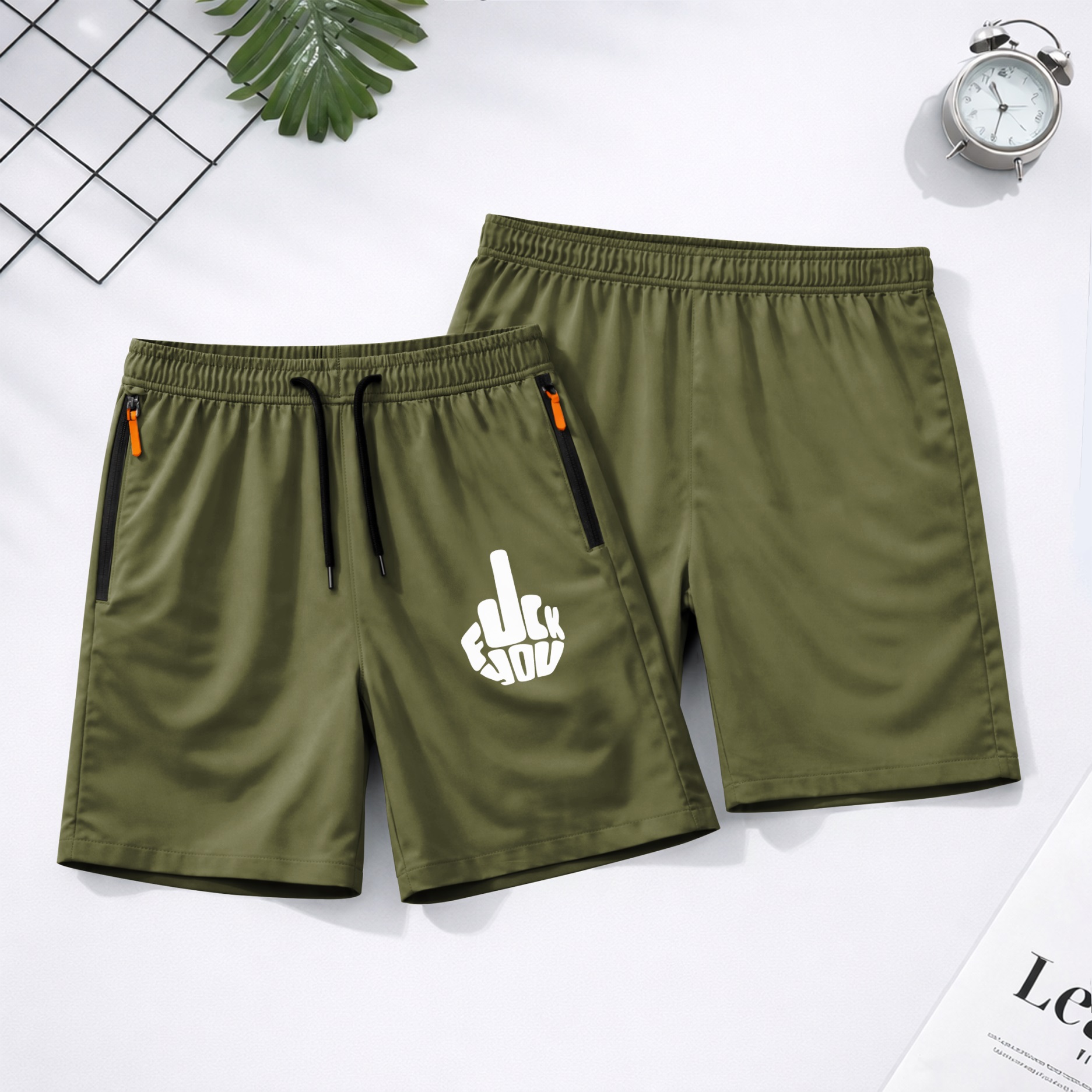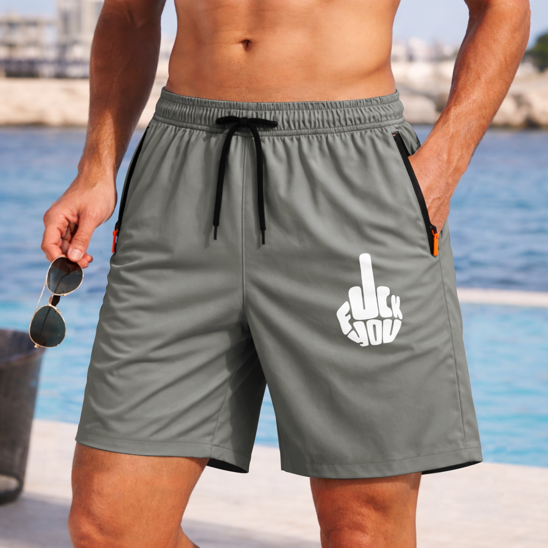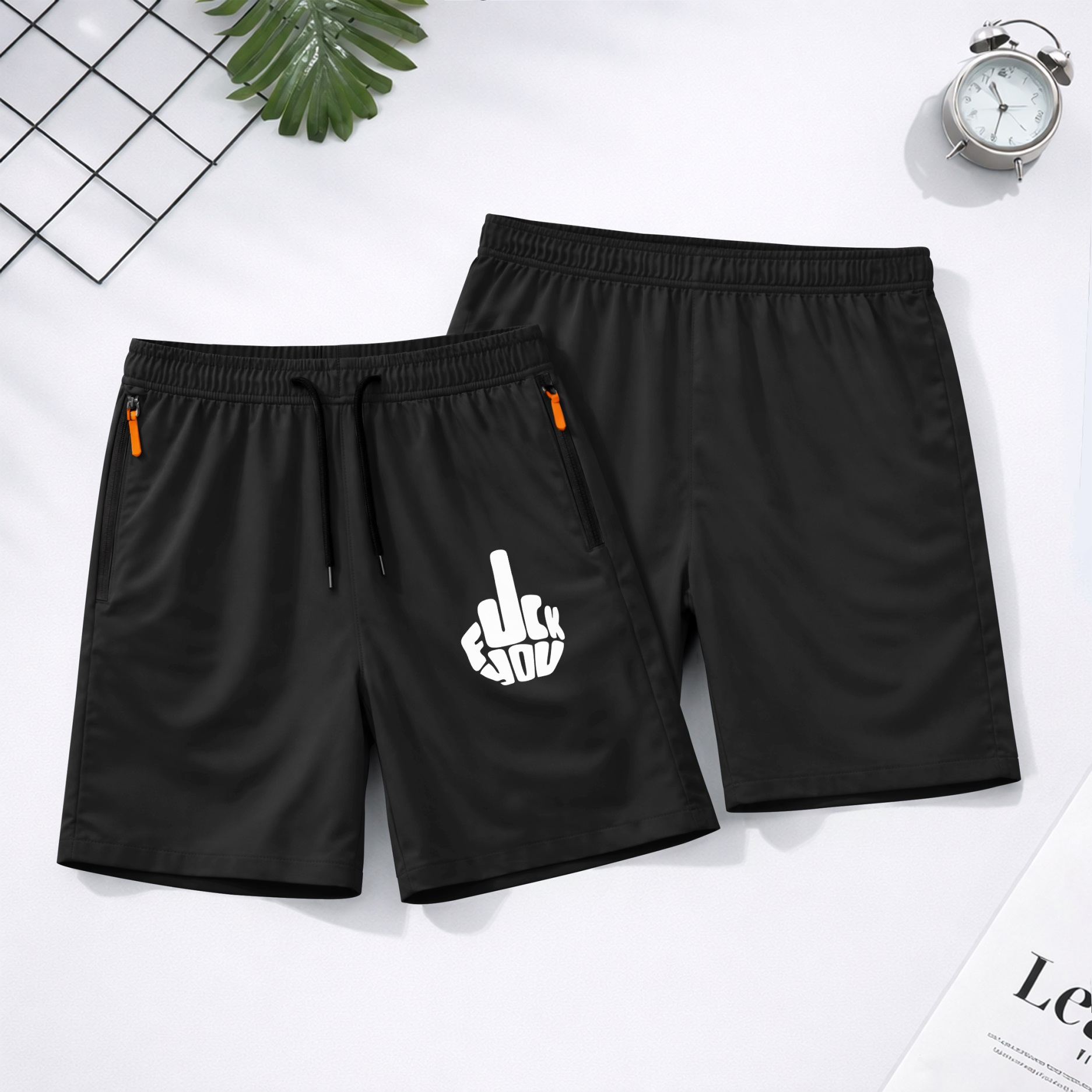 Men’s Funny Graphic Athletic Shorts Lightweight Quick Dry – Bold Hand Gesture Letter Print Running Shorts with Zipper Pockets, Elastic Waist Drawstring, Breathable Workout Shorts for Gym, Beach, Streetwear