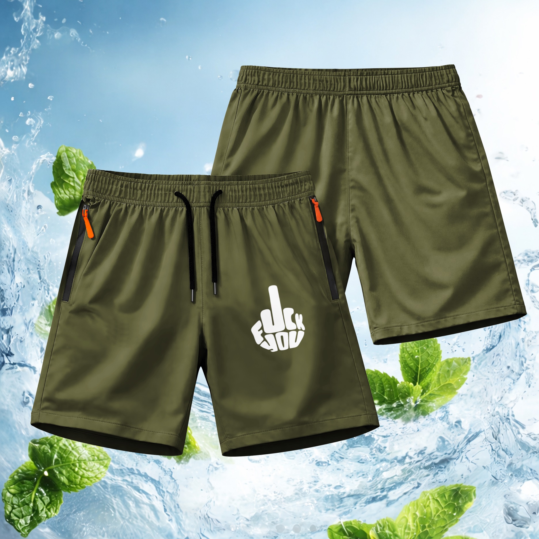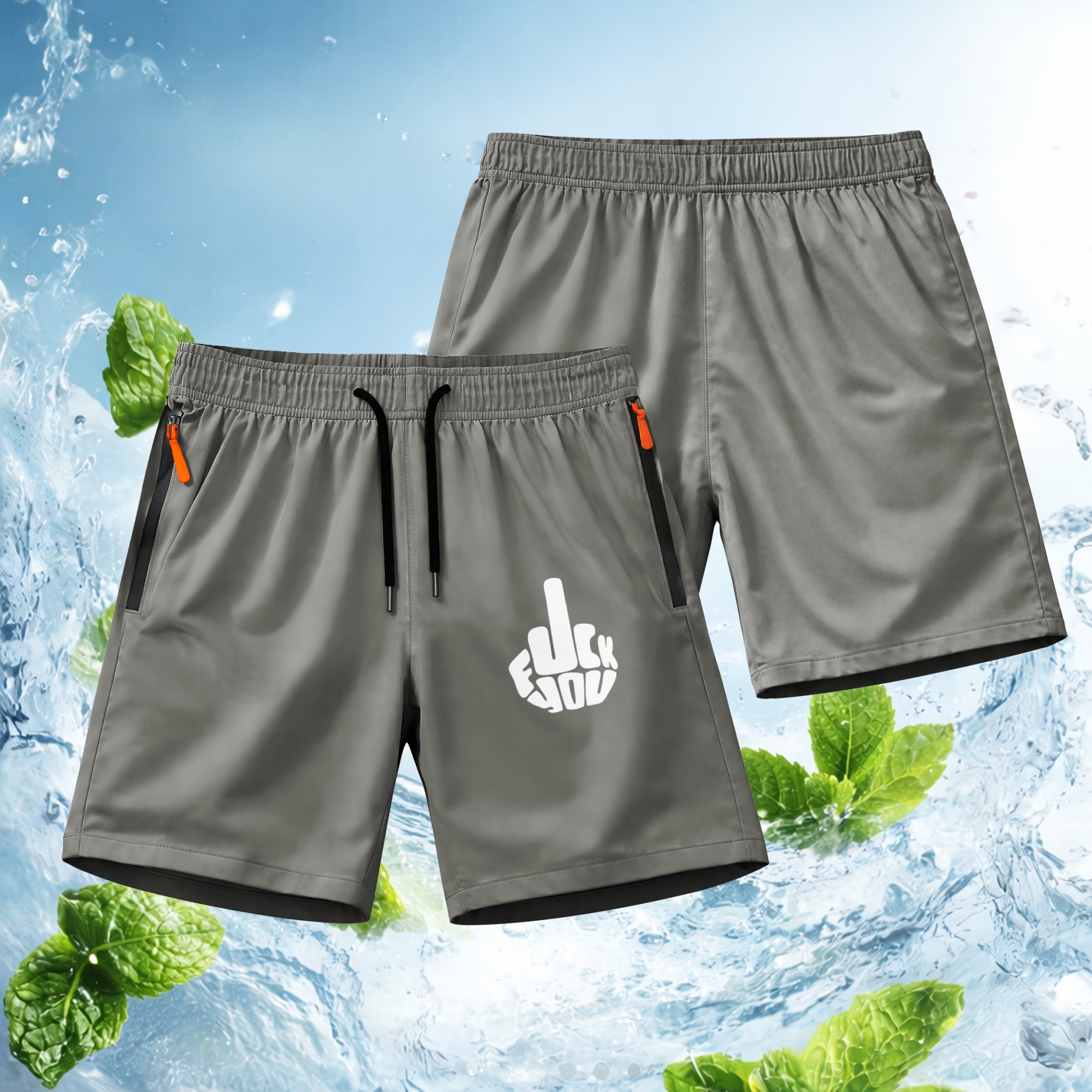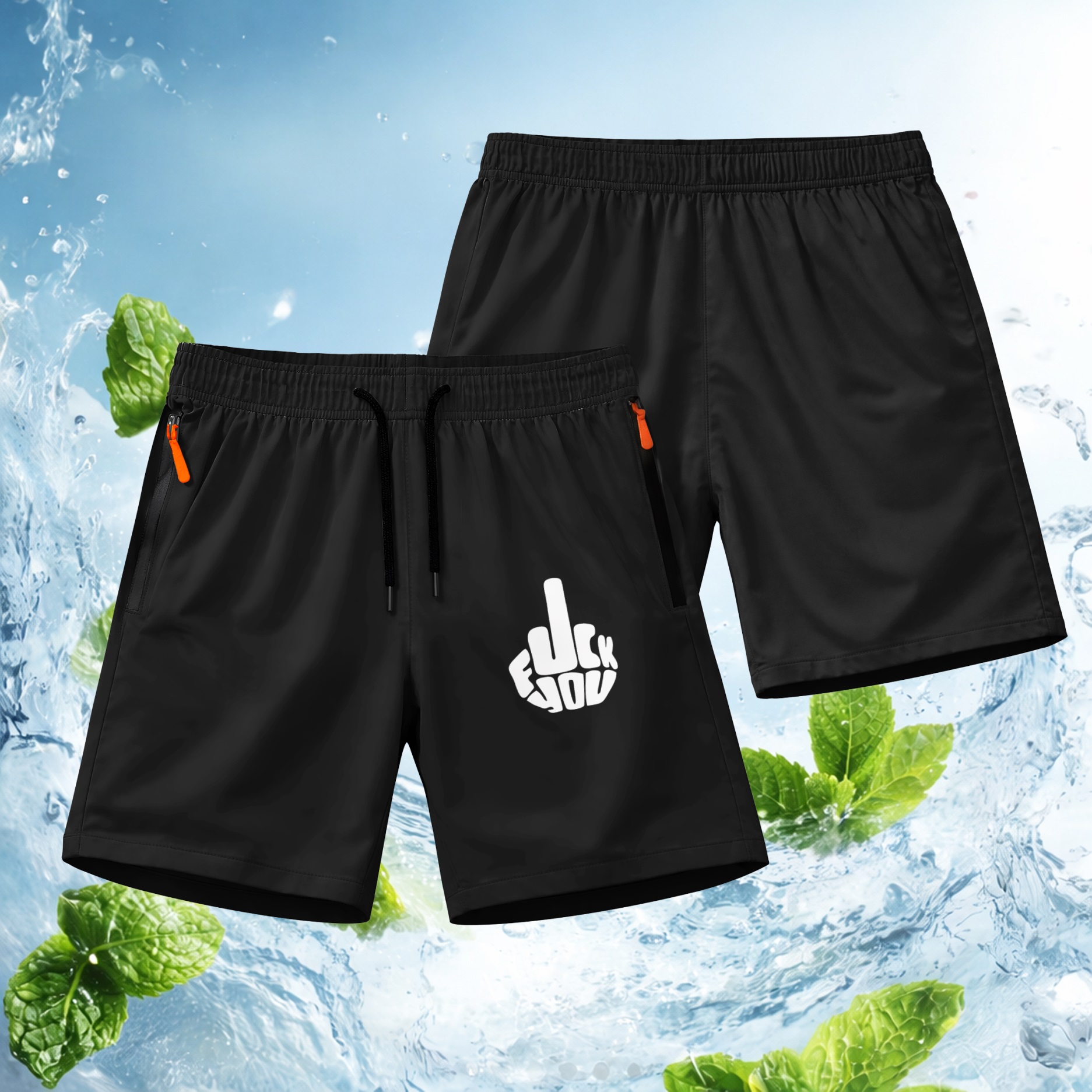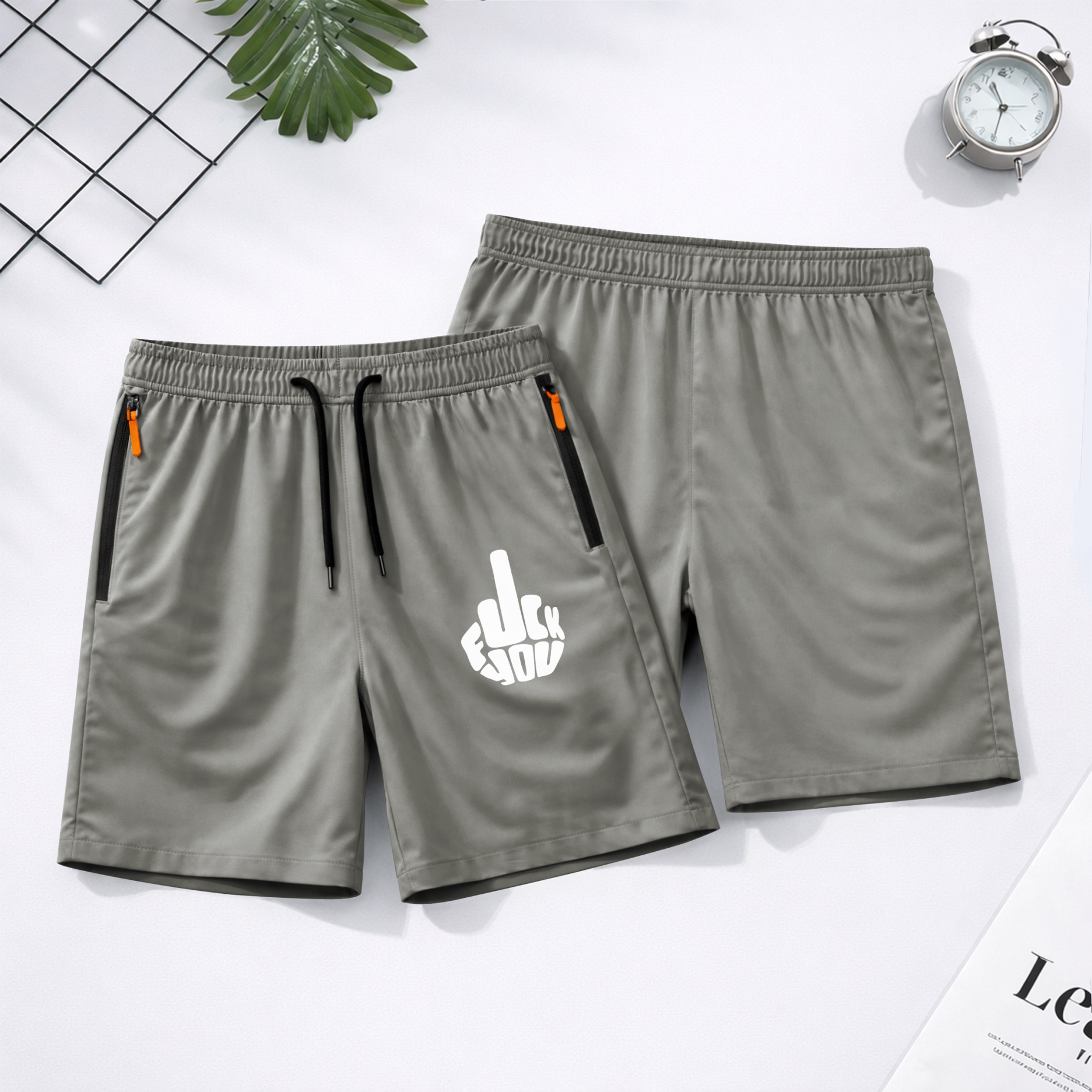 Men’s Funny Graphic Athletic Shorts Lightweight Quick Dry – Bold Hand Gesture Letter Print Running Shorts with Zipper Pockets, Elastic Waist Drawstring, Breathable Workout Shorts for Gym, Beach, Streetwear