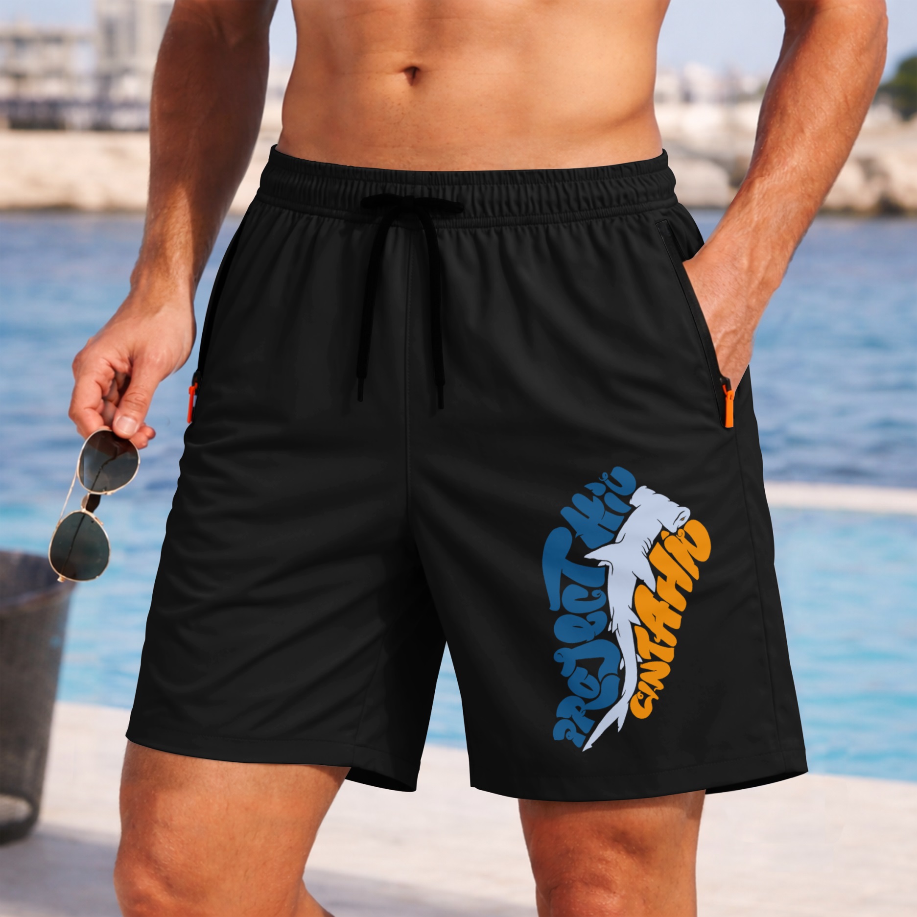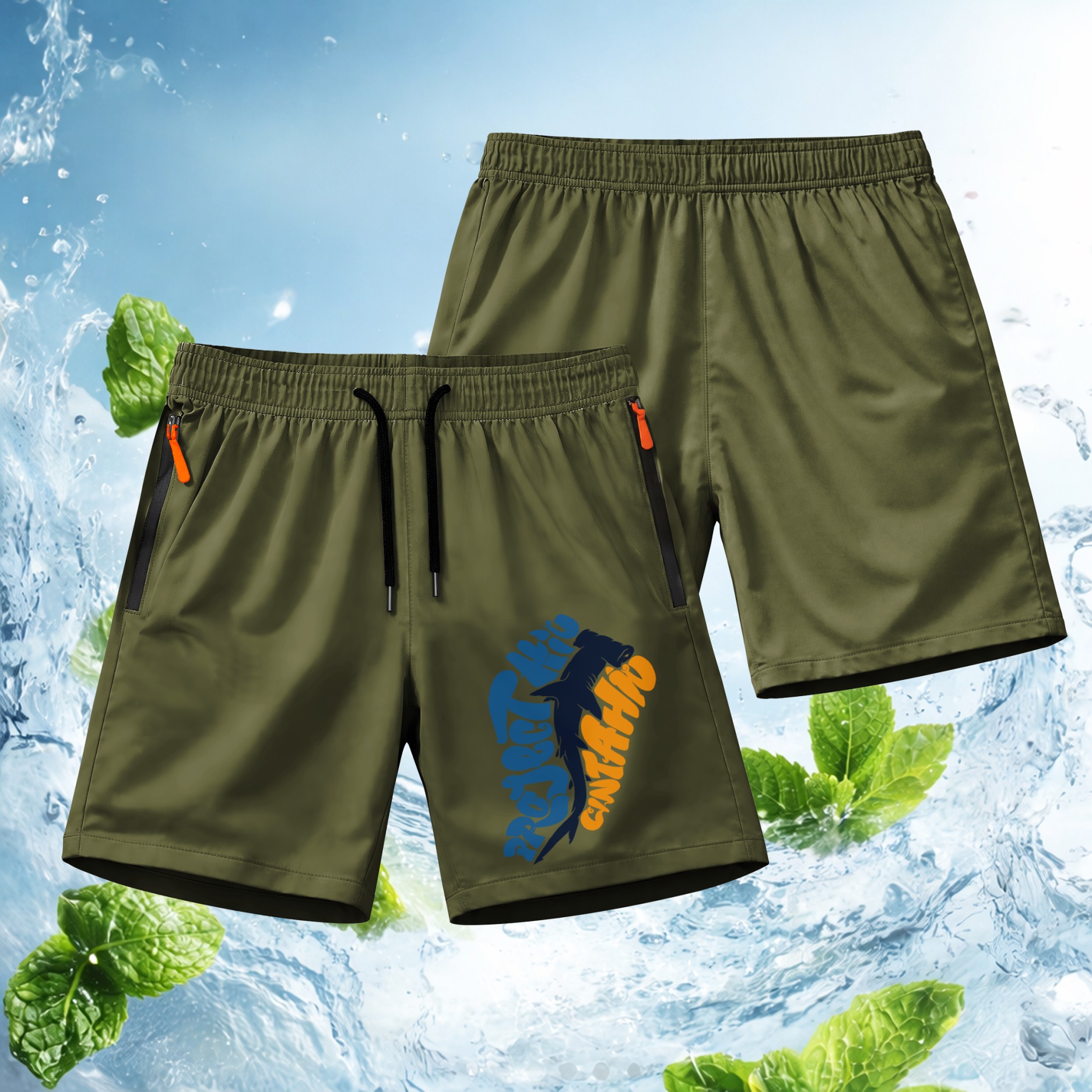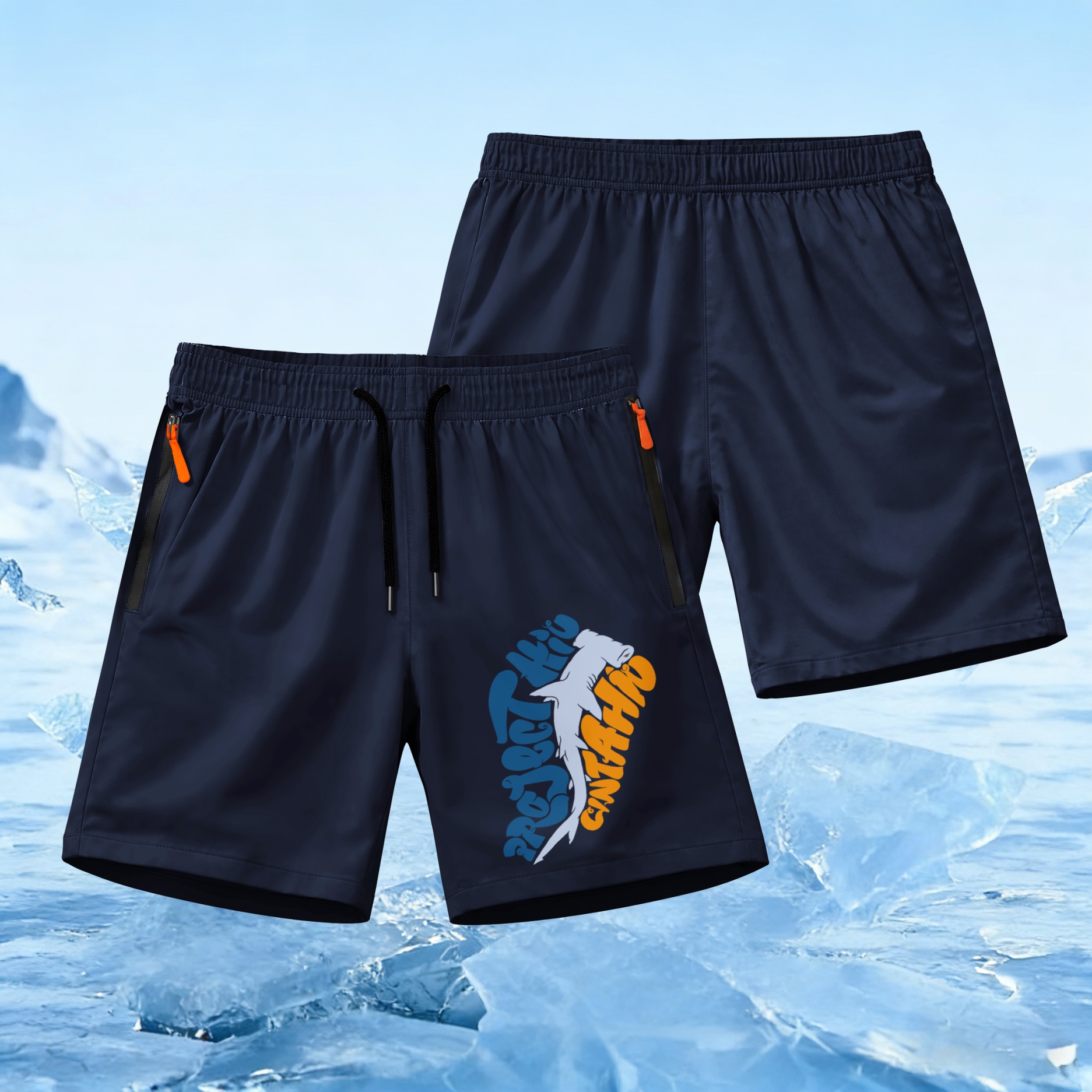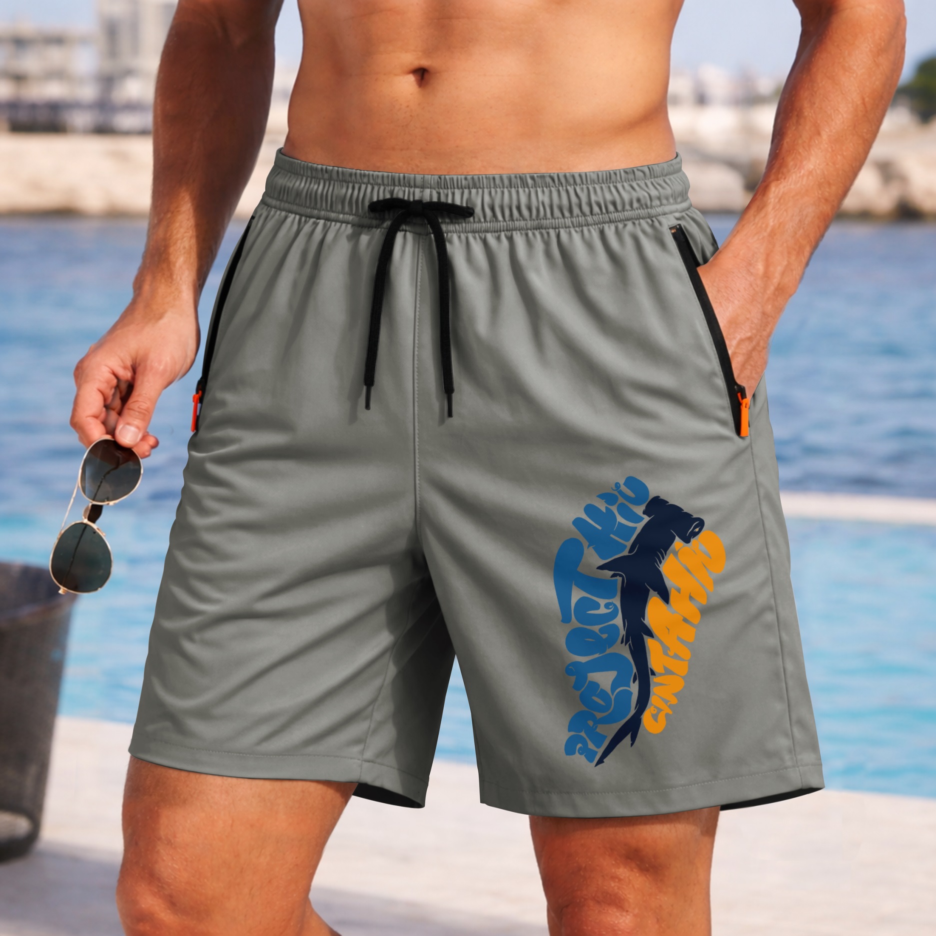 Men’s Shark Fishing Shorts Lightweight Quick Dry Athletic Running Shorts – Saltwater Fishing Graphic Shorts with Zipper Pockets, Elastic Waist Drawstring, Breathable Gym Workout Shorts for Beach, Sport, Outdoor